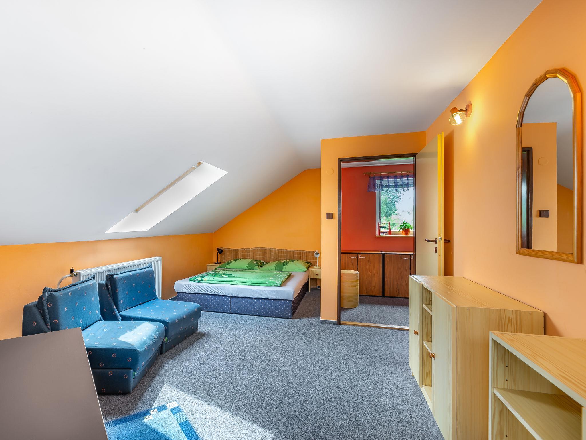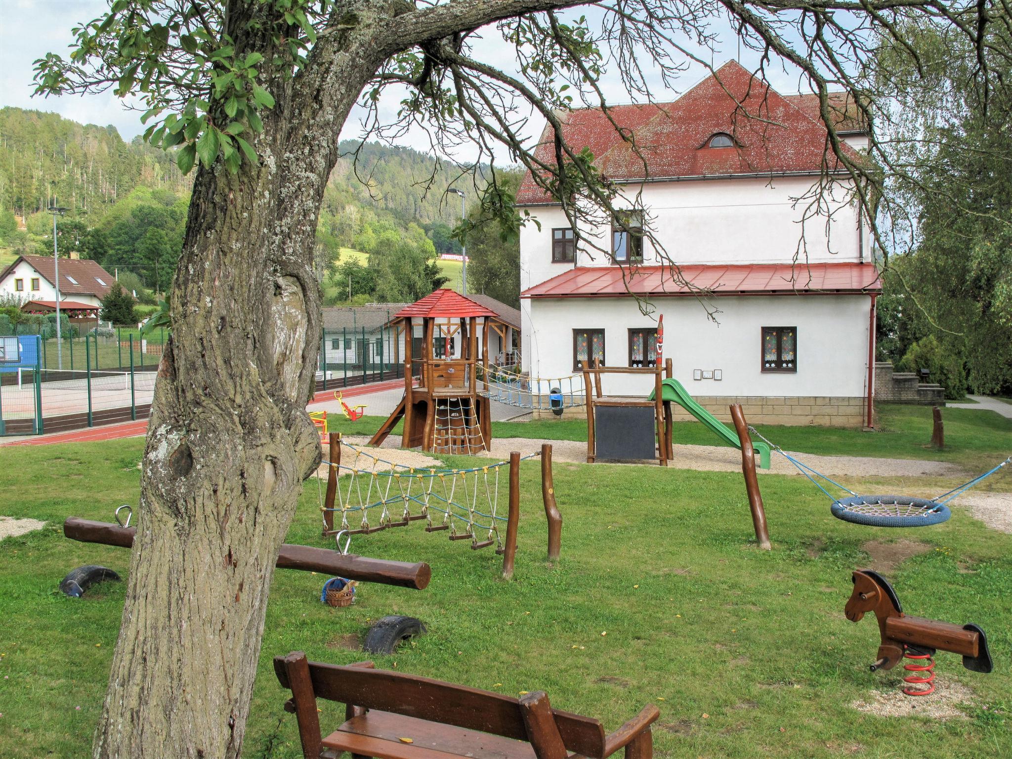 This nice holiday house with a sunken swimming pool is located in the small village of Tatobity, only 10 km from the famous place Hruba Skala, where the Bohemian Paradise Protected Landscape Area begins. Comfortable house "Penzion Jindriška", 2 storeys, detached, built in 1997. In the resort, in a sunny position, in a cul-de-sac, in the countryside. Private: property (fenced), garden 200 m2, swimming pool (6 x 3 m, seasonal availability: 01.Jun. - 31.Aug.). Barbecue, children's playground (sandbox), parking at the house. Grocery, restaurant, bus stop 300 m, outdoor swimming pool 12 km. Golf course (9 hole) 9 km, tennis 200 m, ski lift 4 km, children's playground 50 m. Nearby attractions: Hora/Rozhledna Kozákov 6 km, Hrubá Skála/CHKO Ceský ráj 10 km, Semily, Turnov 10 km, Hrad trosky 13 km, Jicín 20 km. Well-known ski regions can easily be reached: Vysoké nad Jizerou 25 km.