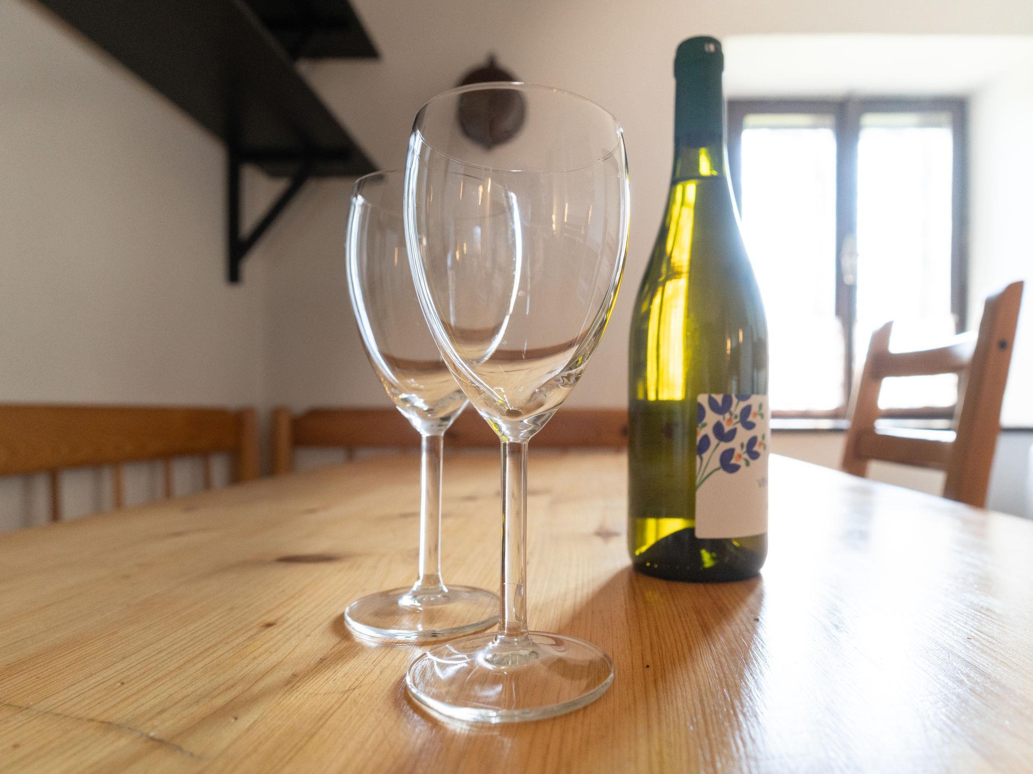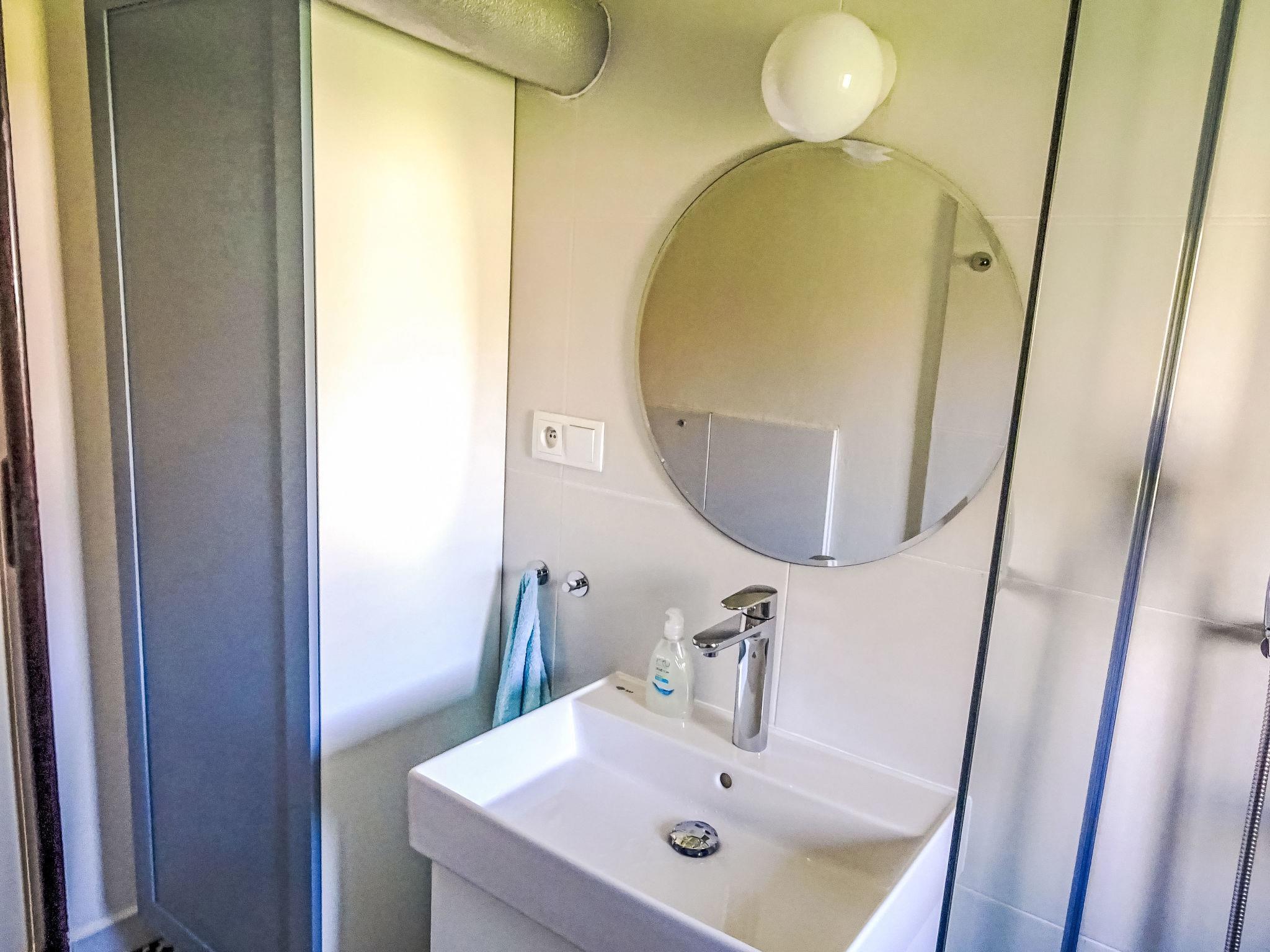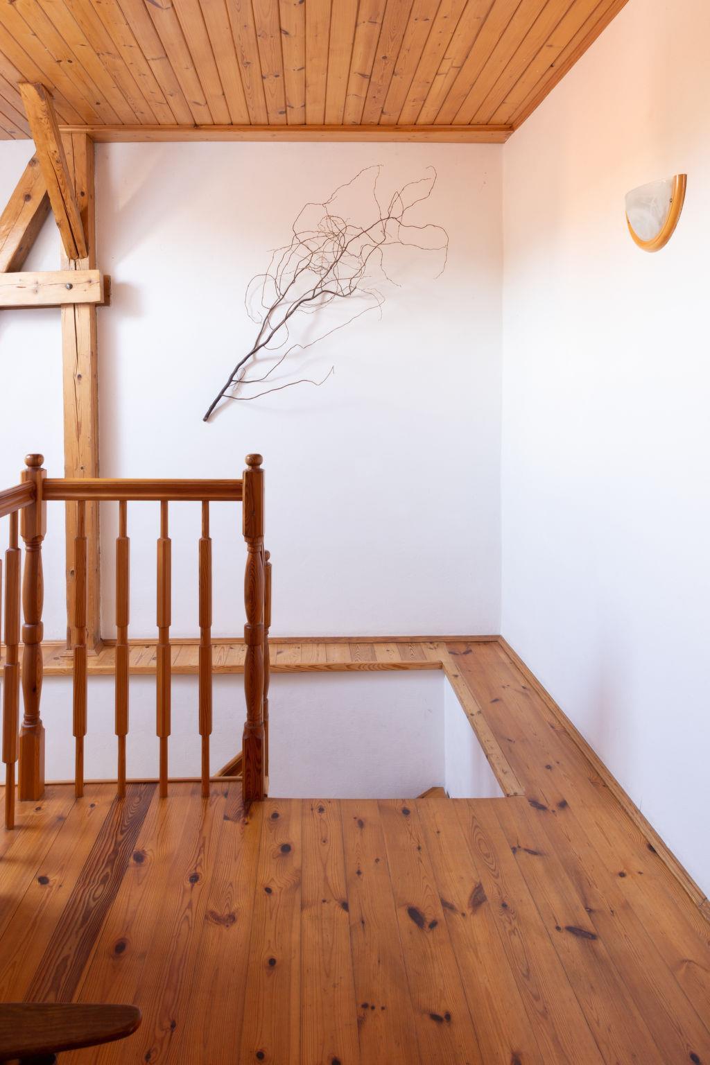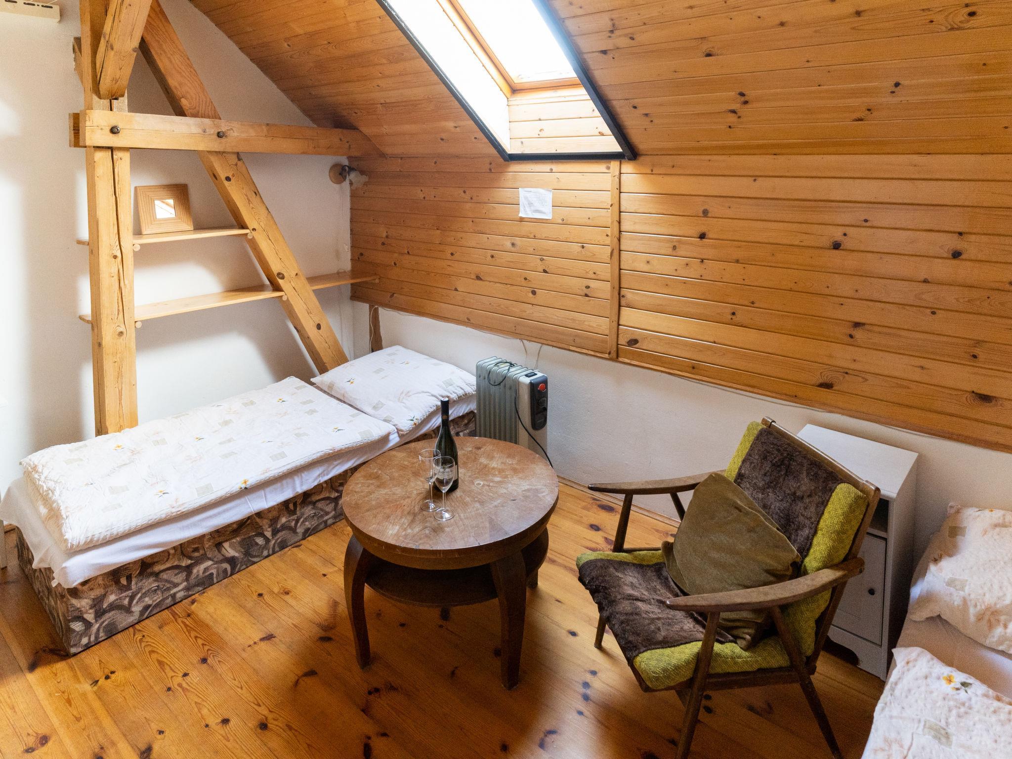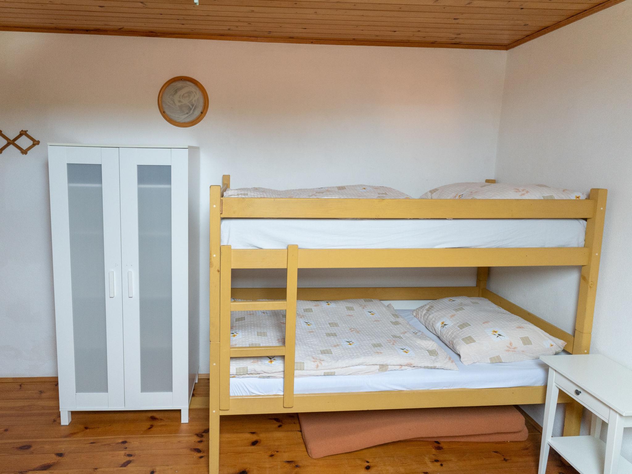 5-room house on 2 levels. Simple and cosy furnishings: living/dining room with dining table and TV. 1 room with 1 bed, 1 double bed, 1 folding bed and Scandinavian wood stove. Small kitchen (4 hot plates, oven, toaster, kettle, microwave, electric coffee machine). Shower, sep. WC. 2nd upper floor: 1 room with sloping ceilings with 2 beds and 1 x 2 bunk beds. 1 room with sloping ceilings with 3 beds. 1 room with sloping ceilings with 2 beds. Shower/WC. Electric heating, wood heating. Facilities: baby cot for up to 2 year olds (extra). Internet (WiFi, free). Please note: suitable for families. Non-smoking house. Maximum 1 pet/ dog allowed. Fire extinguisher. Dog is allowed only in the ground floor room (extra charge). Wood for heating for free, wood for outdoor fireplace extra.