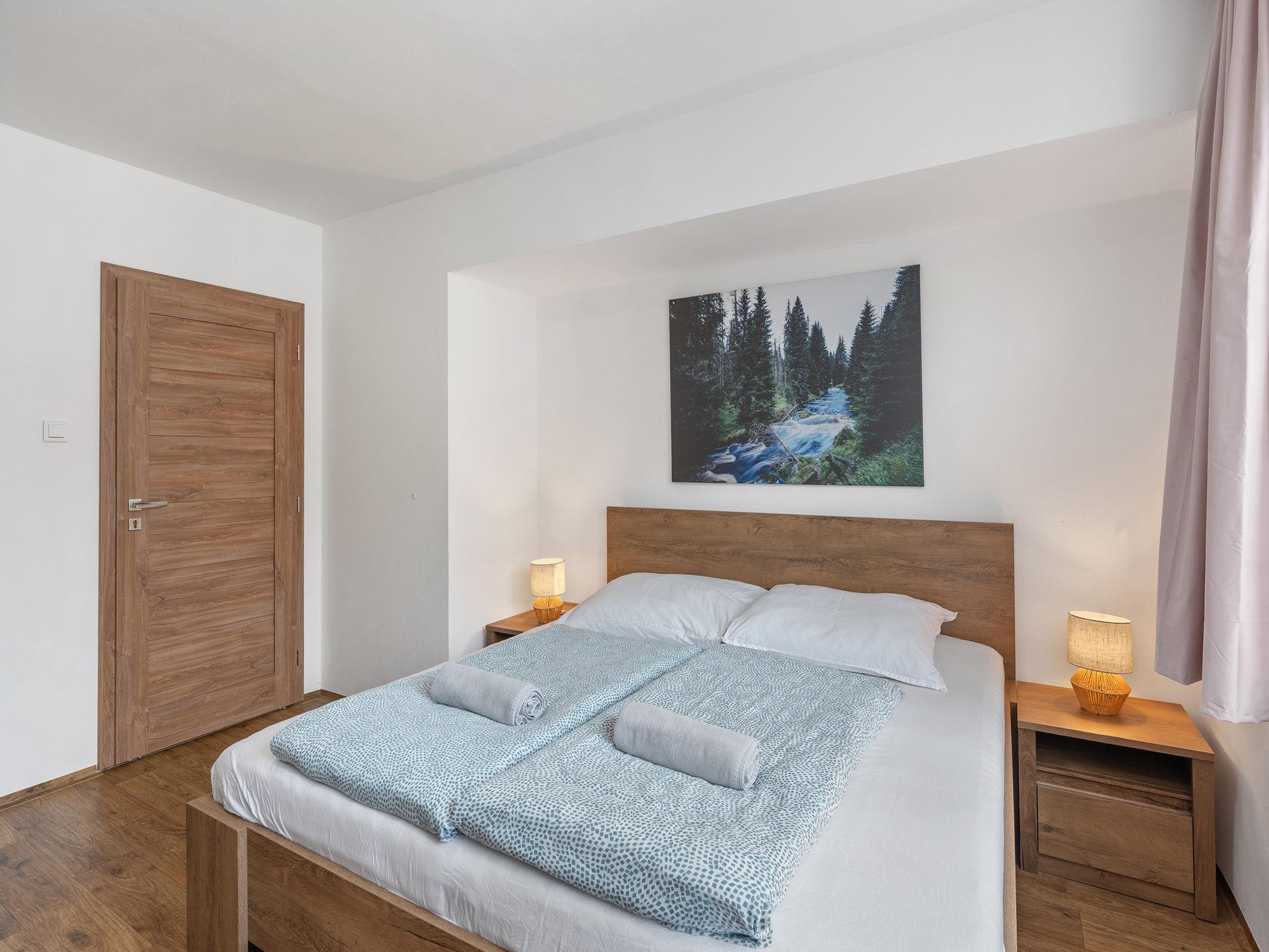 Beautiful chalet "Horalka", 3 storeys, detached, renovated in 2022. In the resort Železná Ruda, in a sunny, elevated position, 300 m from the edge of the forest, 500 m from the skiing area. Private: terrace, garden furniture, barbecue. In the house: WiFi, storage room for bicycles, storage room for skis, central heating system. Parking (for 5 cars) at the house. Supermarket 450 m, restaurant 250 m, bar, café, pub garden 500 m, bus stop "Železná Ruda, Pod Belvederem" 520 m, railway station "Železná Ruda, žel.stanice" 1.8 km, outdoor swimming pool 25 km, indoor swimming pool 19 km, bathing lake "Žábáky" 1.4 km. Tennis 250 m, minigolf 5 km, walking paths from the house, cycle lane 50 m, chair lift, slopes 500 m, ski rental 100 m, ski school, children's ski school 500 m, children's playground 700 m. Nearby attractions: Muzeum Šumavy 800 m, lanové centrum 1.3 km, Localbahnmuseum Bayerisch Eisenstein 4 km, Rozhledna Špicák 6 km, Hojsova Stráž 13 km, Vodopád Bílá strž 13 km, Prášily 19 km, Velhartice 25 km, Sušice 30 km, Kašperské Hory 35 km, Klatovy 37 km. Well-known ski regions can easily be reached: Belveder 500 m, Samoty 850 m, Pancír, Špicák 4 km, Grosser Arber/Velký Javor (DE) 12 km. Well-known lakes can easily be reached: Certovo jezero 5.5 km, Cerné jezero 8 km. Hiking paths: Národní park Šumava, Národní park Bavorský les (DE).