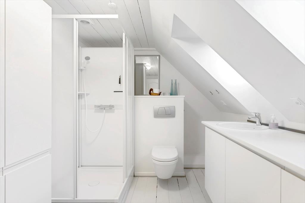 Badezimmer mit Dusche. Geschlossene Garten mit Terrasse. Gartenmöbeln. Grill.