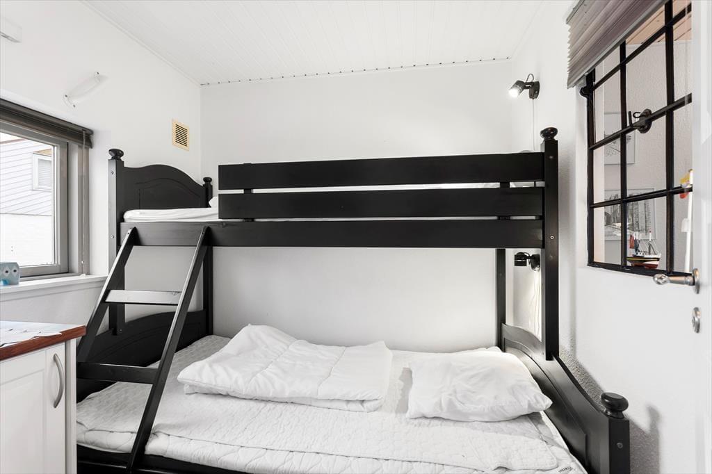 Das Haus beinhaltet ein Schlafzimmer mit einem Doppelbett - 120cm. Hochbett mit zwei Schlafmöglichkeiten. Fernsehen und Wlan. 2 Fahrräder.