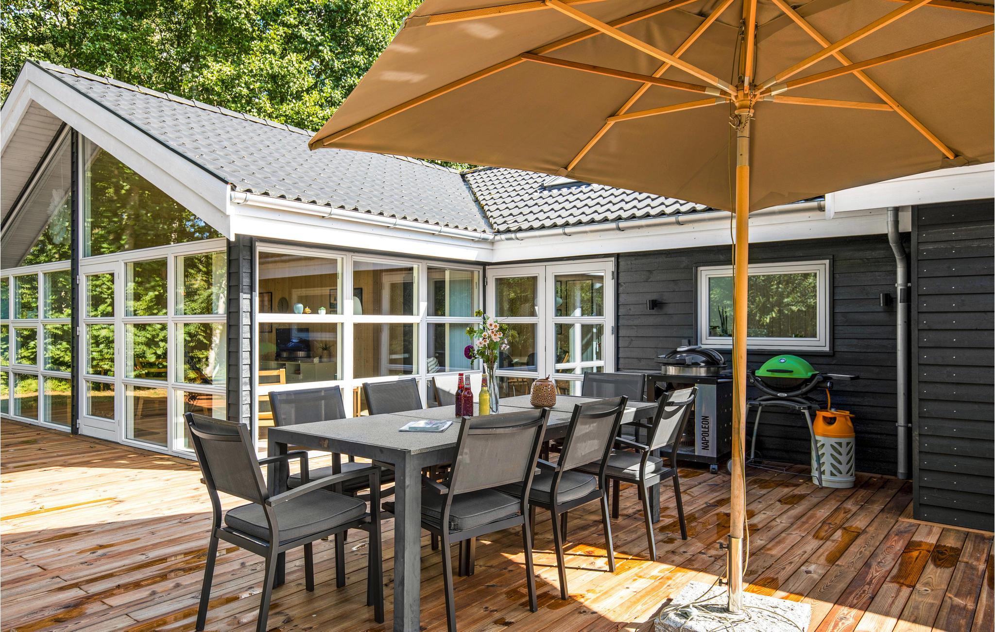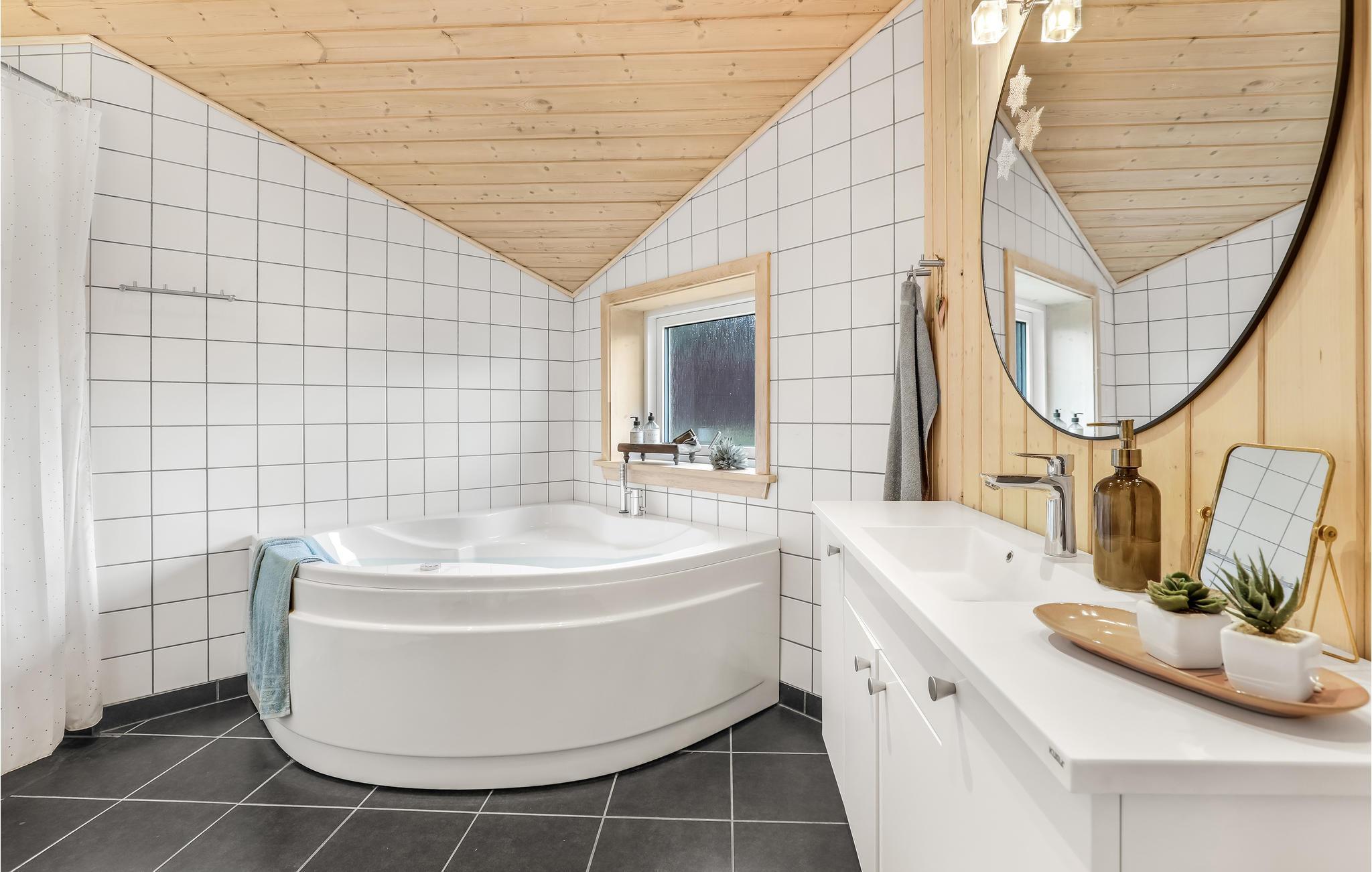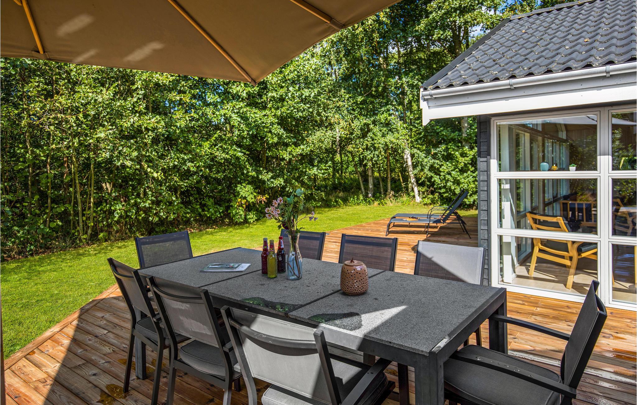 Willkommen in diesem luxuriösen Ferienhaus, das mit großen Fenstern sowie Holzböden, -wänden und -decken gemütliche Urlaubsatmosphäre ausstrahlt. Im großen, hellen Wohnzimmer können Sie es sich gemütlich machen und beim Unterhalten, Fernsehen, Radio oder Musik hören entspannen. Direkt daneben liegen der Essbereich und der offene, bestens ausgestattete Küchenbereich. Das große Badezimmer des Hauses, mit Fußbodenheizung, ist mit Whirlwanne ausgestattet, die zur kompletten Relaxation nach einem langen, aktiven Ferientag einlädt. Außerdem bietet das Haus drei Schlafzimmer und einem kleinen Dachboden mit einer 120 cm-Matratze und einer Playstation - ideal für Kinder. Im Hauswirtschaftsraum finden Sie eine Waschmaschine und einen Trockner. Ihnen steht ein zum Parken ein Carport zur Verfügung, der zudem über Lademöglichkeiten für Elektroautos verfügt.
