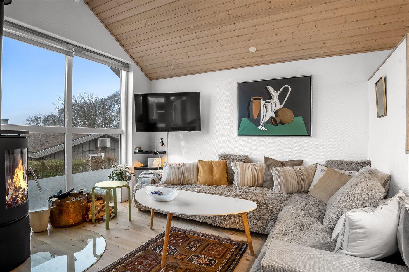 Holiday home suitable for 6 persons . 2 of the beds is only suitable for older children (4-11 years). The holiday home is 108 m², in 2 levels, and is build in 2009. No pets allowed. The holiday home is equipped with energy-friendly air-to-air heat pump. The holiday home has washing machine. Tumble dryer. Freezer capacity of 80 litres. Further more there is 1 wood-burning stove.