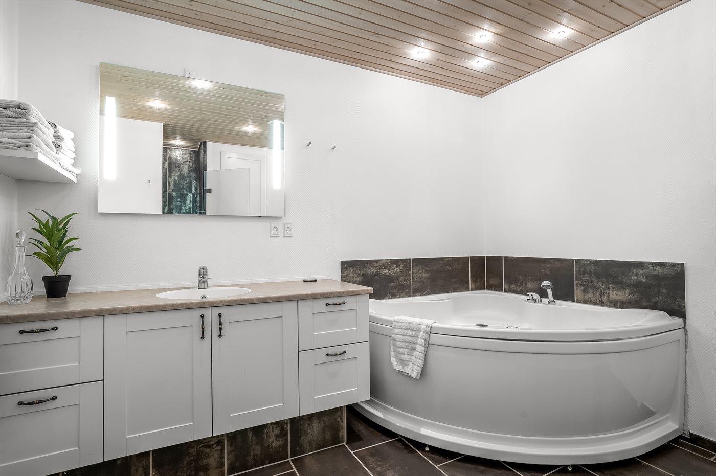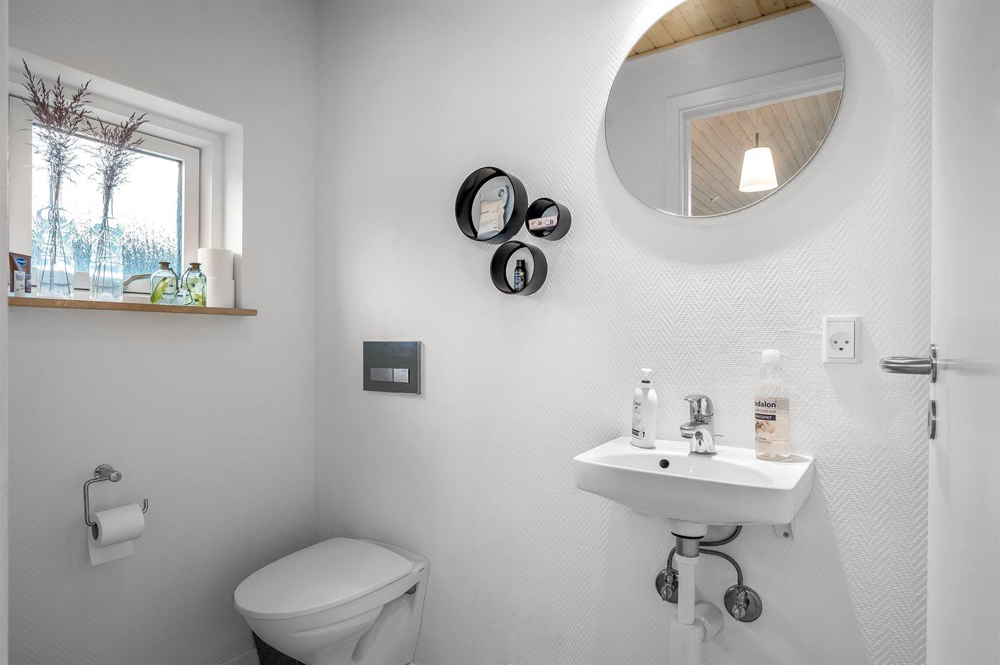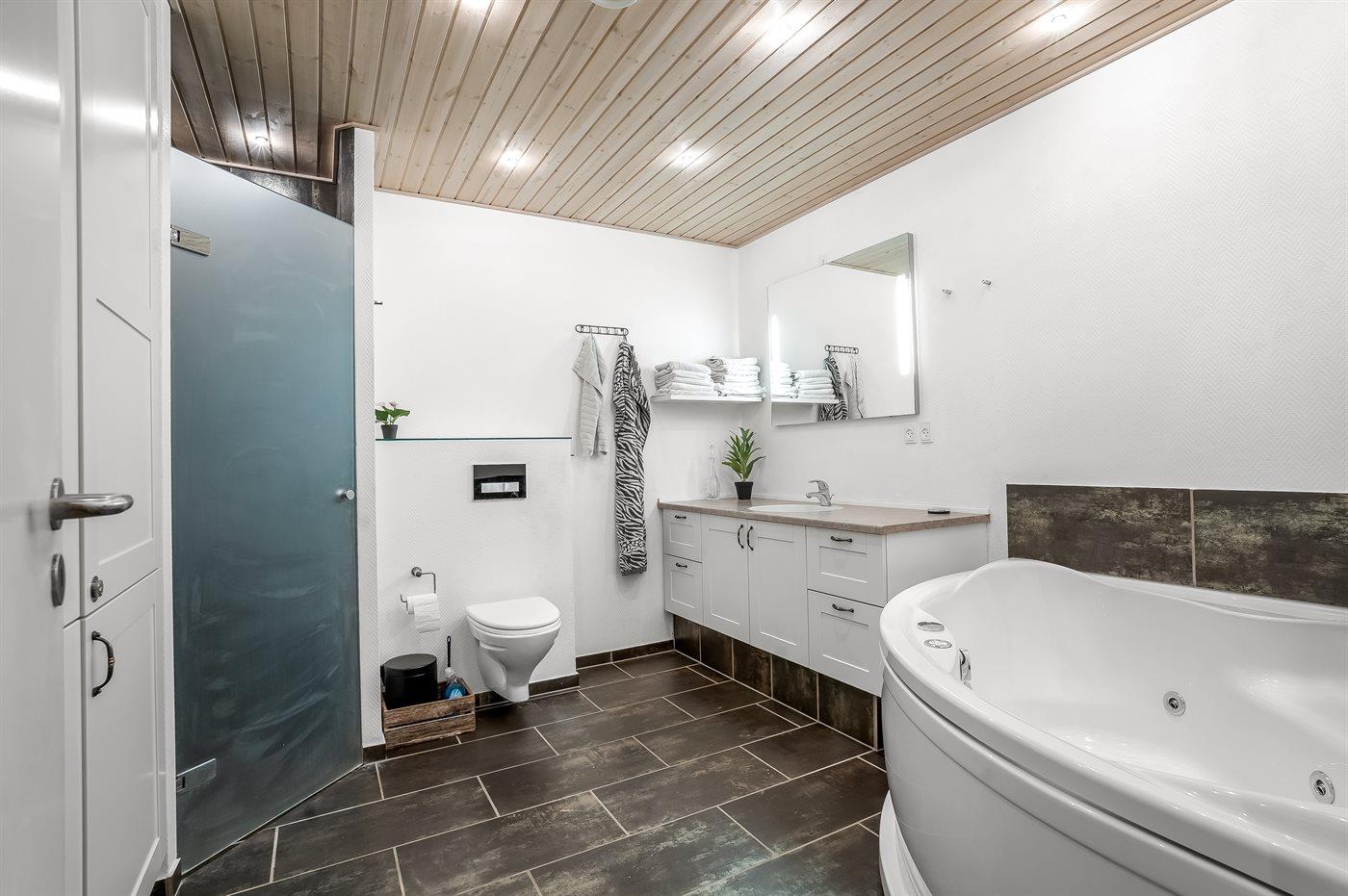 There is 1 bathroom with shower cabinet and 2 toilets, hereof 1 guest bathroom. There is floor heating in 1 bathroom.