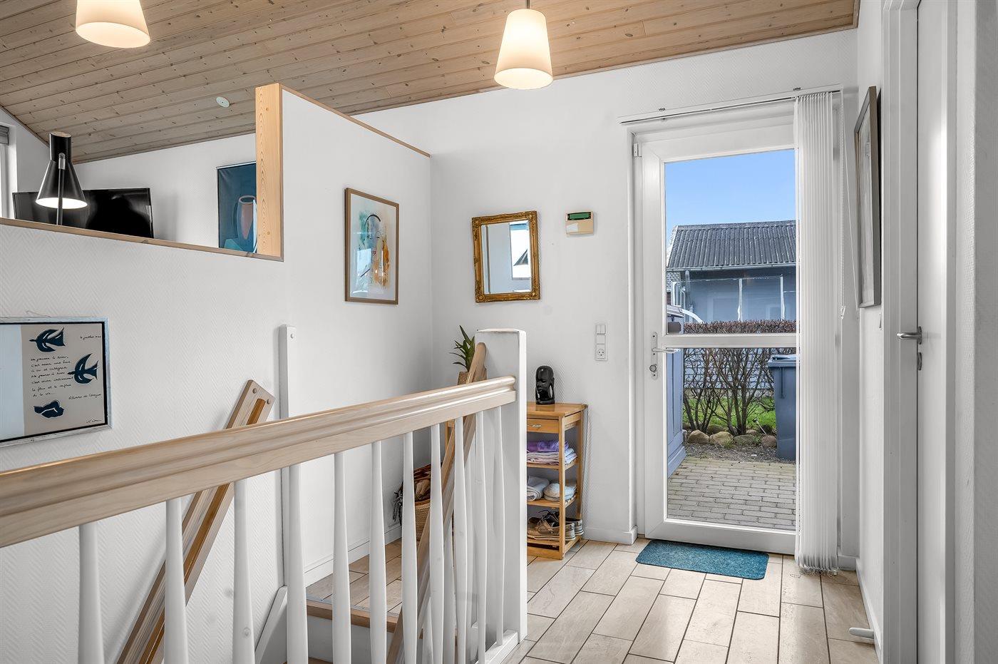 The holiday home is situated on a 249 m² garden site. Situated 75 m from the sea. Nearest shop is 2500 m away. A terrace belong to the holiday home. Parking place by the holiday home.