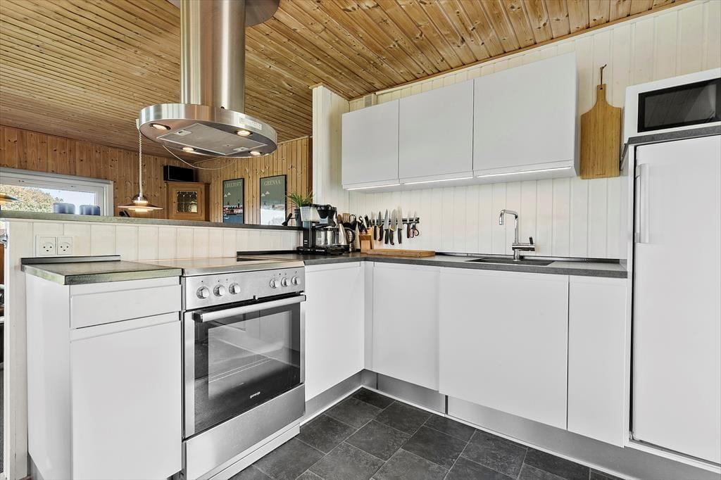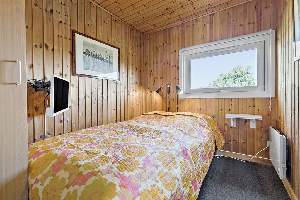 Stell dir einen Sommermorgen vor, an dem die Sonne den Himmel golden gefärbt hat und du am Fenster dieses charmanten Holzhauses stehst, das 2015 renoviert wurde. Du blickst zum Horizont, wo das Meer sanft in der Ferne glitzert, nur 700 Meter entfernt von deiner Ferienoase. Du kannst fast die Meeresluft spüren, die sich mit dem Duft von frisch gebrühtem Kaffee aus der Küche vermischt, die offen mit dem gemütlichen Essbereich und dem Wohnzimmer verbunden ist. Das Haus bietet Raum für Entspannung und Gemeinschaft. Es ist ausgestattet mit vier geräumigen Schlafzimmern, drei davon haben ein Doppelbett und eines ein Etagenbett. Im gut ausgestatteten Badezimmer sorgt die Waschmaschine diskret dafür, dass immer frische Handtücher für den Strand parat sind und in der warmen Sauna lässt du es dir so richtig gut gehen. Nach einem langen Tag am Strand, an dem deine Kinder Sandburgen gebaut und du die Sonne genossen hast, versammelt ihr euch alle am Esstisch. Hier wird das Abendessen serviert, während Gespräche und Lachen den Raum erfüllen. Und wenn die Dunkelheit hereinbricht, zieht ihr euch ins Wohnzimmer oder in die Schlafzimmer zurück.