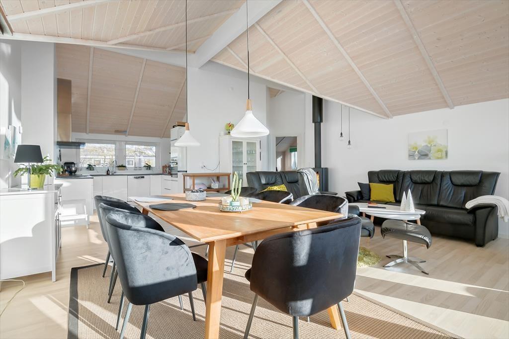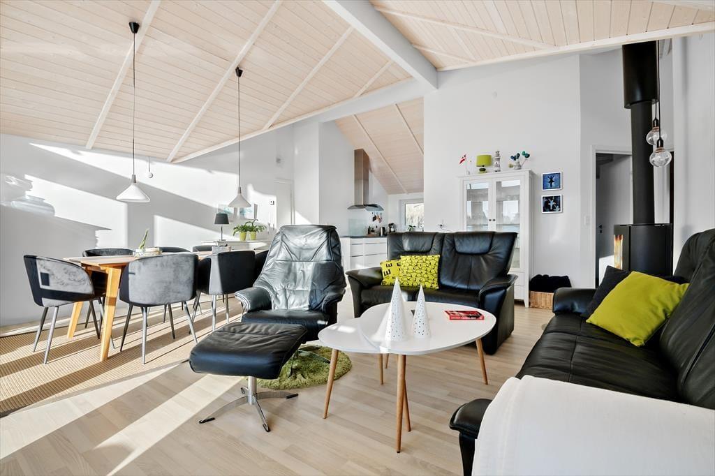 Das gesamte Ferienhaus ist von einer Fußbodenheizung durchzogen. Im schönen Küchen-, Wohn- und Essbereich wird diese durch einen Kaminofen und eine Wärmepumpe unterstützt.