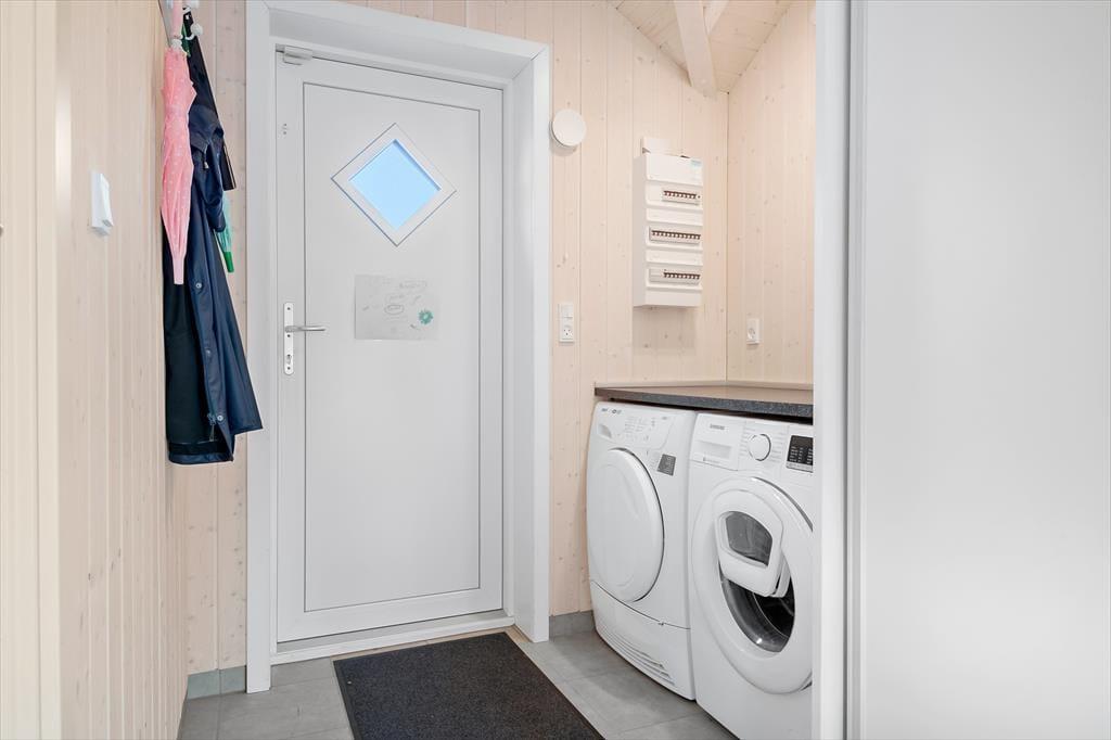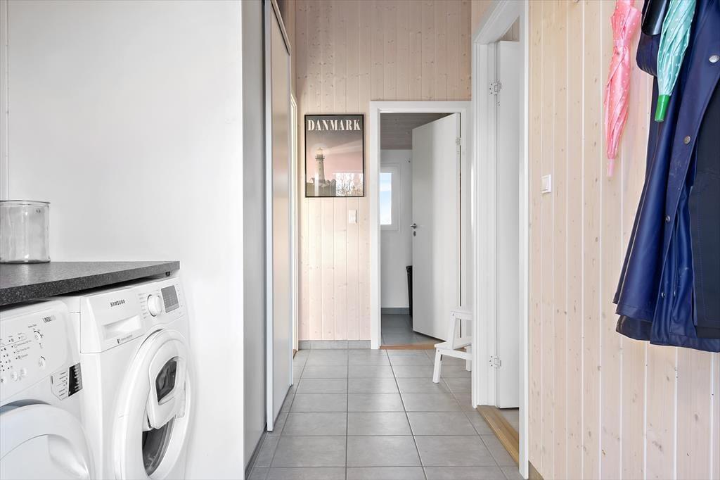 Das Ferienhaus begrüßt Sie mit einem gefliesten Eingangsbereich, in dem eine Waschmaschine und ein Wäschetrockner zur Verfügung stehen.