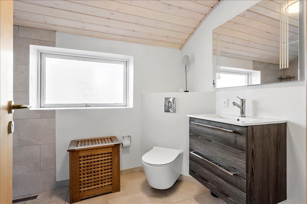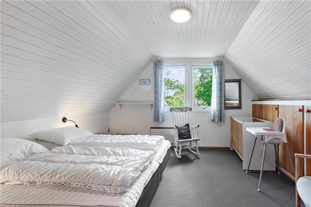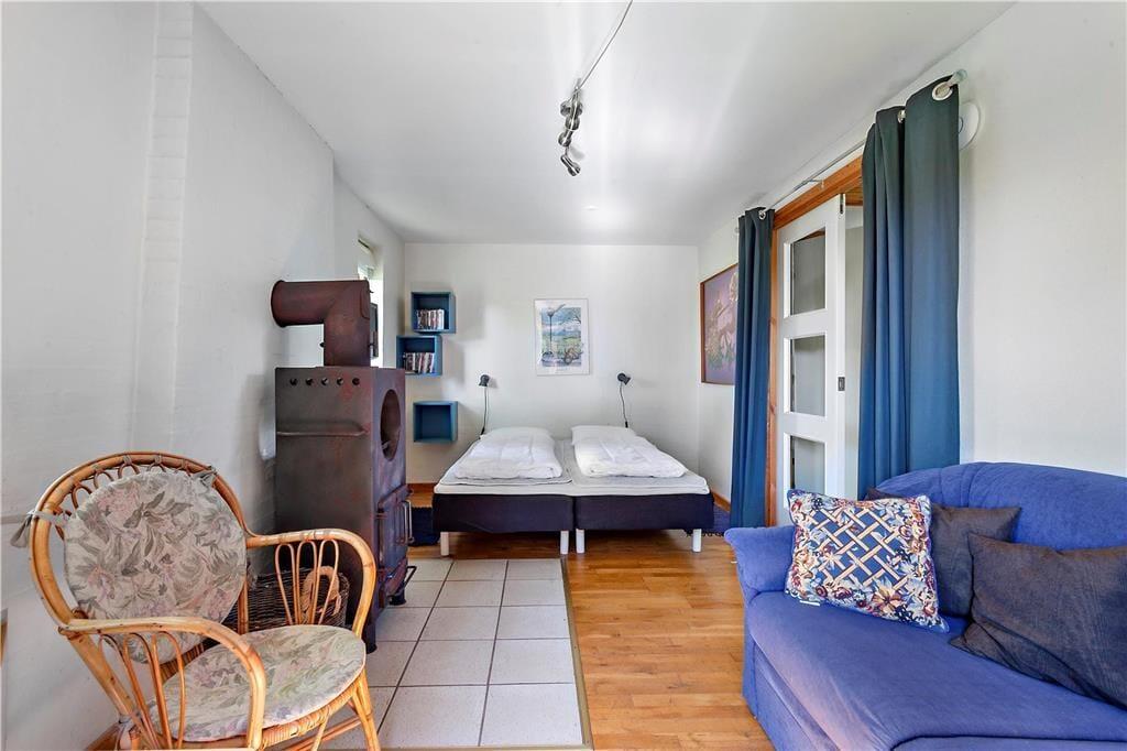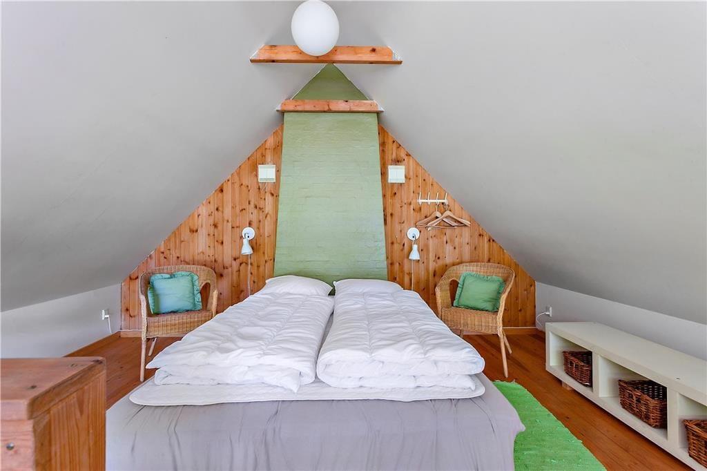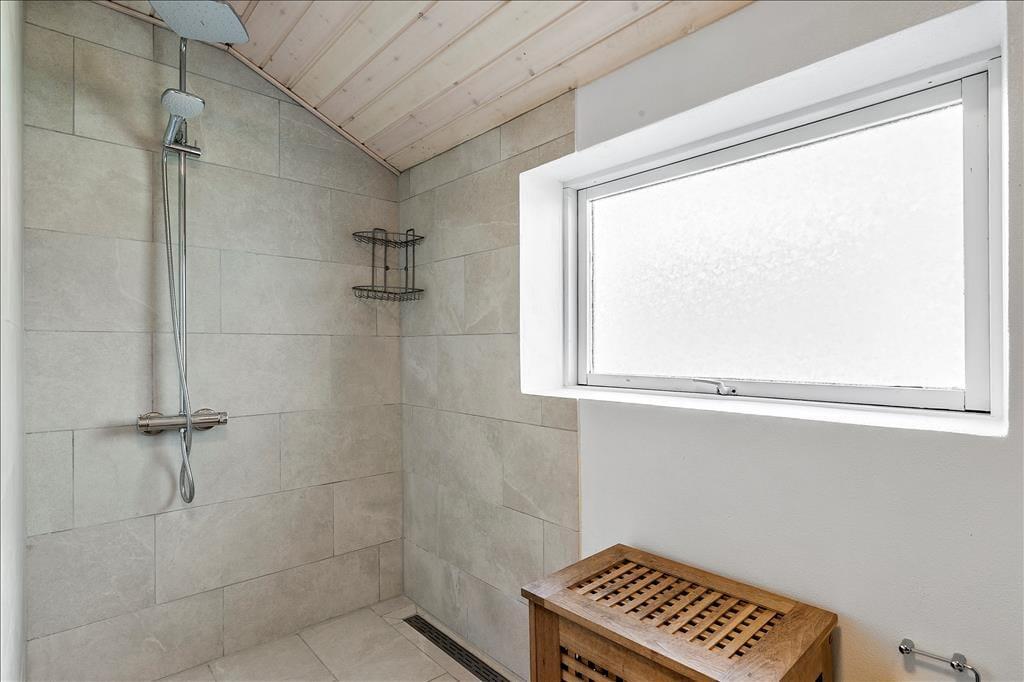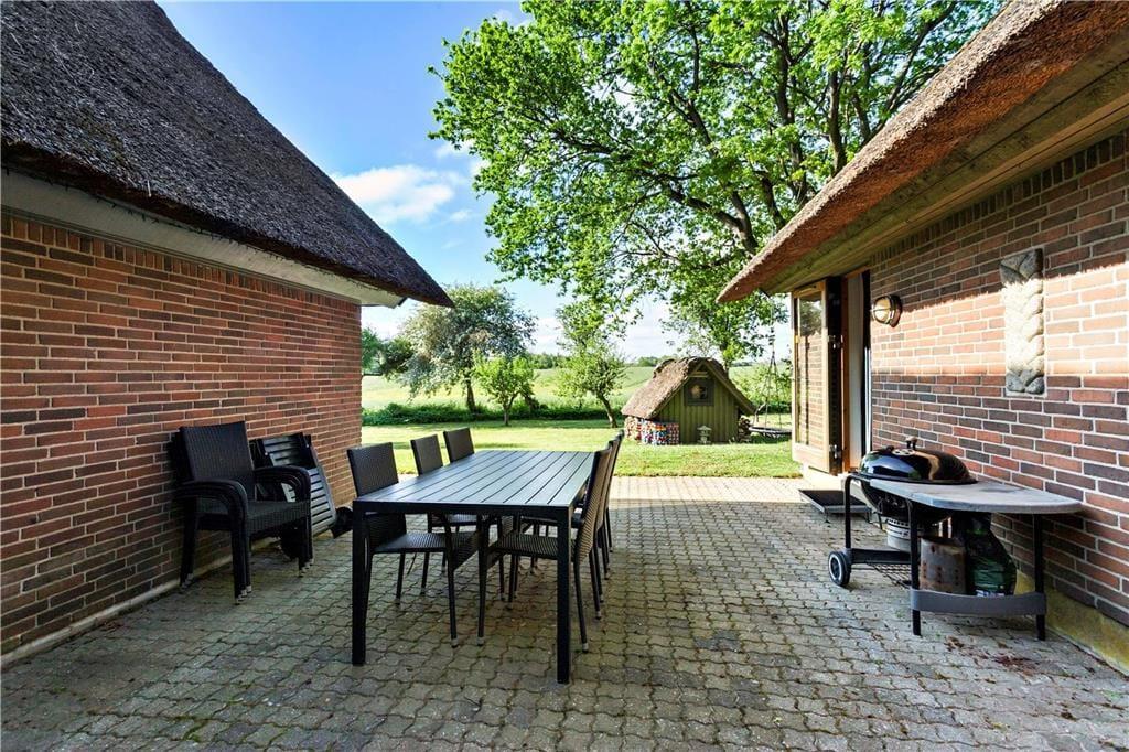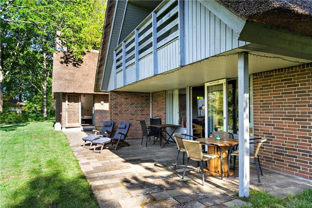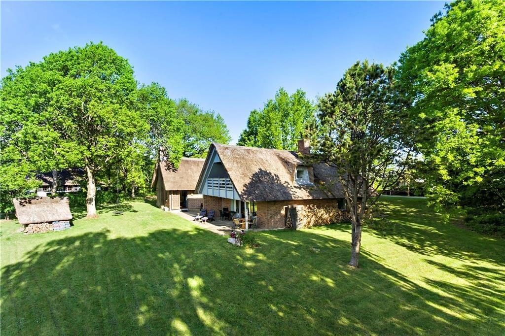 Großes und geräumiges Ferienhaus mit Reetdach in Båring Ege. Das Haus besteht aus einem Haupthaus und einem großen Nebengebäude - beide zweistöckig und direkt nebeneinander. Das Haupthaus umfasst im Erdgeschoss einen Eingangsbereich, ein Badezimmer mit Dusche, einen Hauswirtschaftsraum mit Waschmaschine und Trockner, ein Schlafzimmer sowie eine gut ausgestattete Küche in offener Verbindung zum Wohnzimmer. Von hier Zugang zu einer überdachten Terrasse und Treppe in den ersten Stock. Im ersten Stock gibt es zwei große Schlafzimmer und ein Badezimmer mit Dusche. Ein Schlafzimmer verfügt über einen Balkon mit Blick über den Garten und die Umgebung. In dem dazugehörigen Nebenhaus stehen im Erdgeschoss ein großes Badezimmer mit Fußbodenheizung, Whirlpool, Sauna, Dusche sowie eine separate Toilette zur Verfügung. Außerdem ist ein Schlafzimmer mit einem gemütlichen Kamin sowie eine Treppe zum Schlafboden mit Doppelbett vorhanden. Zum Haus gehört ein großes ungestörtes Grundstück, das viele Möglichkeiten für viele Aktivitäten bietet.