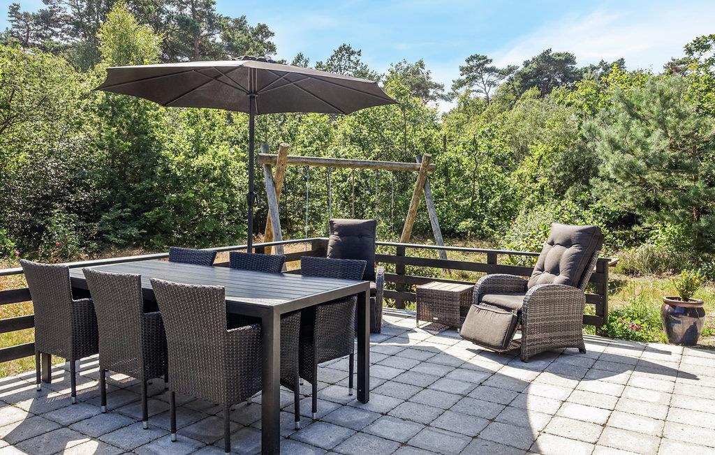 Auf der schönen Terrasse werden Sie gewiss viel Zeit verbringen. Hier können Sie sich in den Gartenmöbeln zurücklehnen oder den Grill nutzen, während die Kinder an der Schaukel sich vergnügen.