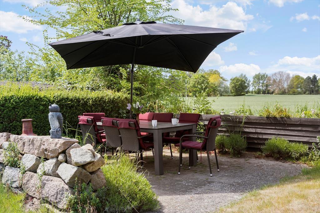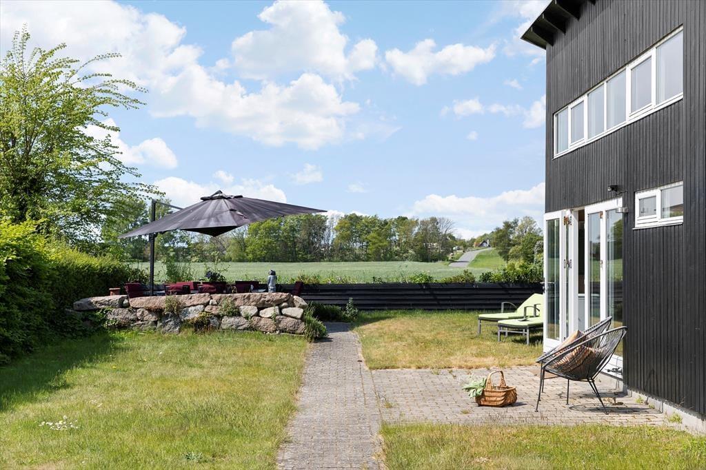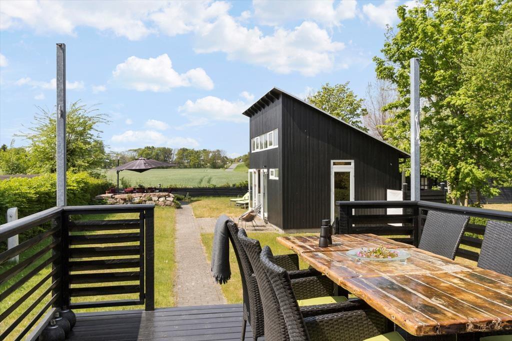 Das Sommerhaus liegt so dicht am Strand, dass man die Wellen hört. Der Garten ist sehr gepflegt und durch einen Lattenzaun gut gegen Einblick von außen und den Strandweg abgeschirmt. Die Outdoor-Küche mit kaltem Wasser, Gasgrill und vielen Küchenkräutern steht zur freien Verfügung. Es gibt mehrere schöne Terrassen: Eine erhöhte Holzterrasse Richtung Westen mit Abendsonne, jeweils eine östlich und westlich des Sommerhauses und eine beim Nebengebäude.