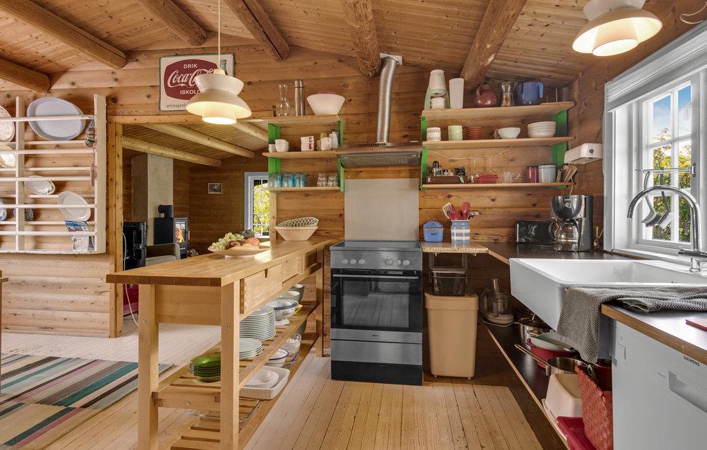 Das gemütliche Blockhaus empfängt Sie nahe dem Strand. Es ist geräumig und bietet ausreichend Platz für die ganze Familie. Im Wohnbereich, der durch das viele Holz warm und heimelig wirkt, könen die Kleinen spielen und die Großen kochen und später noch lange zusammen sitzen. Die bequemen Sofas laden zu langen Abenden am Kaminofen ein, der seine wohlige Wärme verströmt und zur behaglichen Atmosphäre beiträgt. Zusätzliche Unterhaltung finden Sie, wenn Sie Ihren eigenen Chromecast-Stick mitbringen, denn eine TV und Internet sind vohanden.