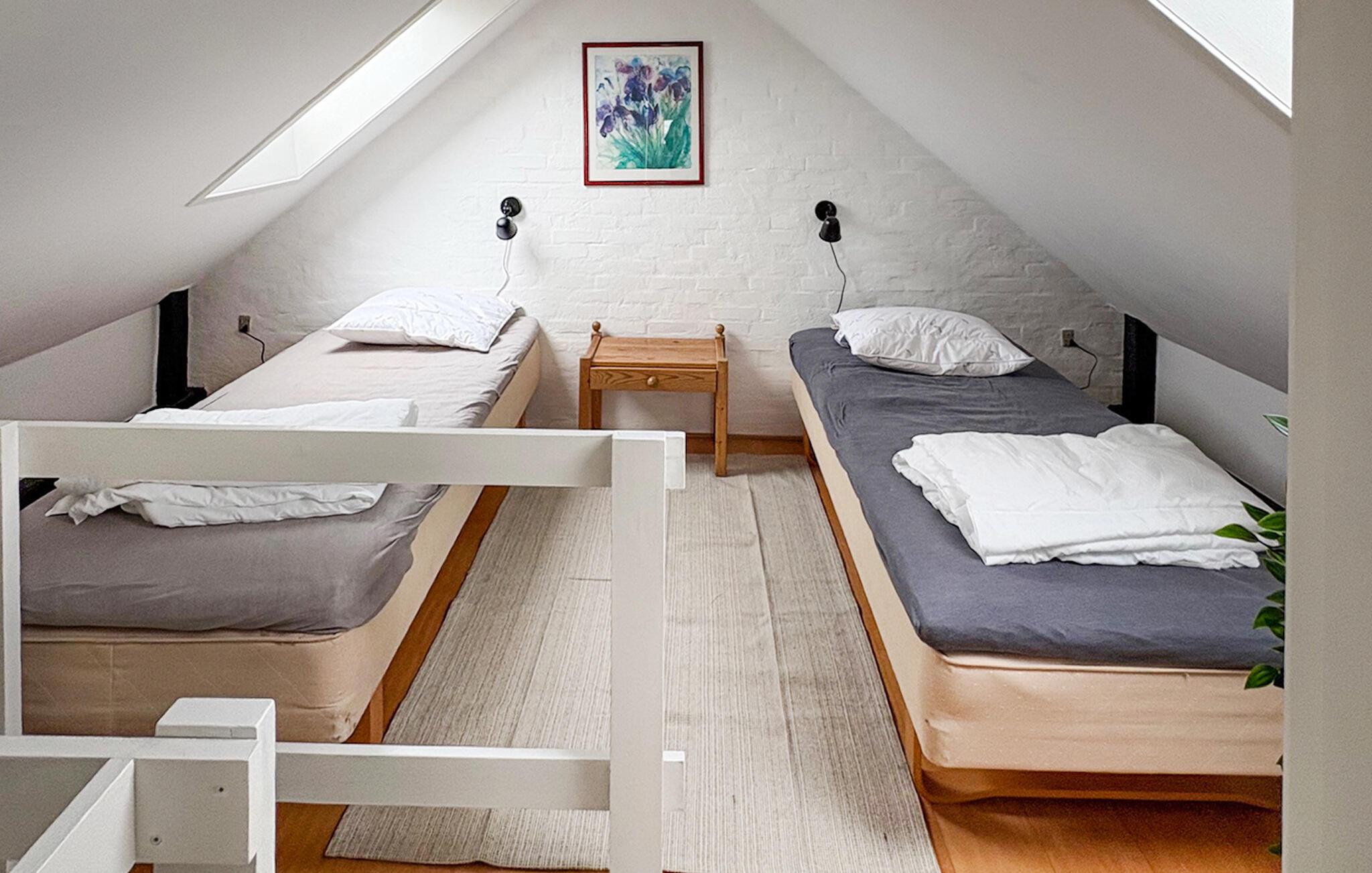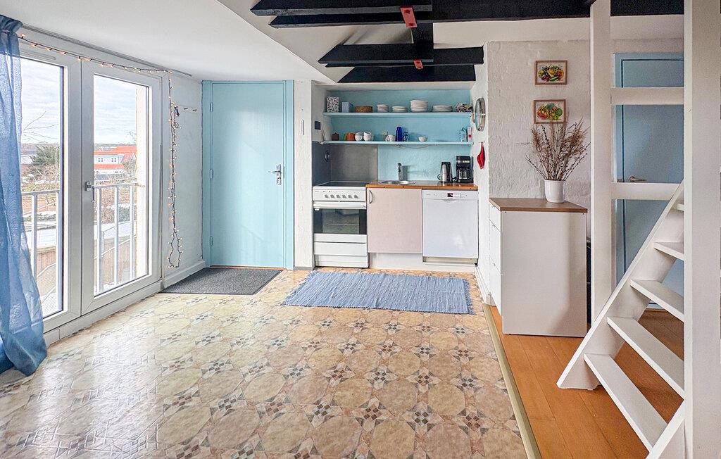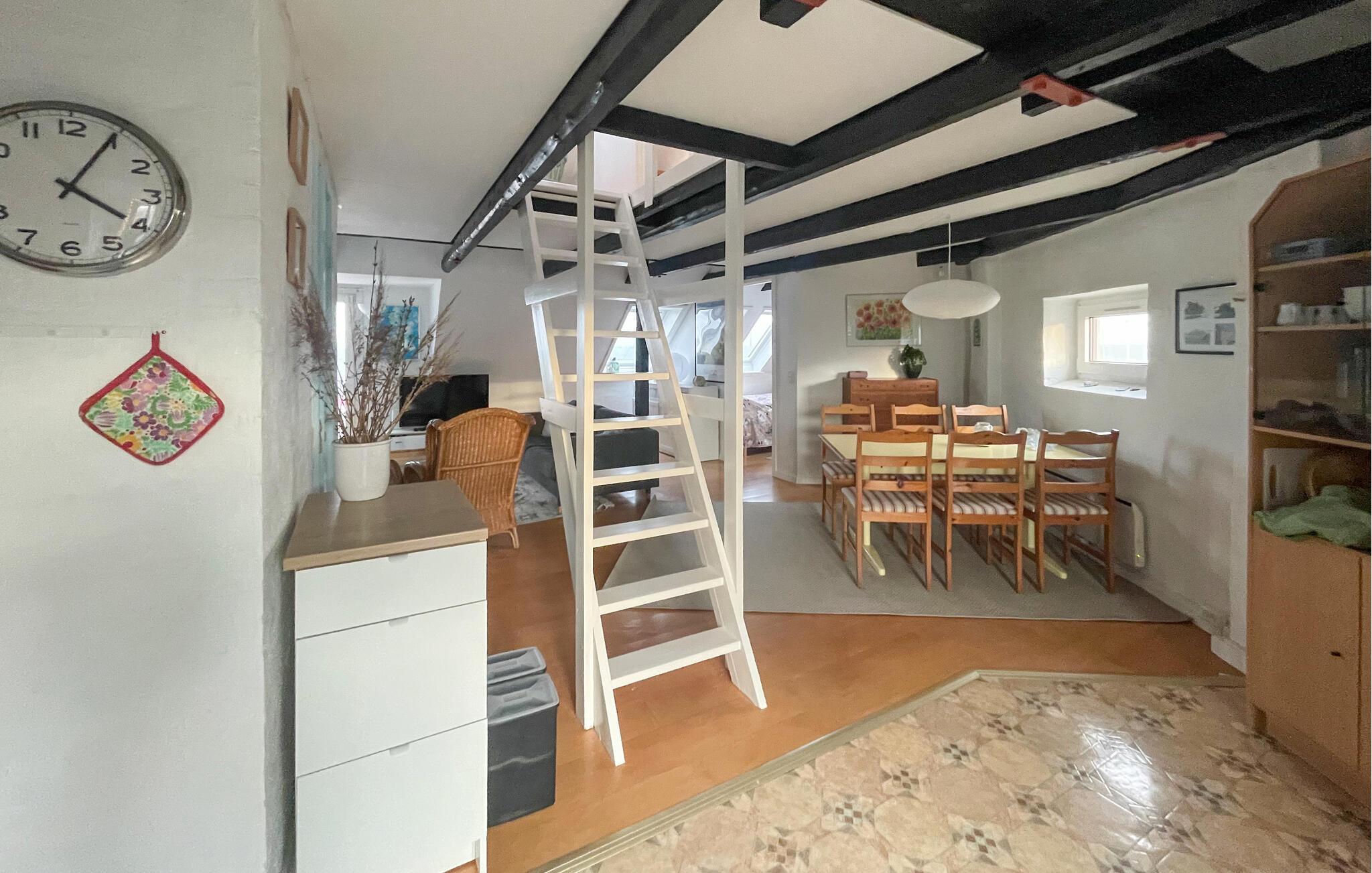 Die gemütliche Wohnung voller interessanter Details und mit sichtbaren Deckenbalken eignet sich gut für einen entspannten Urlaub in zentraler Lage am Hafen von Ballen. Hier wissen Sie stets, was im Hafen vor sich geht, denn Sie haben einen wunderbaren Meerblick, der morgens beim Frühstück oder bei Kaffee und Kuchen am Nachmittag eine wahre Freude ist.