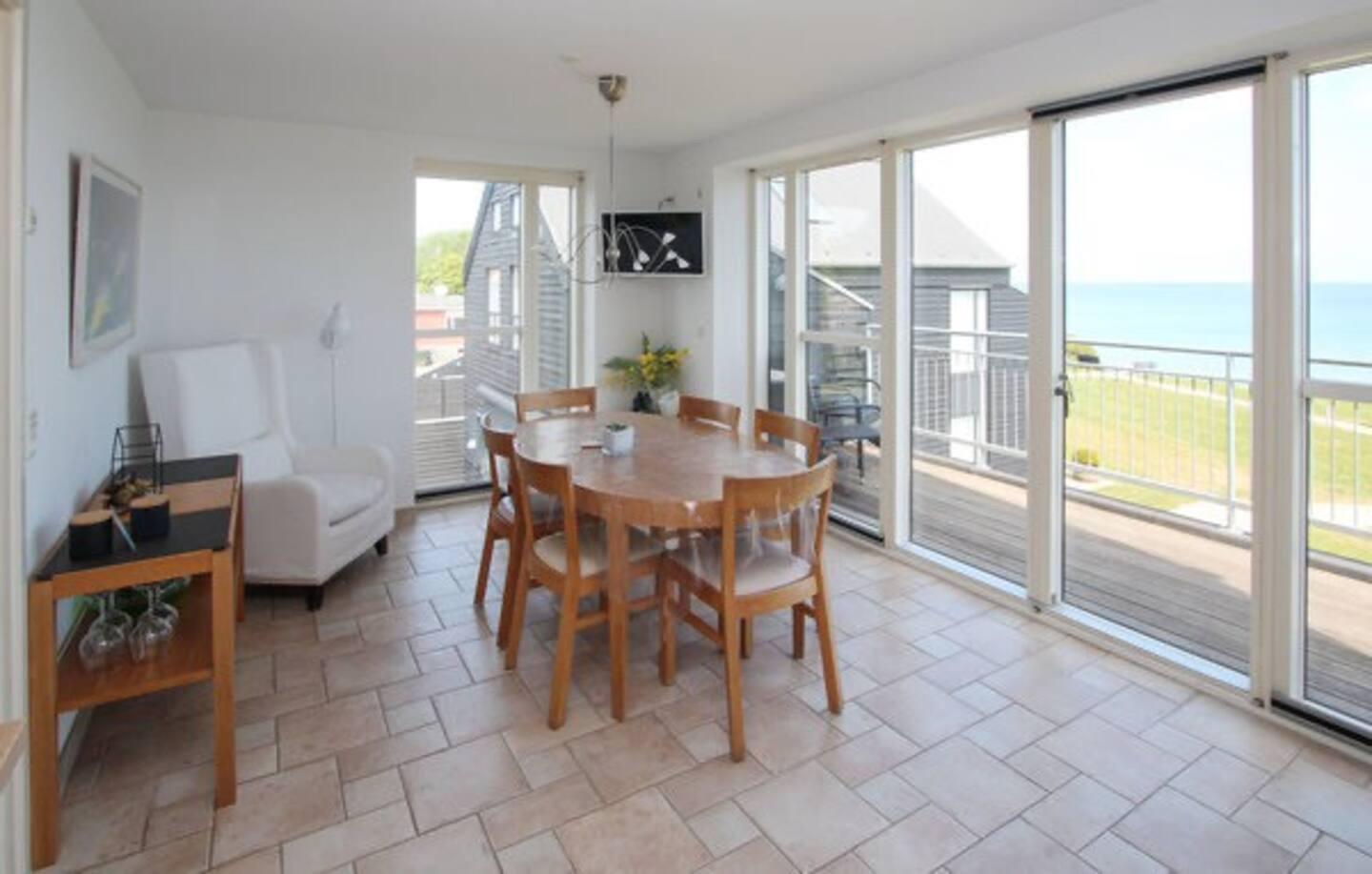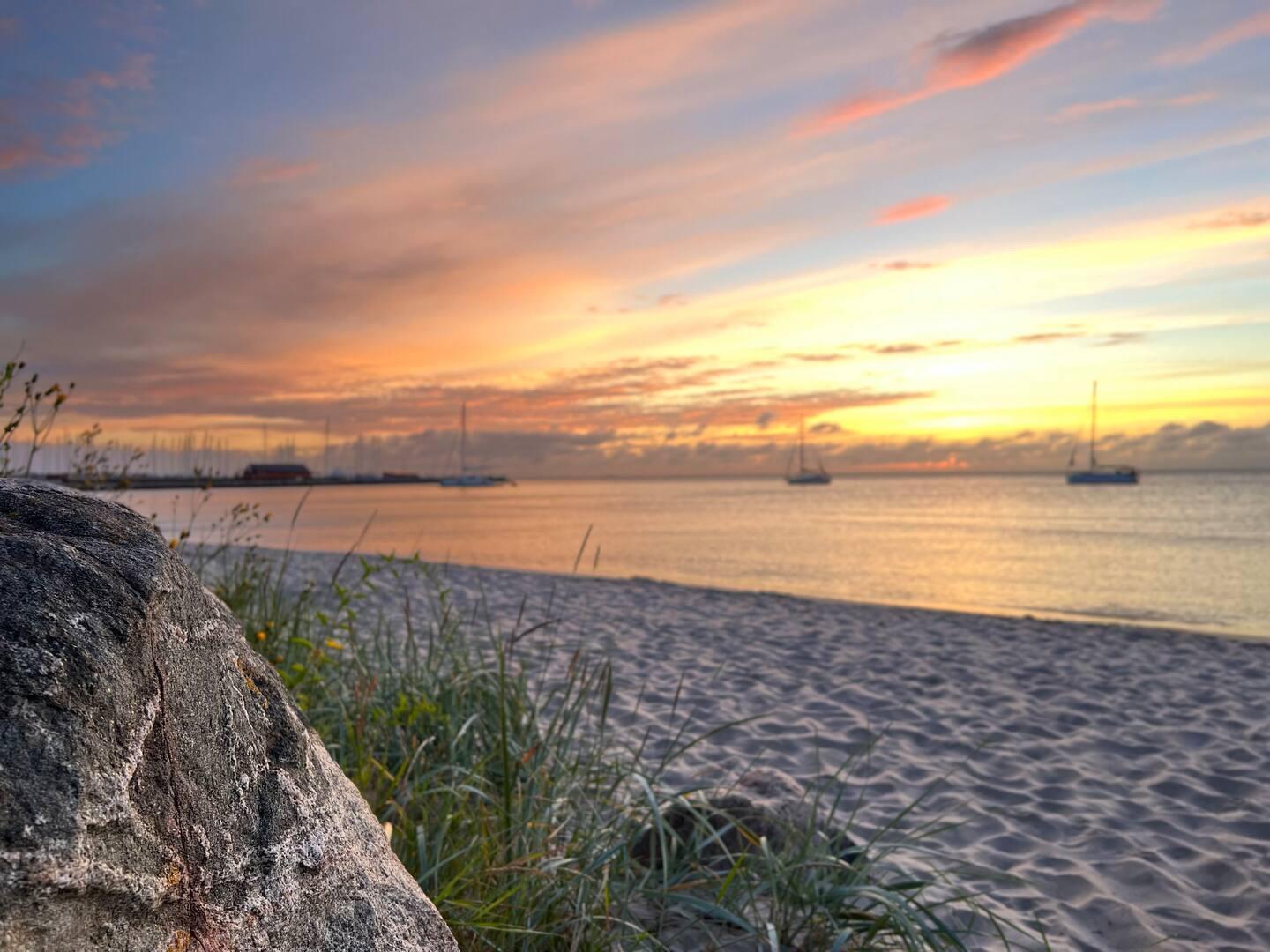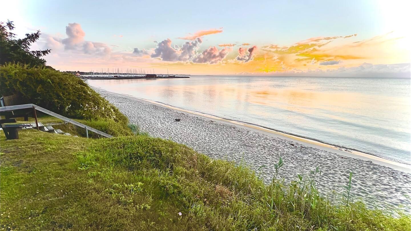 Welcome to a lovely holiday flat in the heart of Ballen – spread over two floors and with one of Samsø's best beaches right outside the door. Here you will find the setting for a holiday filled with light, togetherness and the most beautiful view of the sea.