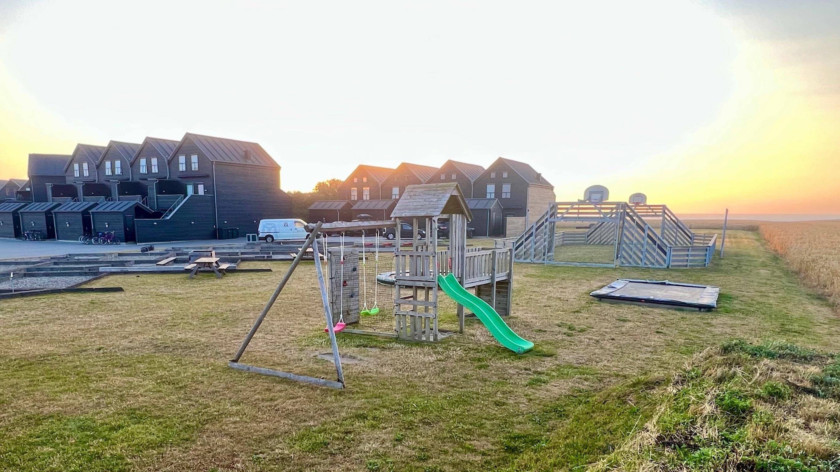 On the terrace, you can enjoy the sun all day long – and the awning provides shade when it gets too hot. There is plenty of space for relaxation and socialising, while the children have fun in the communal playground with a trampoline, ball court and swings.