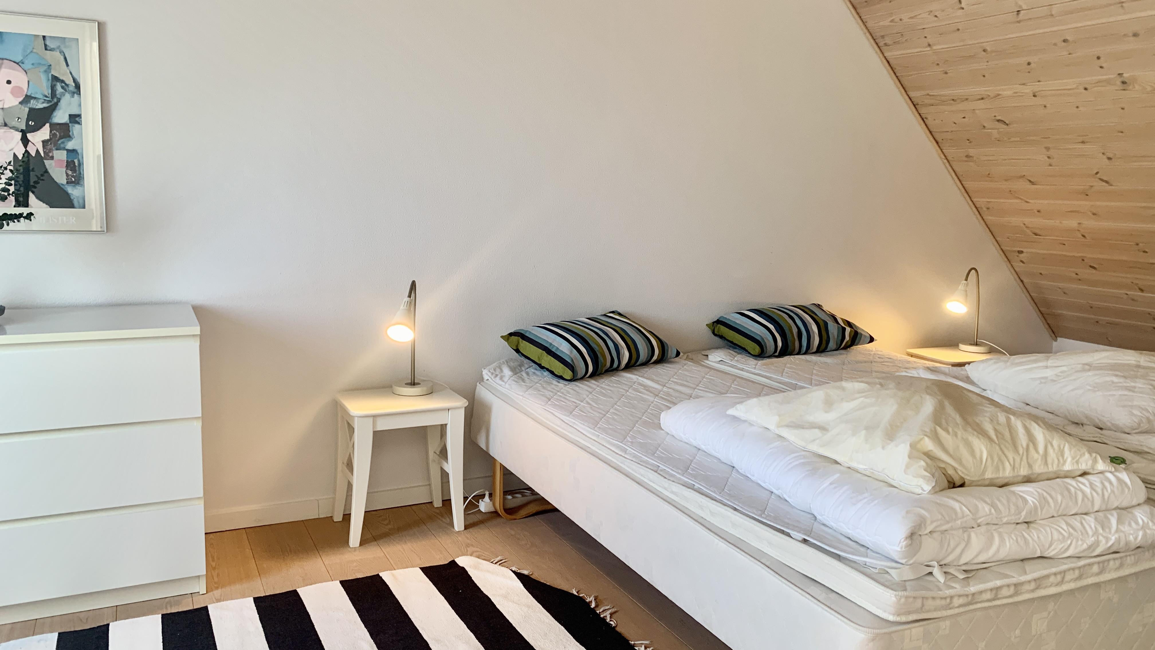 On the first floor, there are two bedrooms—one with a double bed and one with two single beds—as well as an additional toilet. The house is ideal for up to four people and provides comfortable space for both relaxation and socializing.