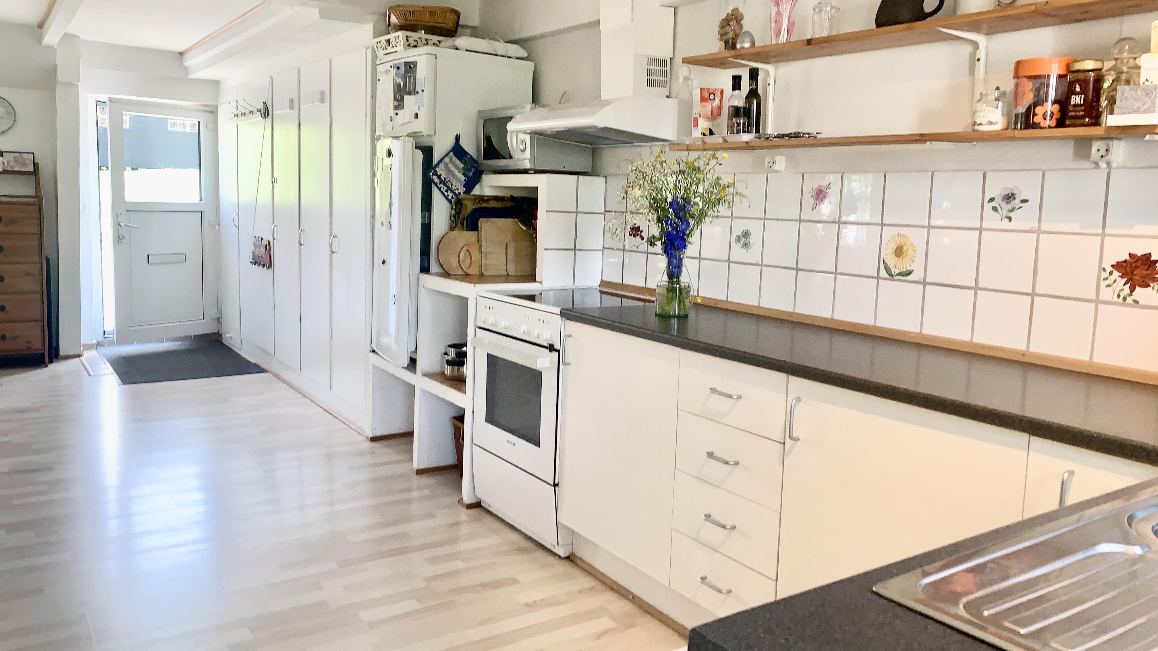 Outside, you can enjoy the beautiful and secluded garden with a sunny terrace – perfect for morning coffee, lunch outdoors or long summer evenings.