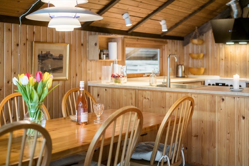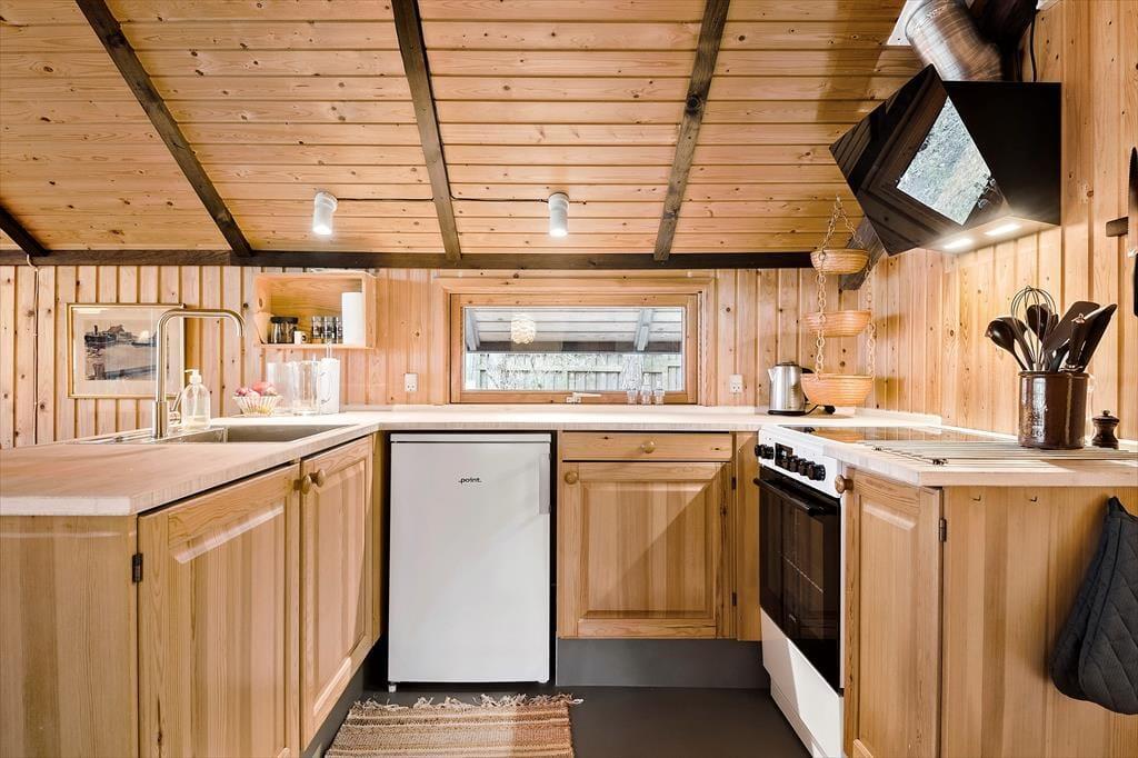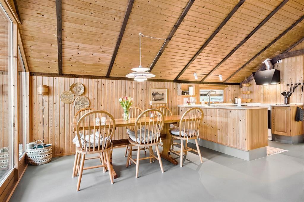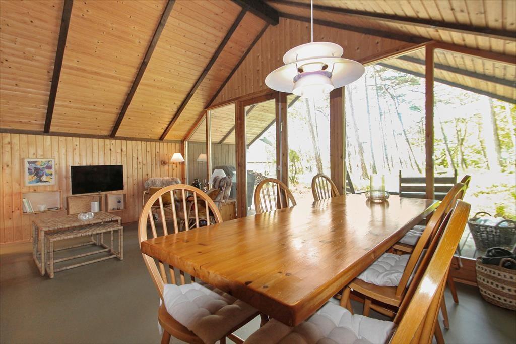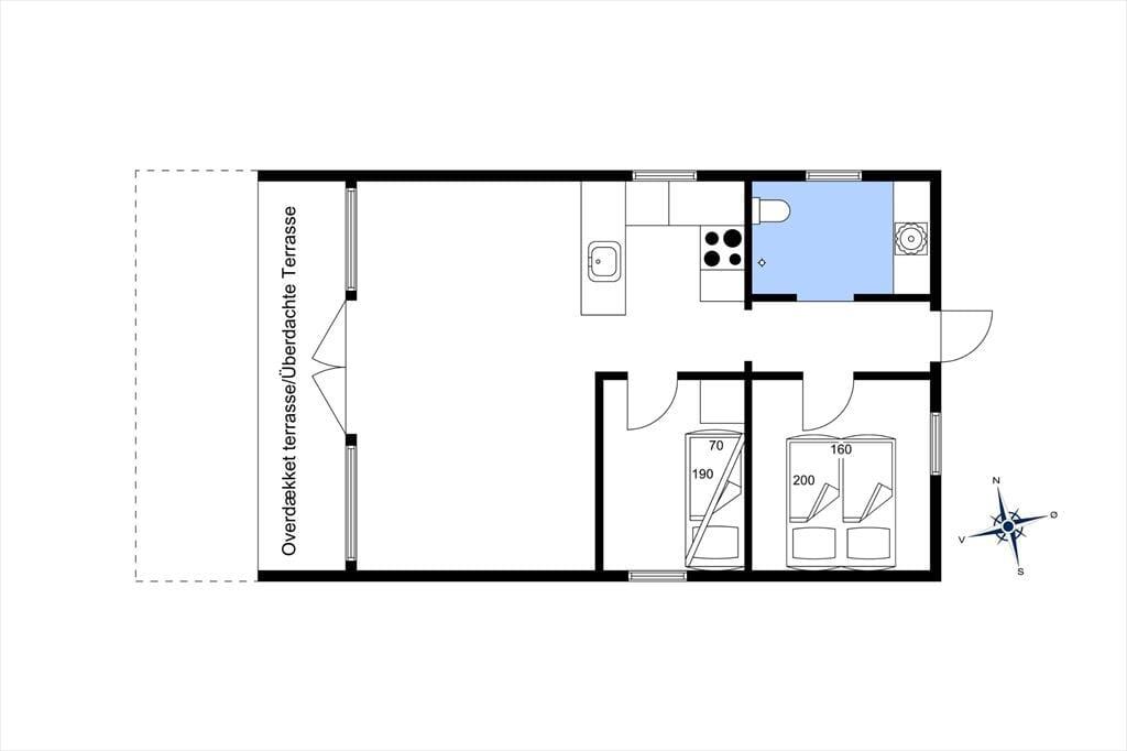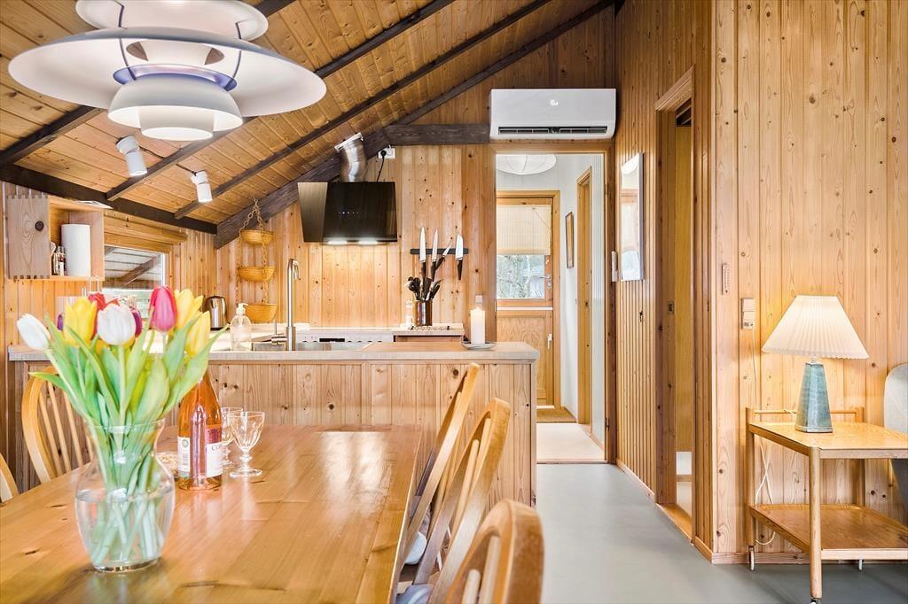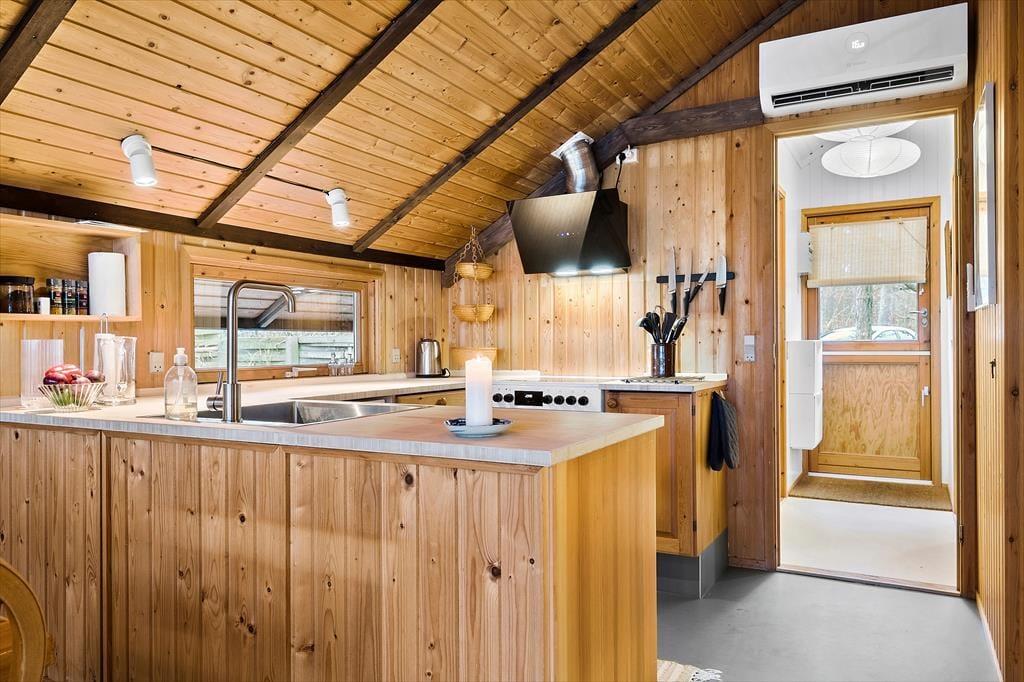 Das teilweise im Jahr 2024 modernisierte Urlaubsdomizil begrüßt dich mit einem kombinierten Küchen-, Wohn- und Essbereich. In der Küche stehen dir ein Induktionskochfeld, ein Kühlschrank mit kleinem Gefrierfach, eine Kaffeemaschine und ein Wasserkocher hilfreich zur Seite. Vom Aufenthaltsraum trittst du direkt hinaus auf eine teilweise überdachte Terrasse. Mach es dir mit deinen Lieben in aller Ruhe im Wohnraum auf dem Sofa, in den Lehnstühlen oder rund um den Esstisch gemütlich. Für Abwechslung und Unterhaltung sorgt derweil der Smart-TV mit dänischen Sendern und Streamingmöglichkeiten. Zum Nutzen von Streamingdiensten benötigst du ein privates Streamingabo. Der Rest der Wohnfläche ist einem Badezimmer mit Duschnische und zwei Schlafräumen überlassen. Einer der Schlafräume bietet ein Doppelbett, im anderen steht ein Etagenbett (70 x 190 Zentimeter) bereit. An kühlen Tagen garantieren eine Wärmepumpe und Elektroheizkörper behagliche Temperaturen.