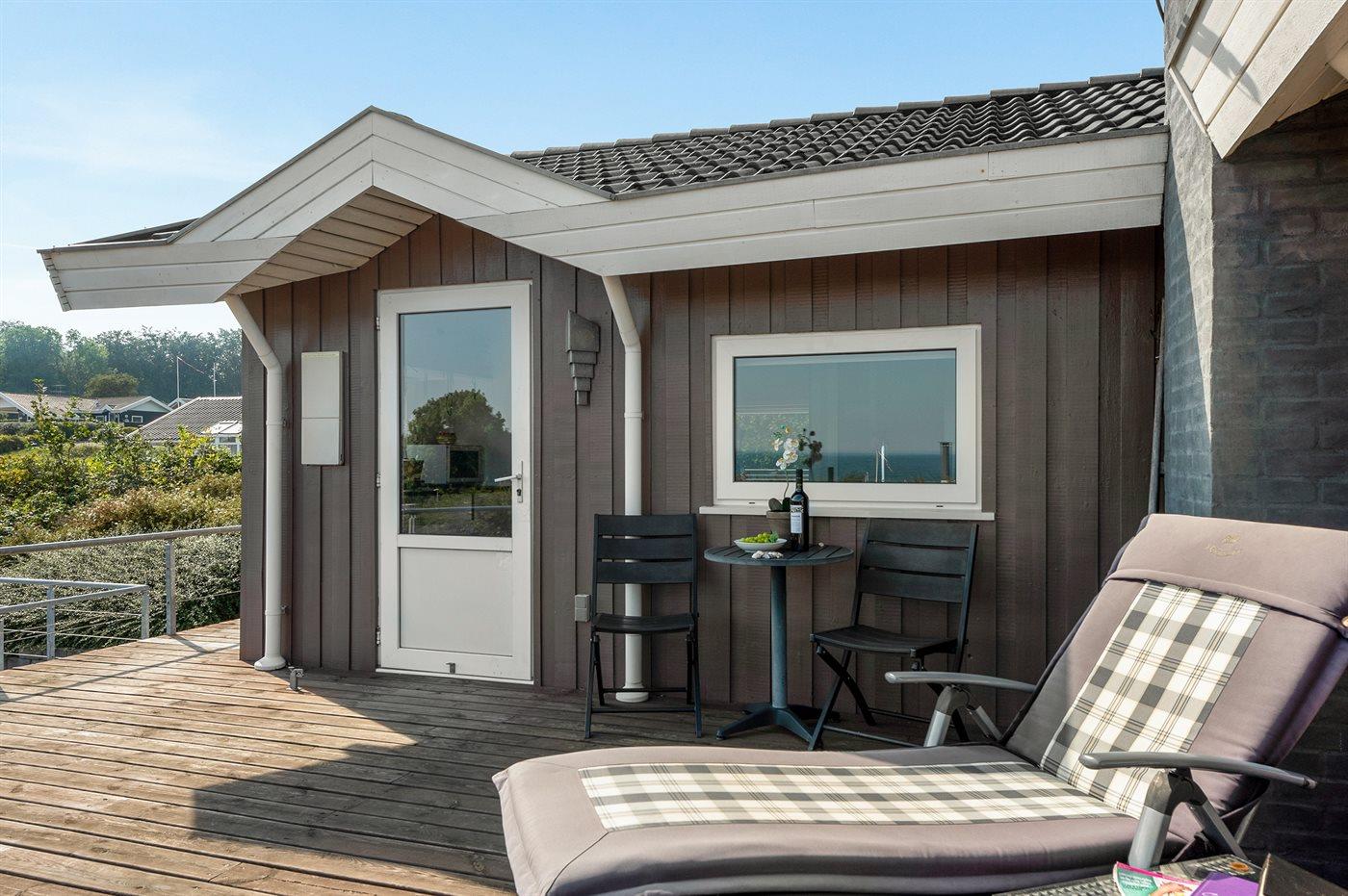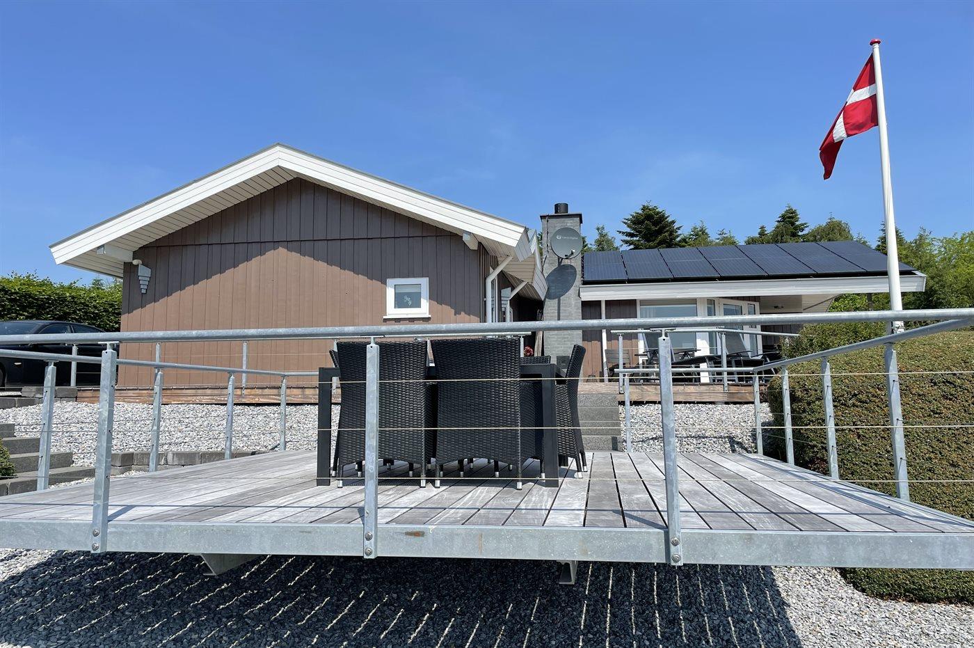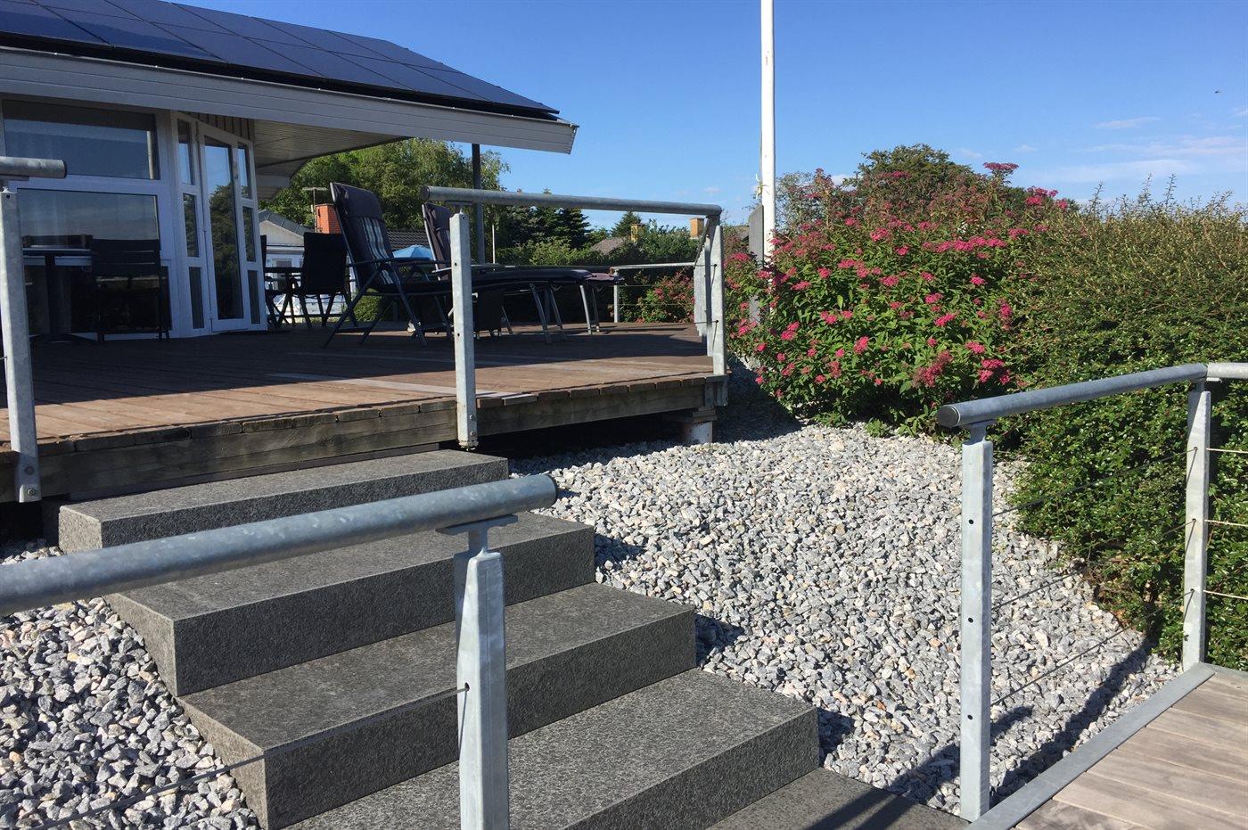 The holiday home is situated on a 462 m² garden site. Situated 150 m from the sea. A bathing jetty is available nearby. Nearest shop is 200 m away. A 47 m² terrace belong to the holiday home. Furthermore the house has a 9 m² covered terrace. Parking place by the holiday home.
