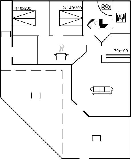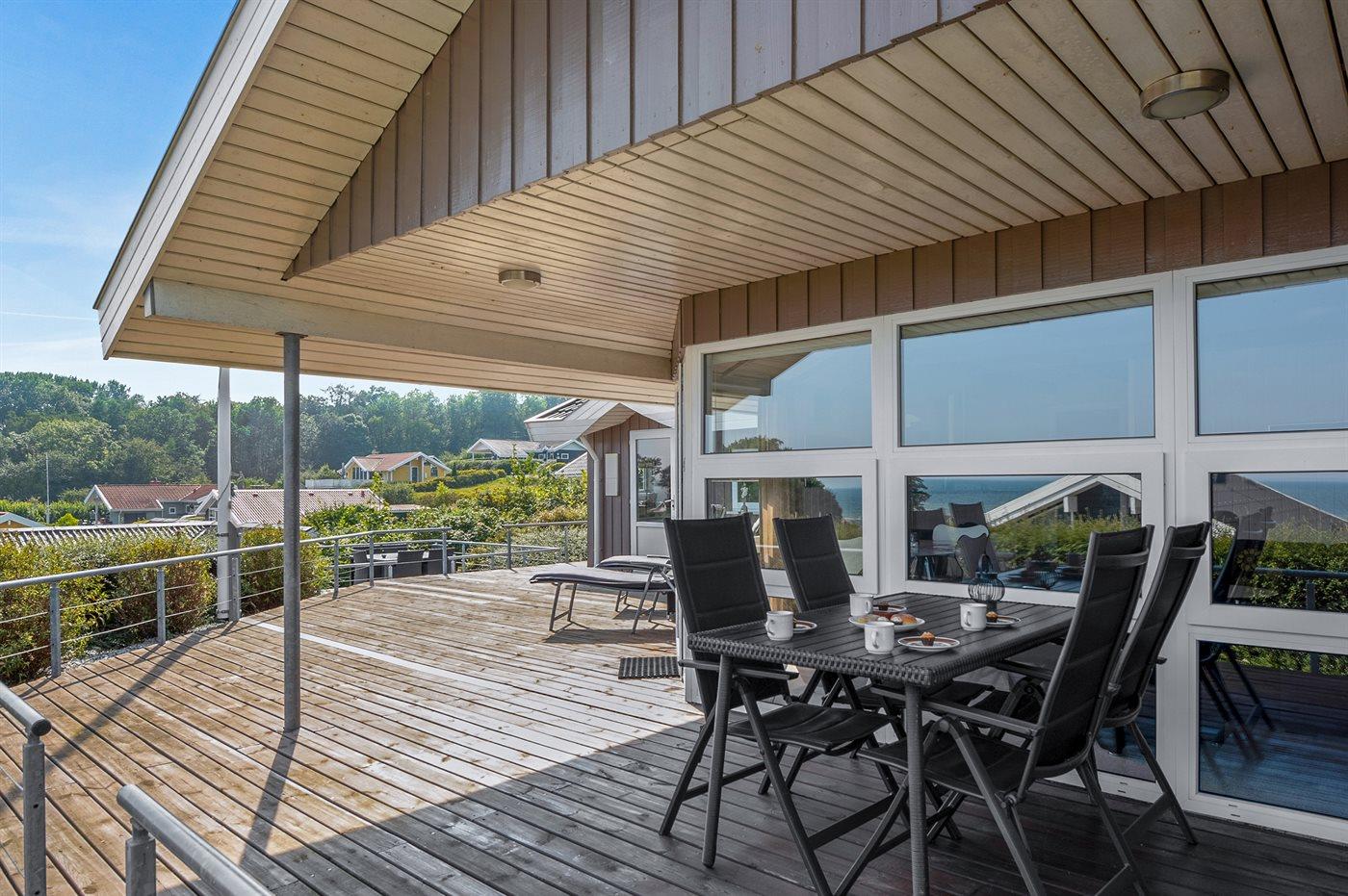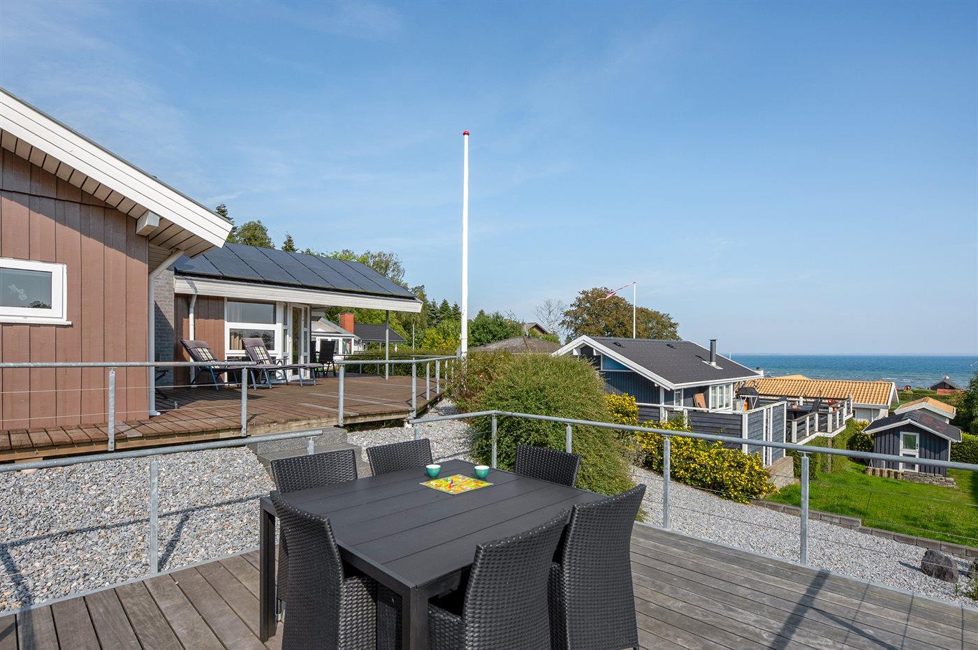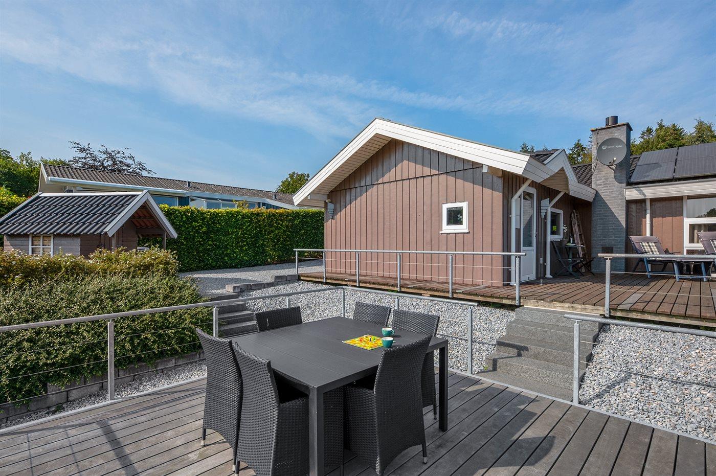 The holiday home is situated on a 462 m² garden site. Situated 150 m from the sea. A bathing jetty is available nearby. Nearest shop is 200 m away. A 47 m² terrace belong to the holiday home. Furthermore the house has a 9 m² covered terrace. Parking place by the holiday home.