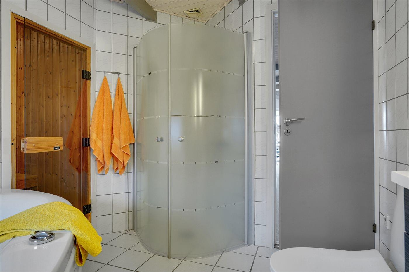 There is 1 bathroom with shower cabinet and 1 toilet.. There is floor heating in 1 bathroom. The sauna offers opportunity for relaxation.