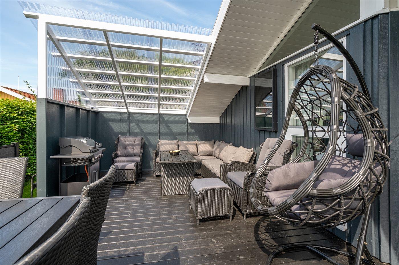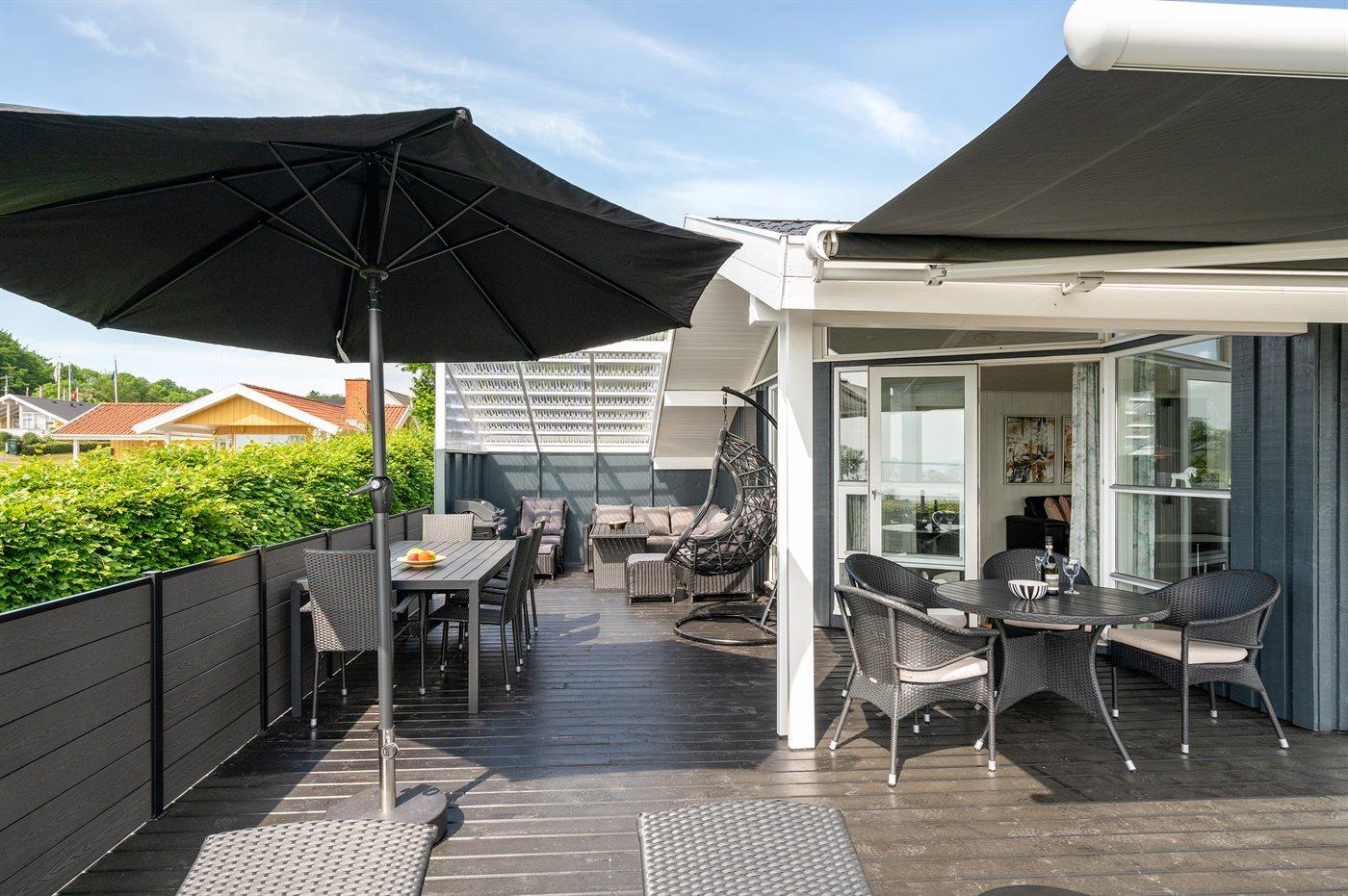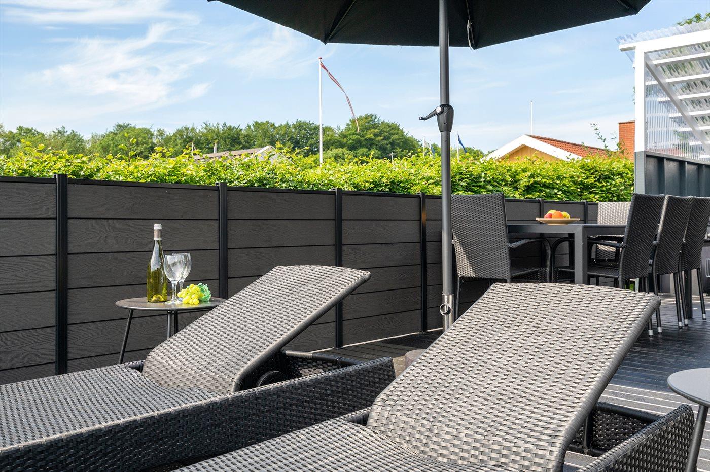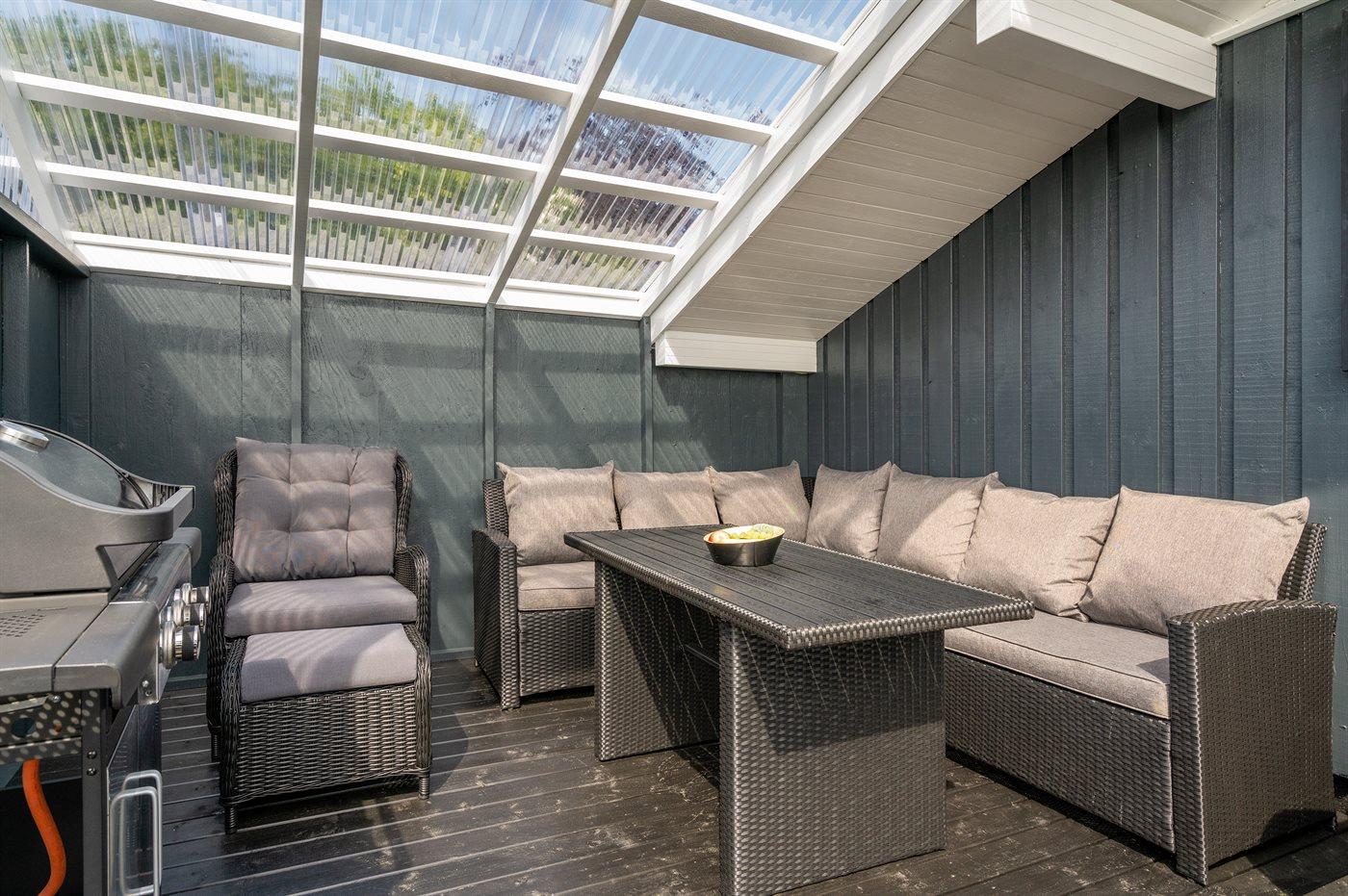 The holiday home is situated on a 458 m² garden site. Situated 250 m from the sea. A bathing jetty is available nearby. Nearest shop is 200 m away. A 80 m² terrace belong to the holiday home. Furthermore the house has a 23 m² covered terrace. Barbecue at your disposal. Parking place by the holiday home.