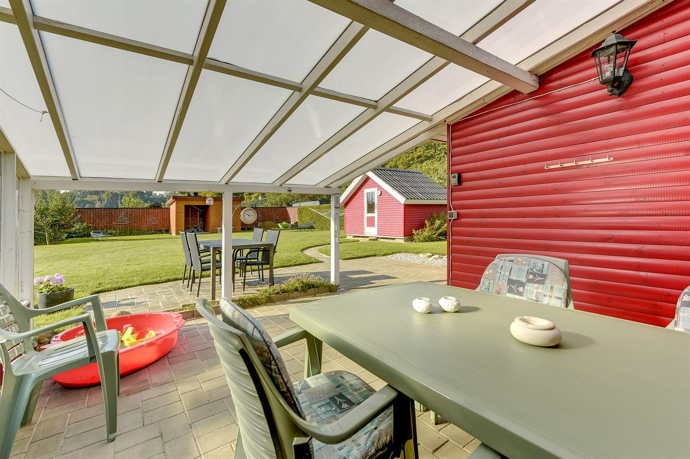 The holiday home is situated on a 801 m² garden site. Situated 200 m from the sea. Nearest shop is 500 m away. A 20 m² terrace belong to the holiday home. Furthermore the house has a 20 m² covered terrace. Sandbox. Plug for charging electric car is available. Charging socket type 2. With 11 kW power output. Parking place by the holiday home.