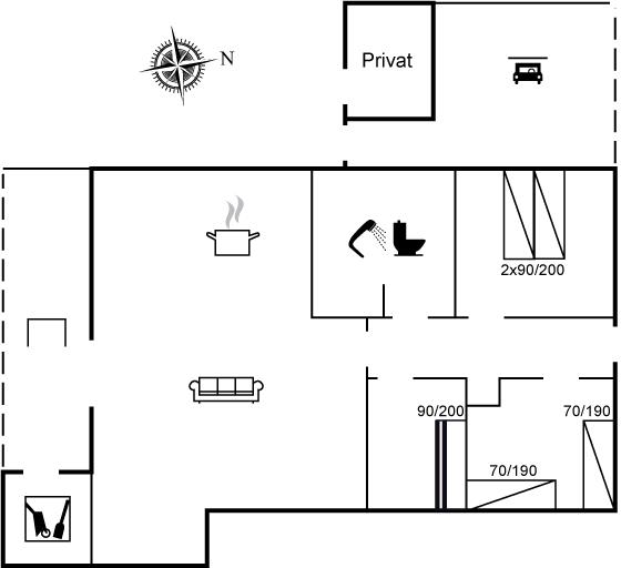 The holiday home is situated on a 375 m² garden site. The site is fenced in. Situated 200 m from the sea. A bathing jetty is available nearby. Nearest shop is 5000 m away. A terrace belong to the holiday home. Furthermore the house has a covered terrace. You find a tool shed. Sandbox. Situated 300 m from a playground. Barbecue at your disposal. Carport is at your disposal. Parking place by the holiday home.