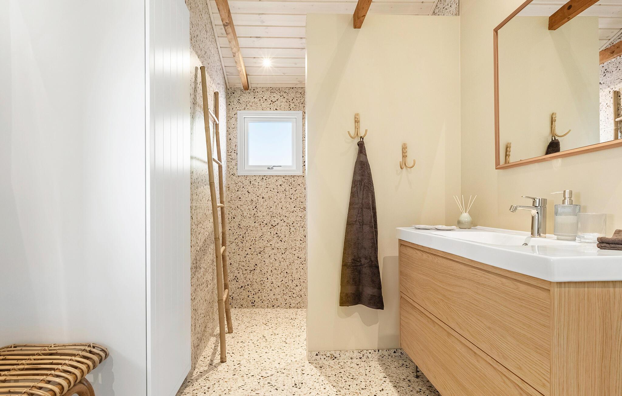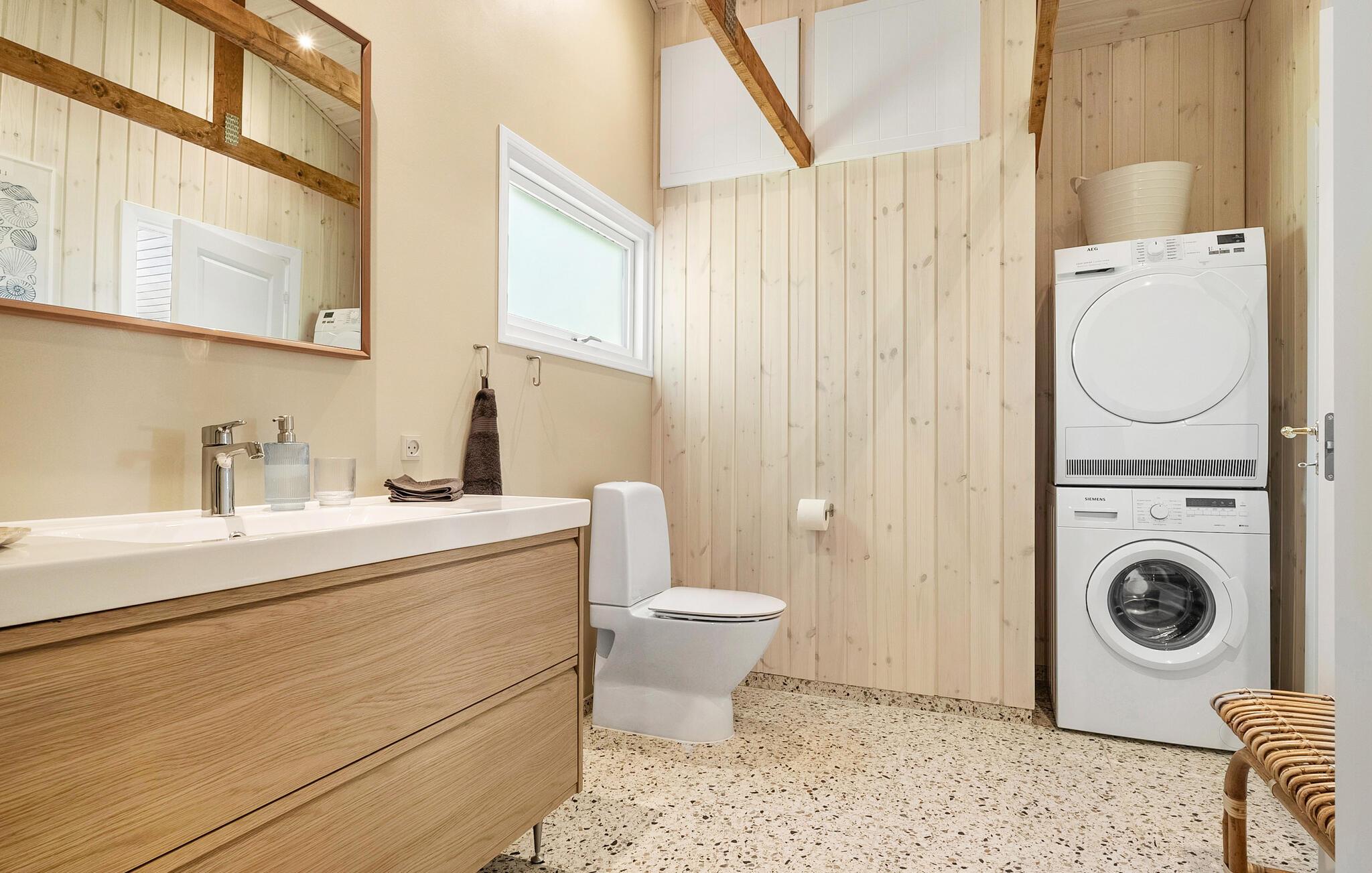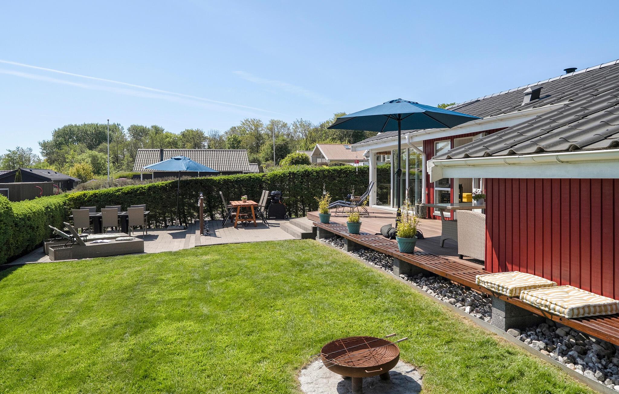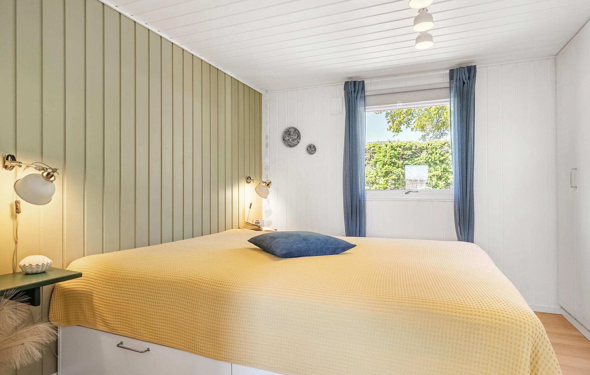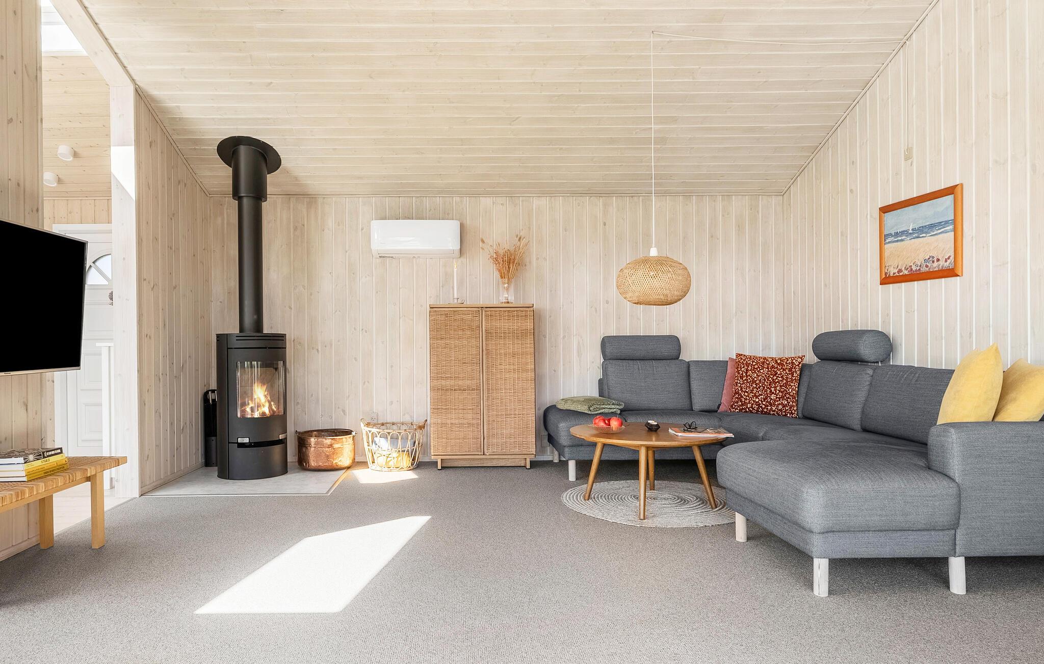 Nur wenige Schritte vom kinderfreundlichen Strand entfernt, genießen Sie in diesem Ferienhaus Erholung pur. Das Haus beeindruckt mit seiner behaglichen Einrichtung und einem durchdachten Design. Der offene Wohnbereich lädt mit seinen bequemen Sofas und einem Kaminofen zum Verweilen ein. Genießen Sie den Panoramablick auf das Wasser durch die großen Fenster, während Sie in der Küche Ihre Mahlzeiten zubereiten. Der angrenzende Wintergarten ist ein Highlight des Hauses und bietet Ihnen zu jeder Jahreszeit einen geschützten Platz mit Aussicht.