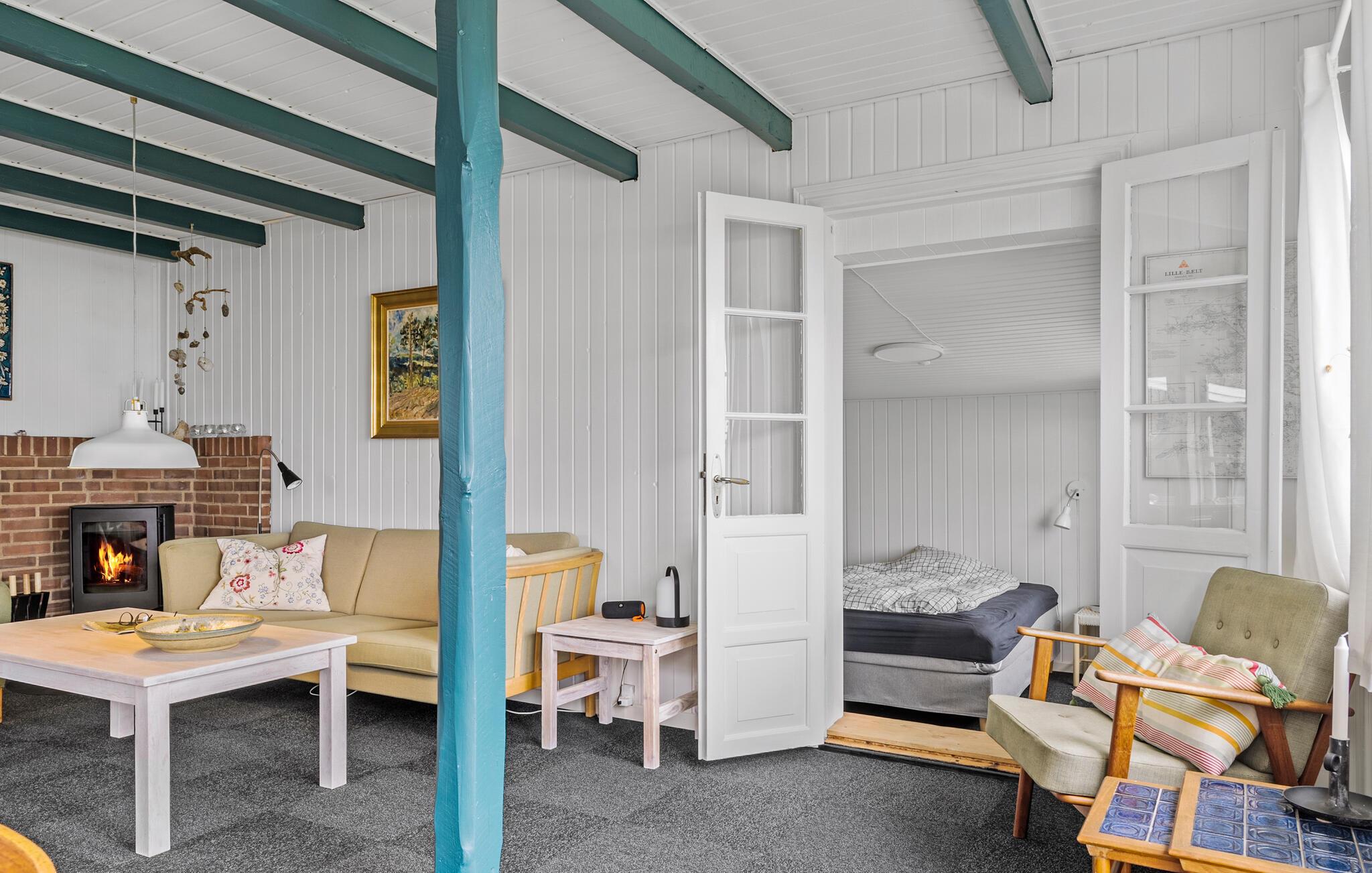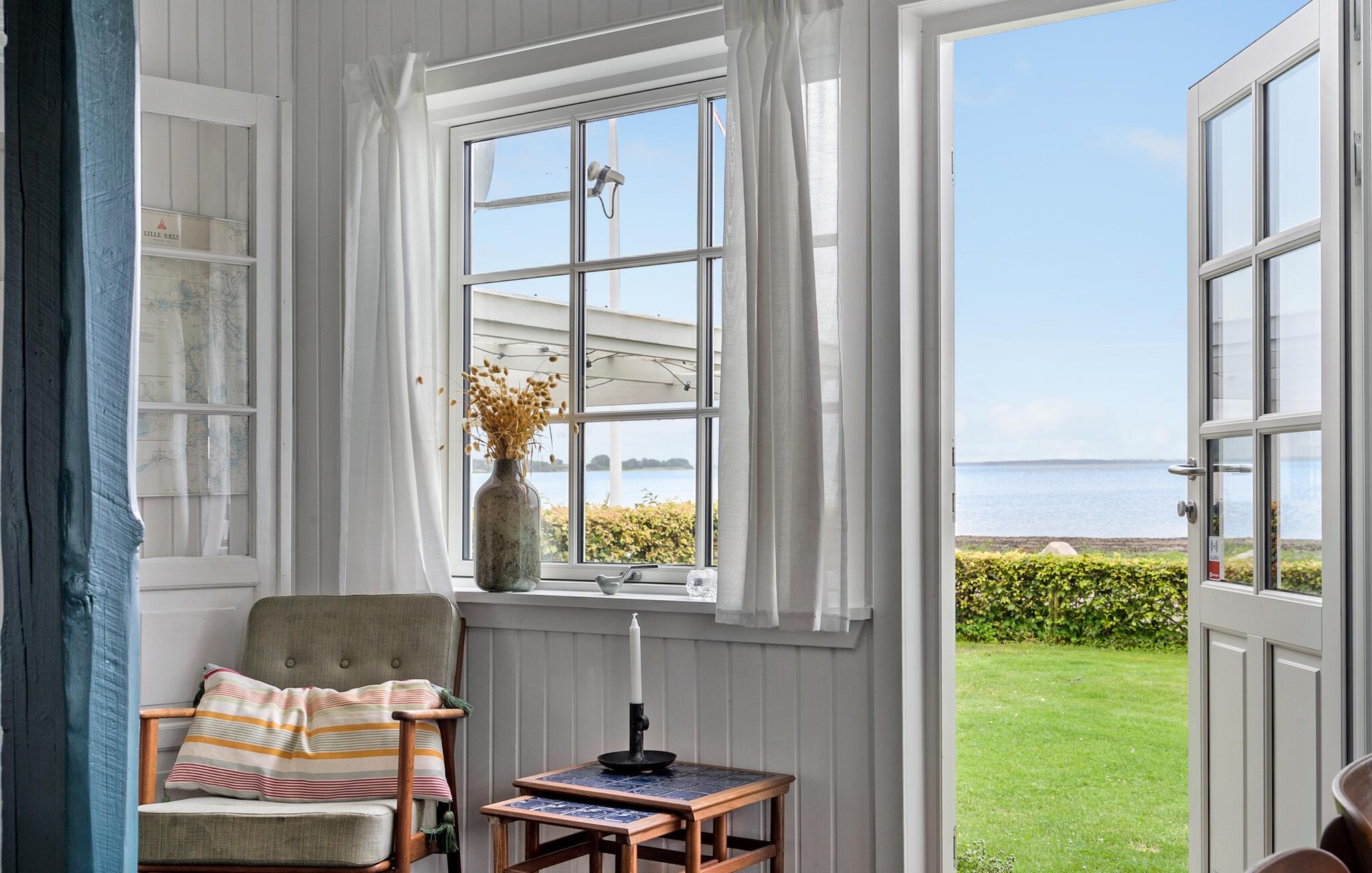 In der ersten Reihe zum Strand liegt dieses gemütliche hübsche Ferienhaus und bietet eine Panoramaaussicht auf den Kleinen Belt. Die Umgebung ist ein ruhiges Fereinhausgebiet. Wenn Sie im Urlaub mit einer schönen Aussicht aufwachen wollen, dann wird Sie dieses Ferienhaus in Binderup Strand nicht enttäuschen. Es handelt sich hier um ein Holzhaus von 1927 mit viel Charme und Behaglichkeit. Es gibt jedoch eine teilweise moderne Küche, einen Kaminofen und zwei schöne Badezimmer. Im Haus ist eine Wärmepumpe instaliert. Der Strand an der Küste ist wundervoll und hier können Sie auch gut Kite-Surfen, joggen und spazieren. Es gibt auch einen schönen Wald. Ein paar Kilometer entfernt, in Kolding, gibt es einen Bootsverleih, auch Fahrräder können gemietet werden. In Kolding sehenswert sind das Koldinghus, der Geografisk Have und das Kunstmuseum Trapholt. Sehenswert sind ebenso Haderslev und der Dyreparken.