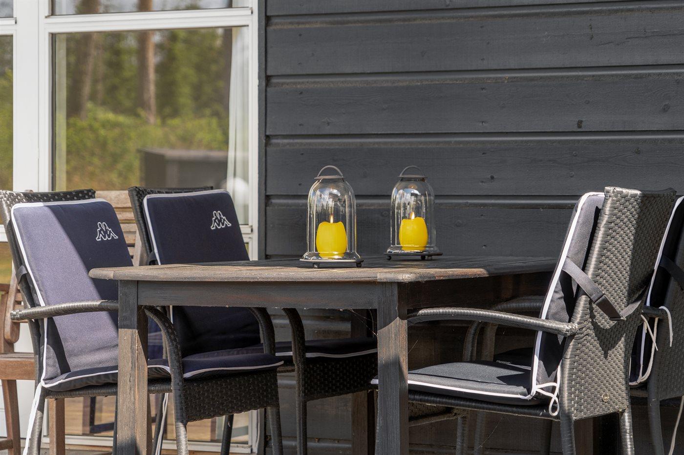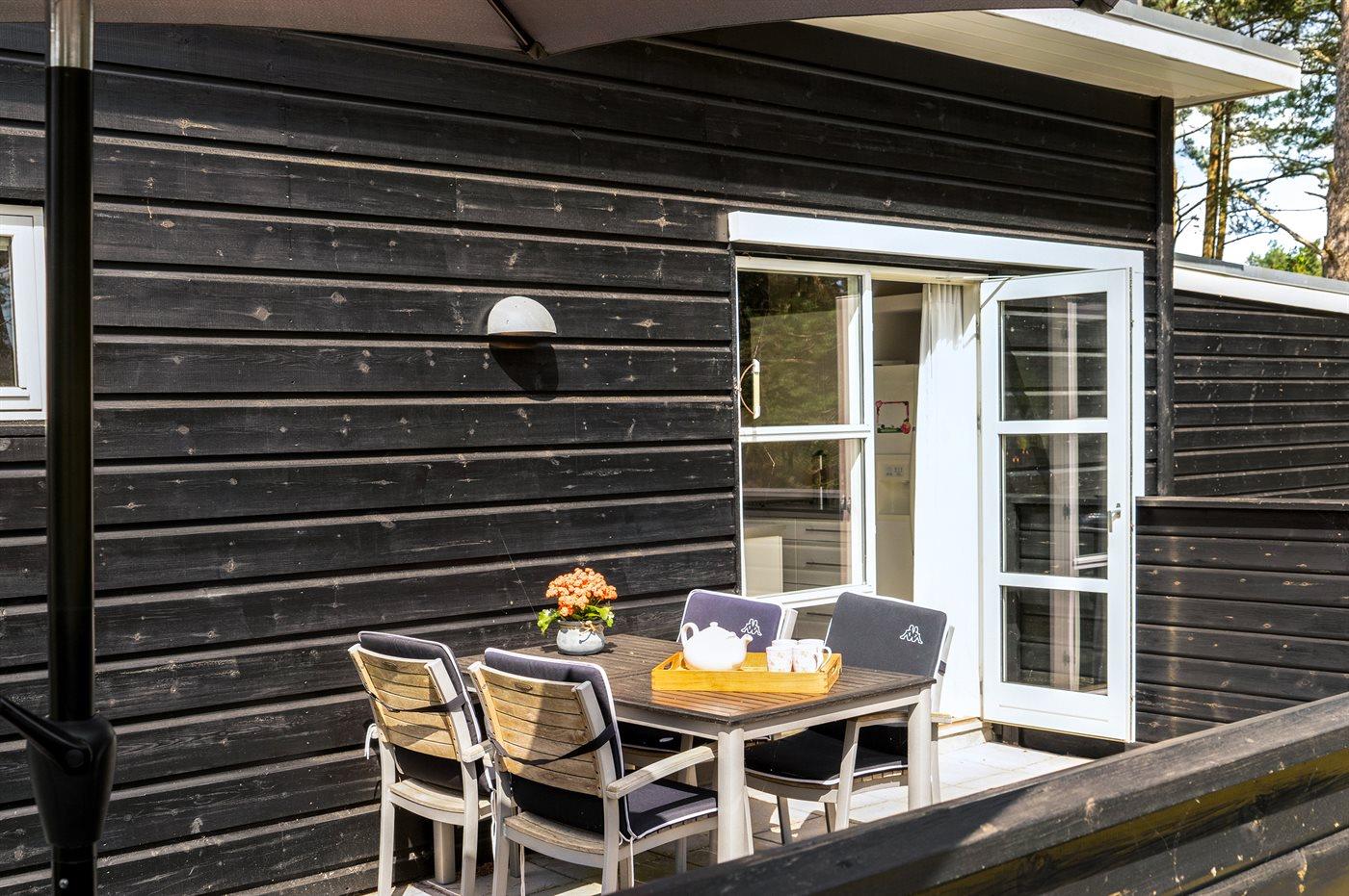 The holiday home is situated on a 1178 m² garden site. Situated 400 m from the sea. Nearest shop is 2000 m away. A 50 m² terrace belong to the holiday home. Furthermore the house has a 20 m² covered terrace. Barbecue at your disposal. Parking place by the holiday home.