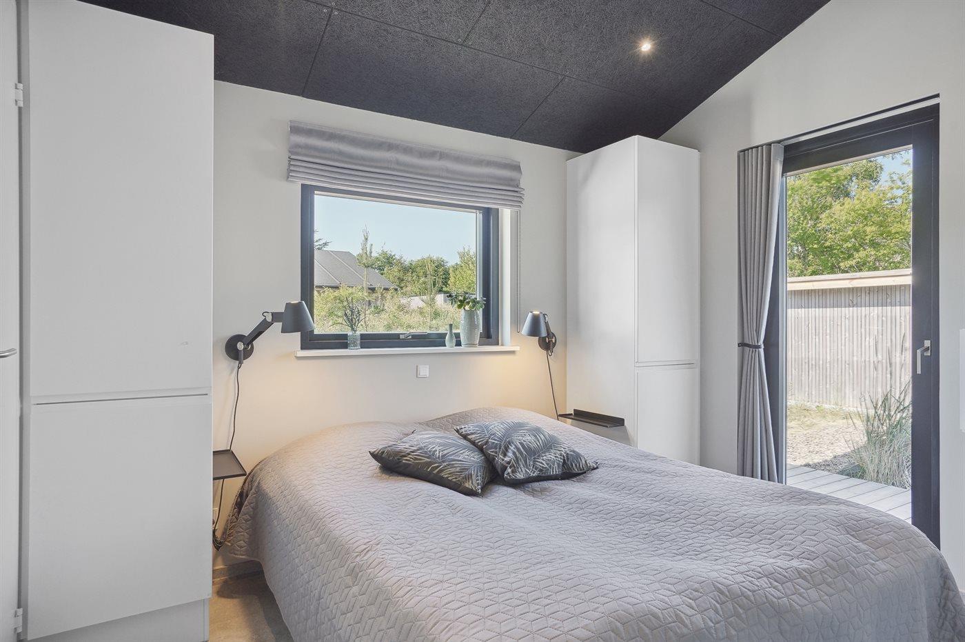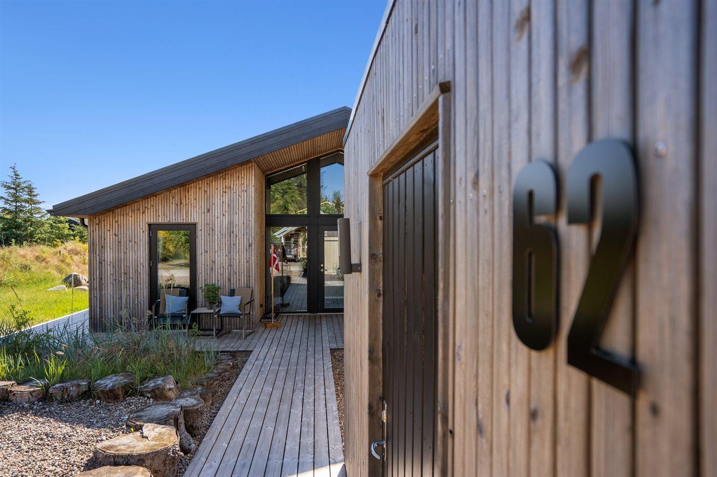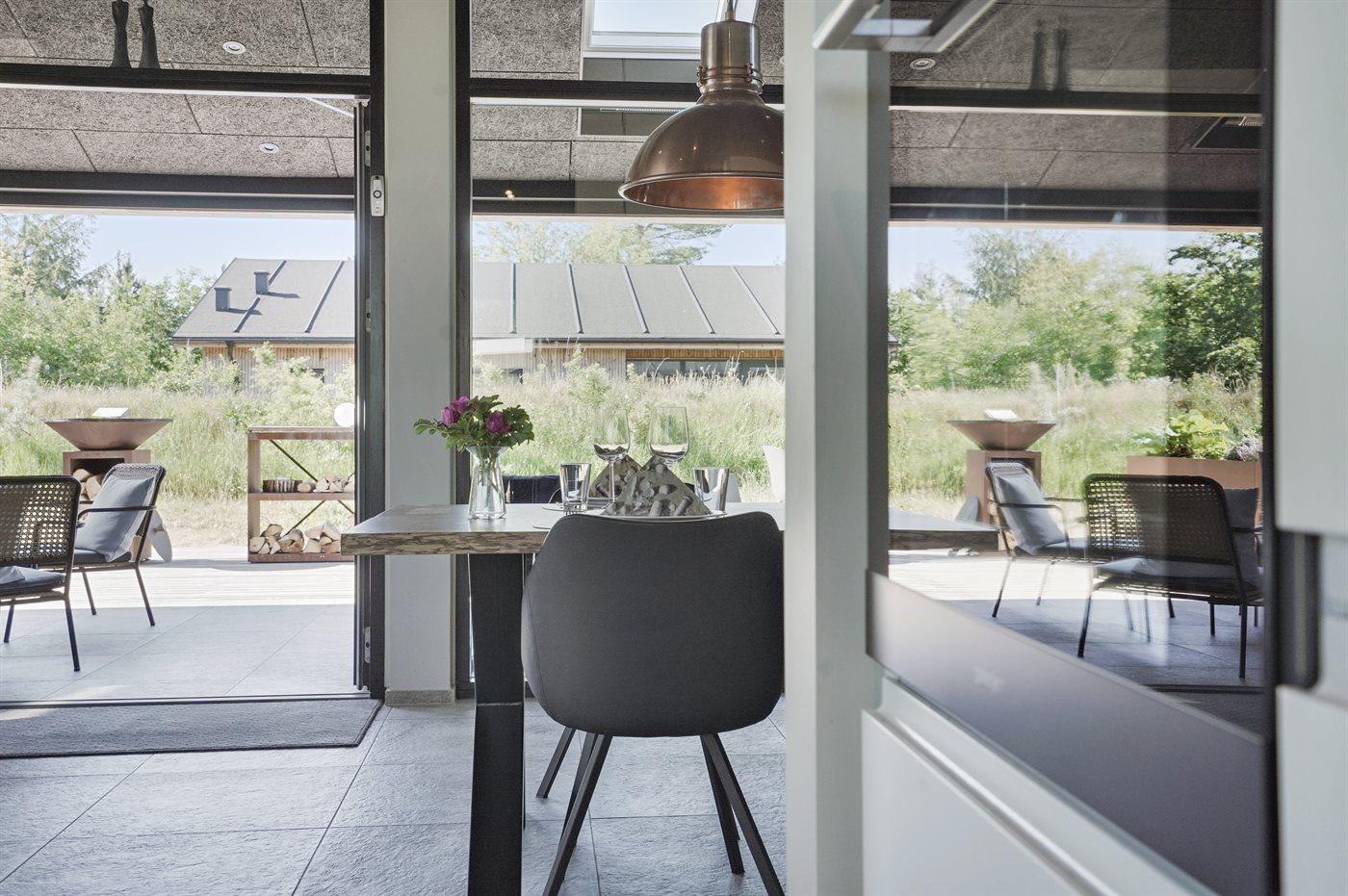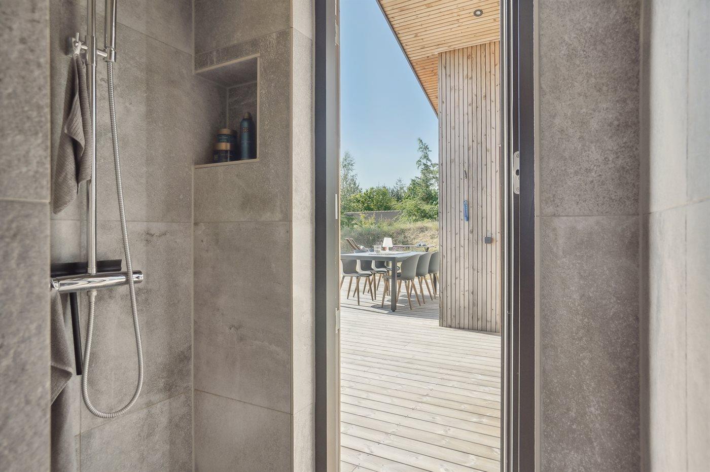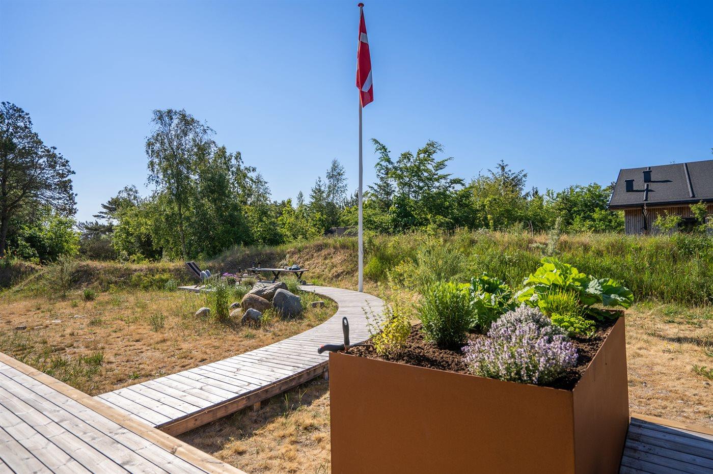 The holiday home is situated on a 1550 m² natural site. Situated 200 m from the sea. Situated 5500 m from inlet. Situated 1000 m from lake. Nearest shop is 3300 m away. You will find a golf course in a distance of 5700 m. A 200 m² terrace belong to the holiday home. Furthermore the house has a 40 m² covered terrace.Fire place. Outdoor shower. On warm nights the outdoor fireplace ensures a cosy atmosphere. It is possible to prepare the food in the outdoor kitchen. Barbecue at your disposal. Plug for charging electric car is available. Parking place by the holiday home.