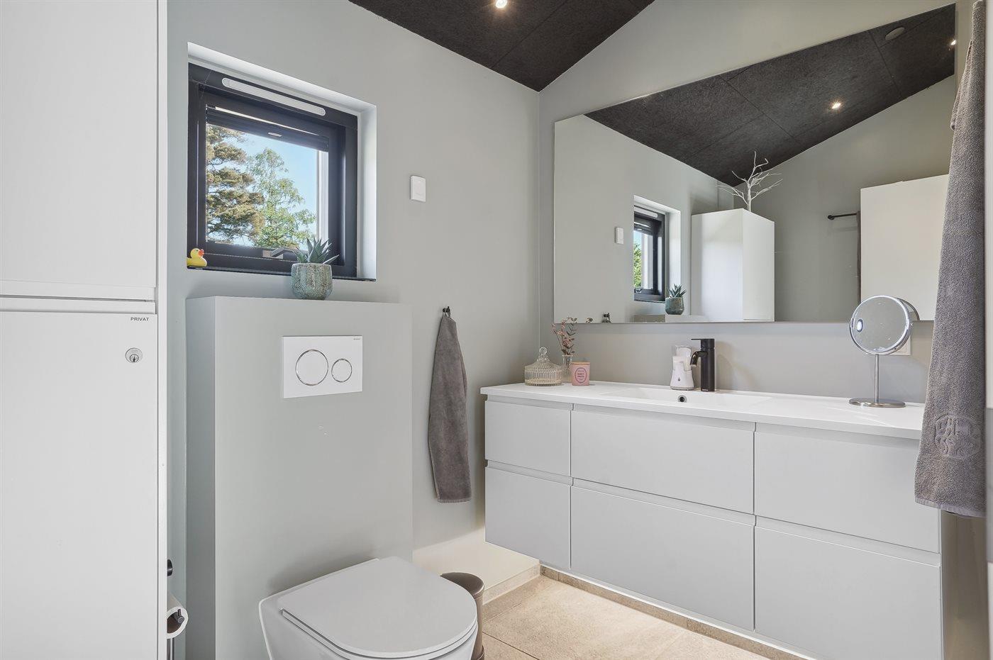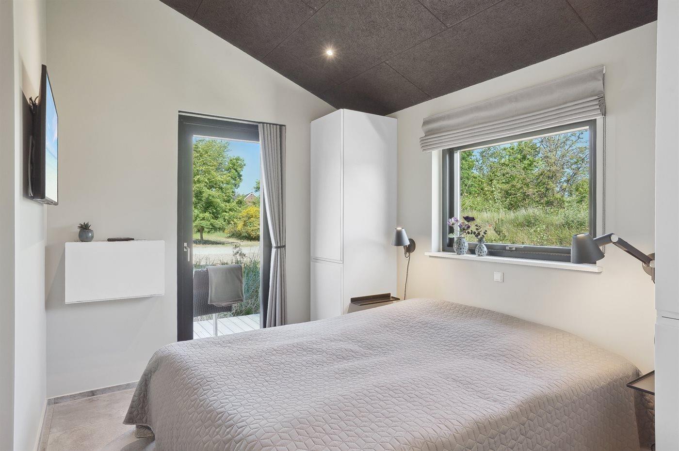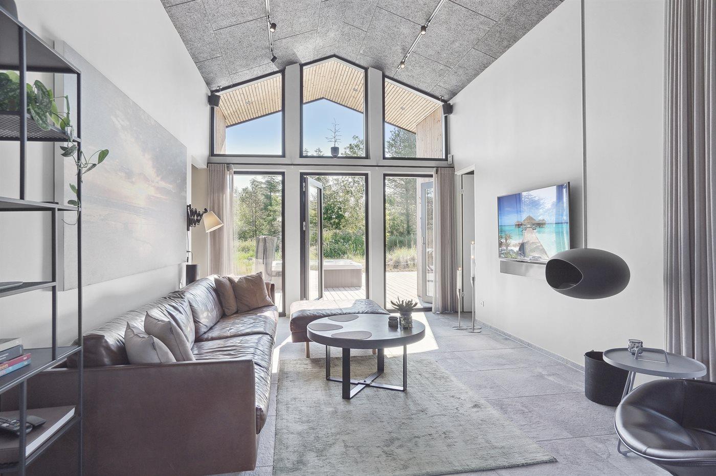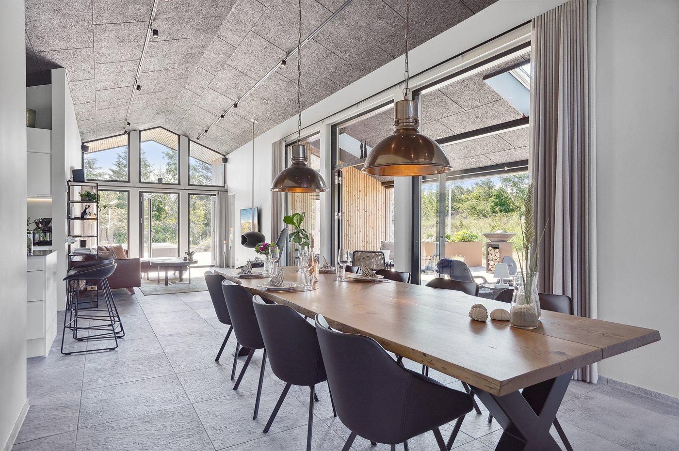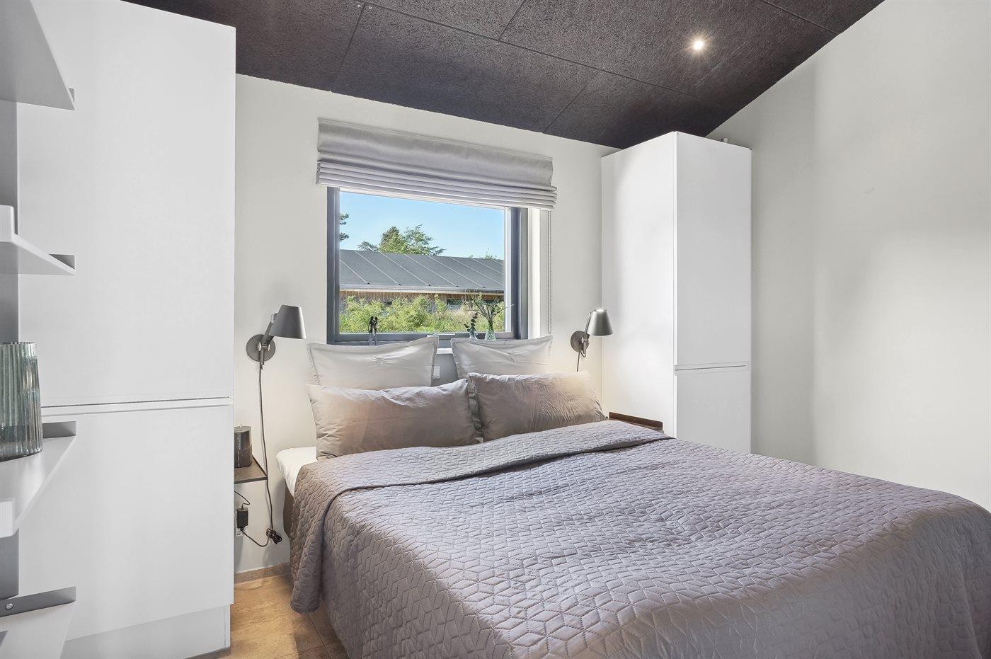 The holiday home is situated on a 1550 m² natural site. Situated 200 m from the sea. Situated 5500 m from inlet. Situated 1000 m from lake. Nearest shop is 3300 m away. You will find a golf course in a distance of 5700 m. A 200 m² terrace belong to the holiday home. Furthermore the house has a 40 m² covered terrace.Fire place. Outdoor shower. On warm nights the outdoor fireplace ensures a cosy atmosphere. It is possible to prepare the food in the outdoor kitchen. Barbecue at your disposal. Plug for charging electric car is available. Parking place by the holiday home.