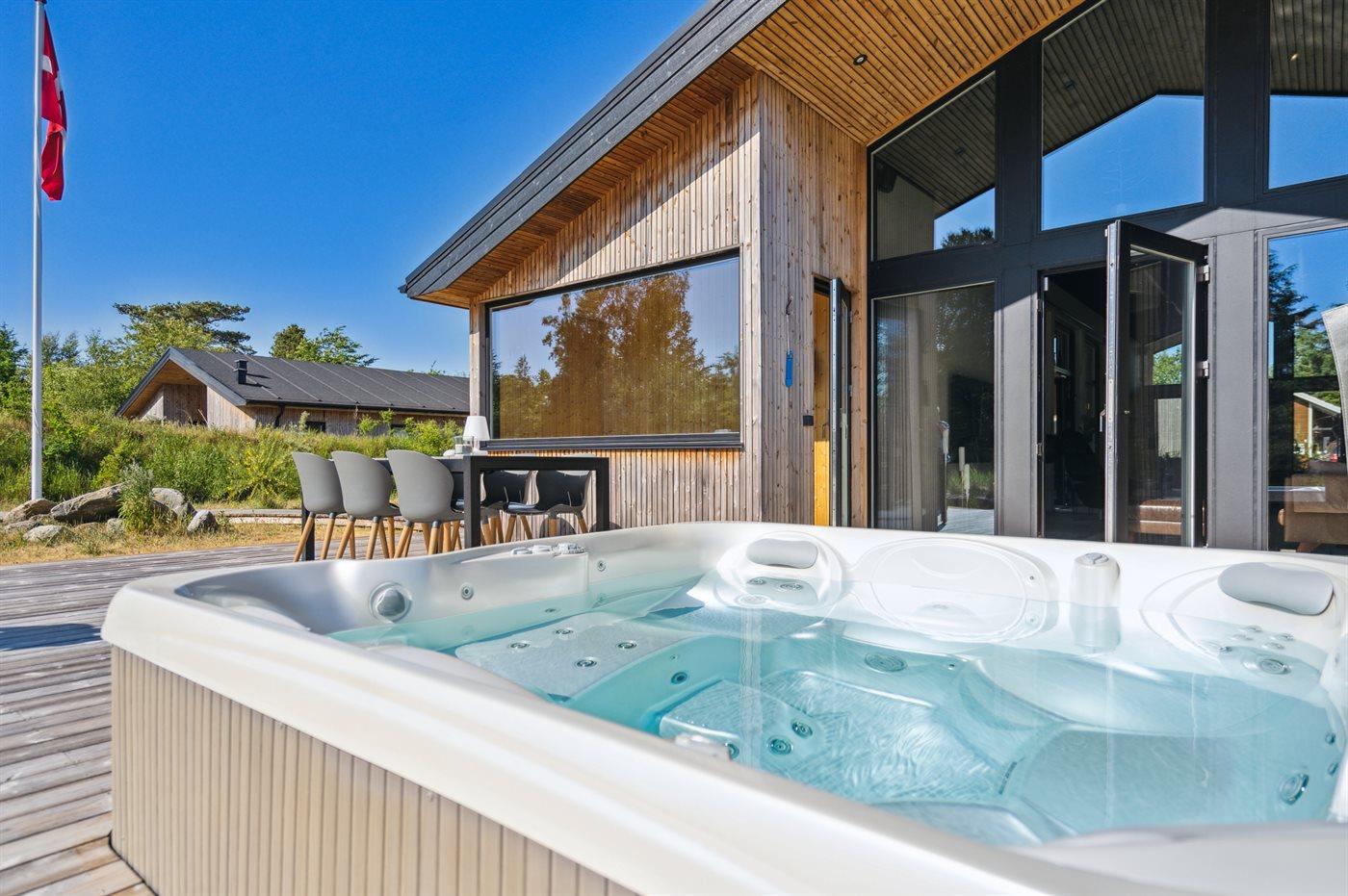 You can relax in the outdoor prefilled whirlpool for 6 persons.