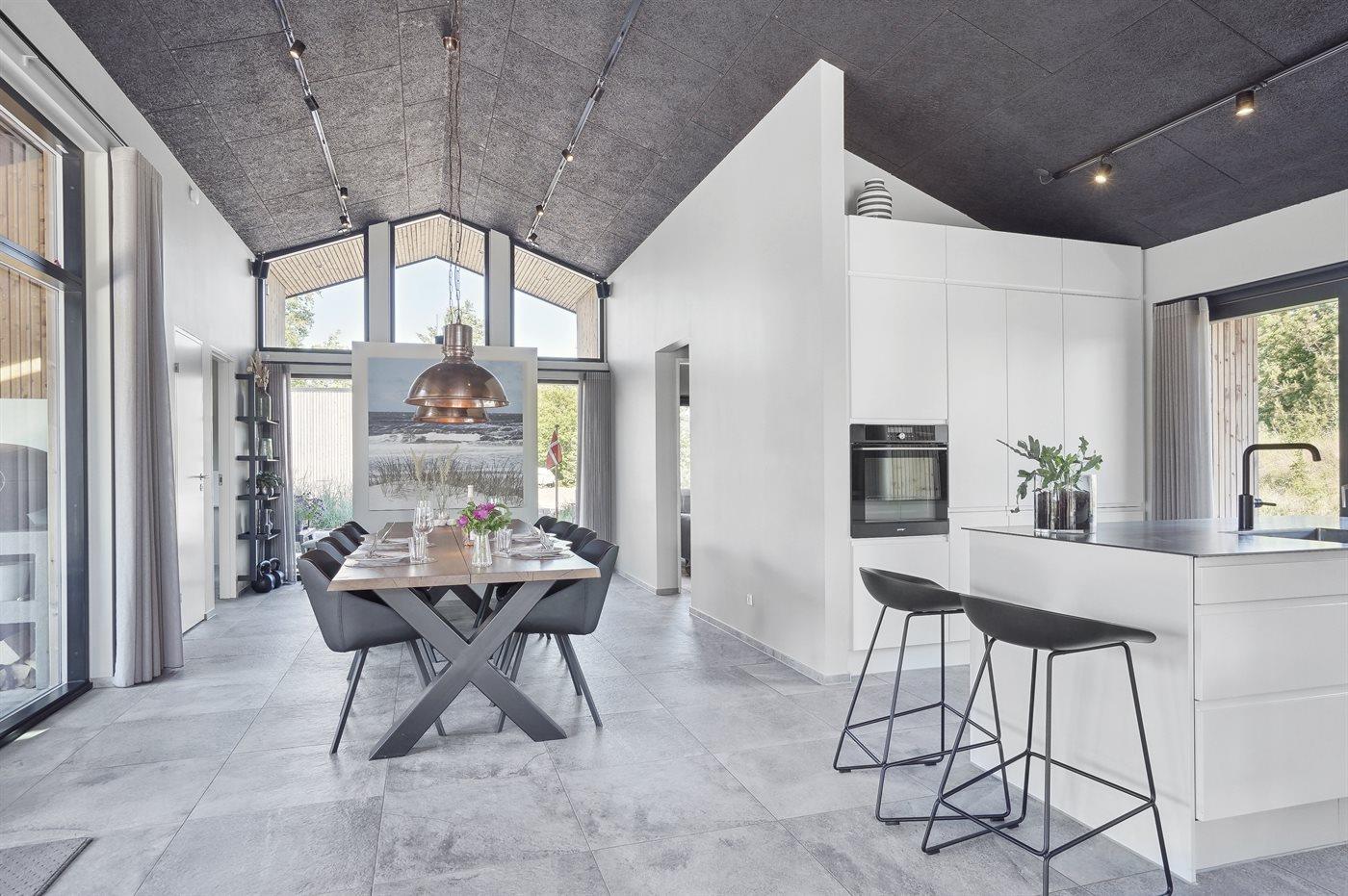 Holiday home suitable for 8 persons The holiday home is 128 m² and is build in 2020. No pets allowed. The holiday home is equipped with energy-saving heat pump. There is floorheating all over the holiday home. The holiday home has washing machine. Tumble dryer. Freezer capacity of 76 litres. Further more there is 1 bio fireplace. For the youngest ones there is 1 high chair.