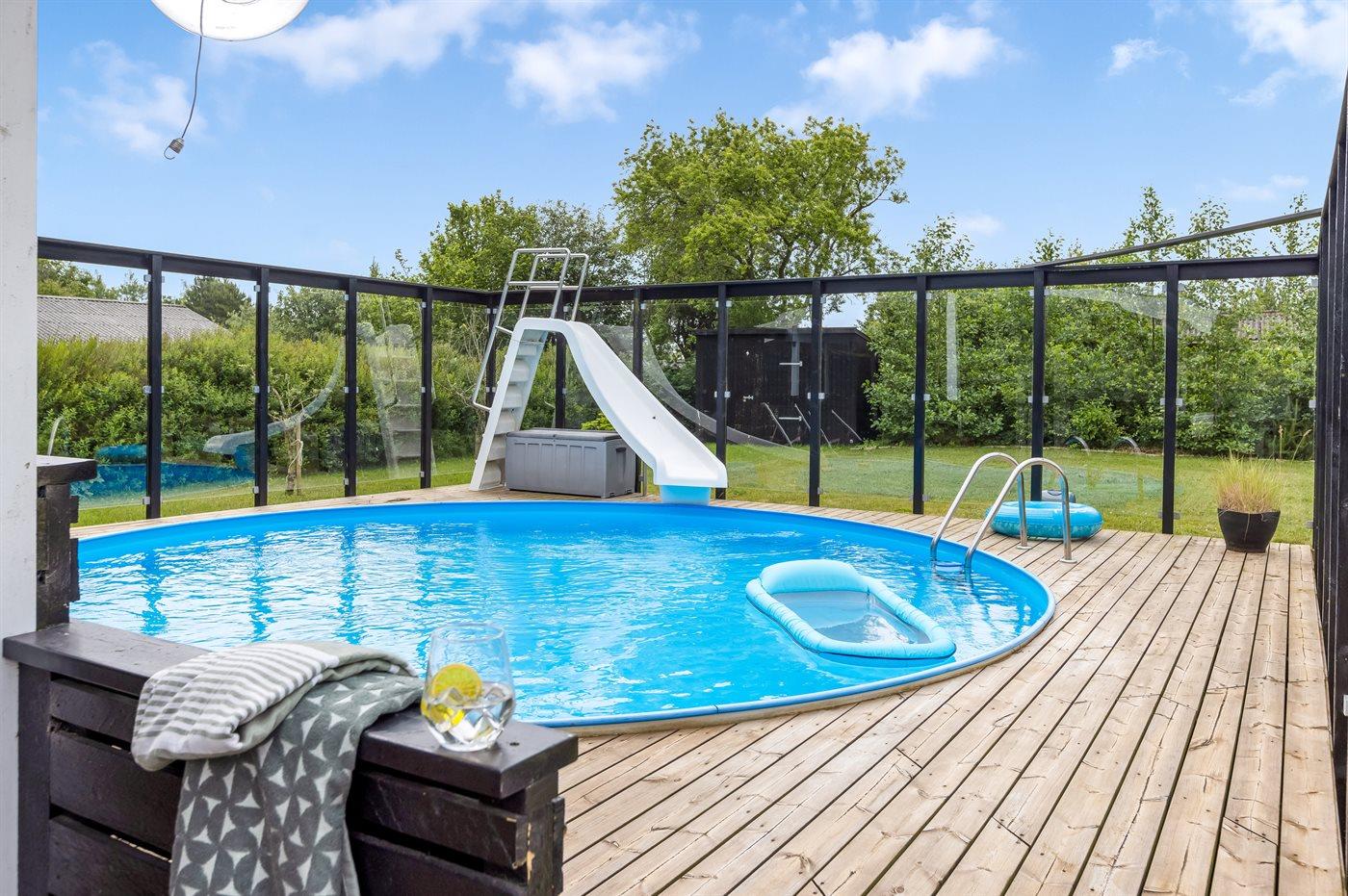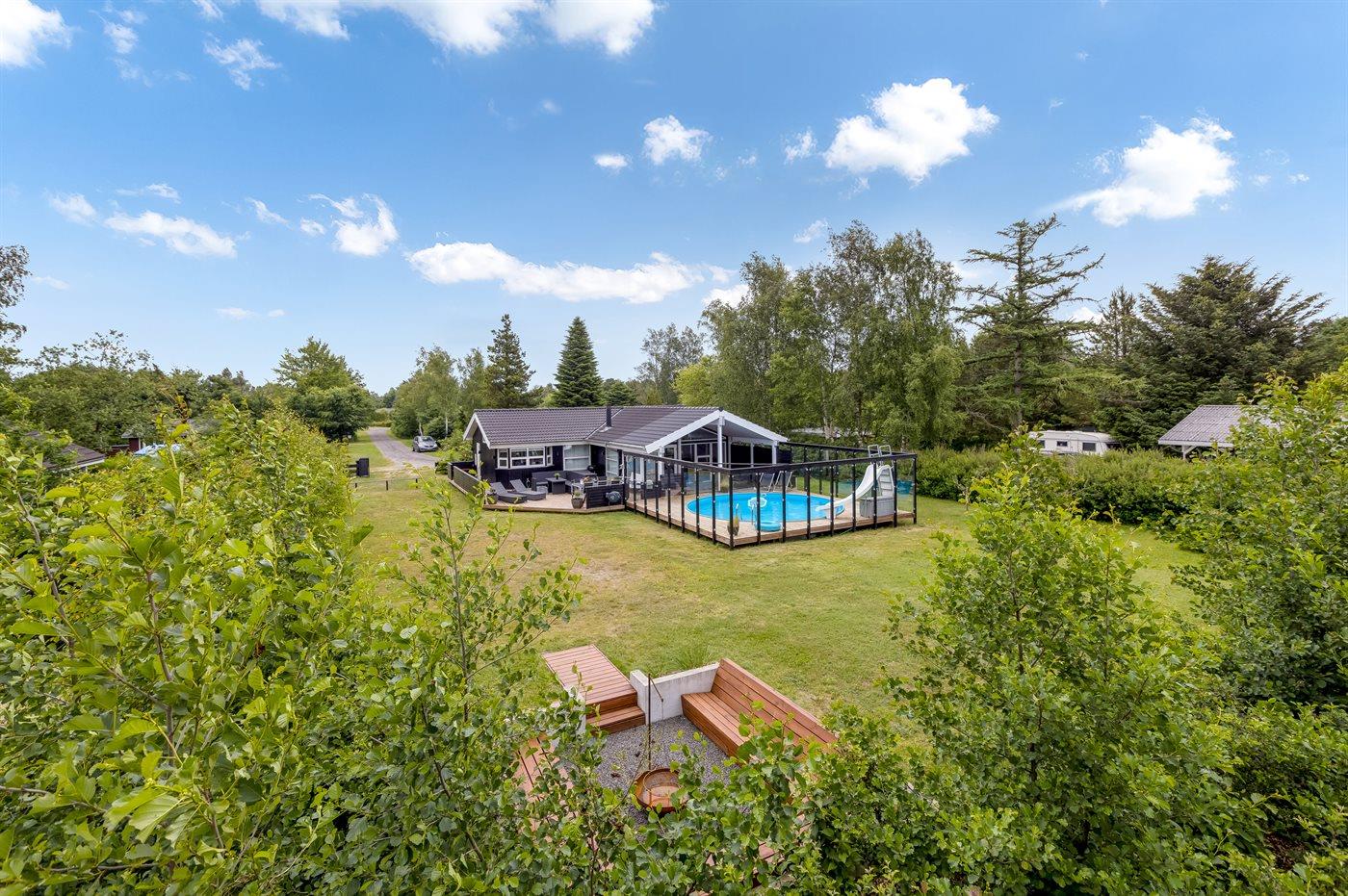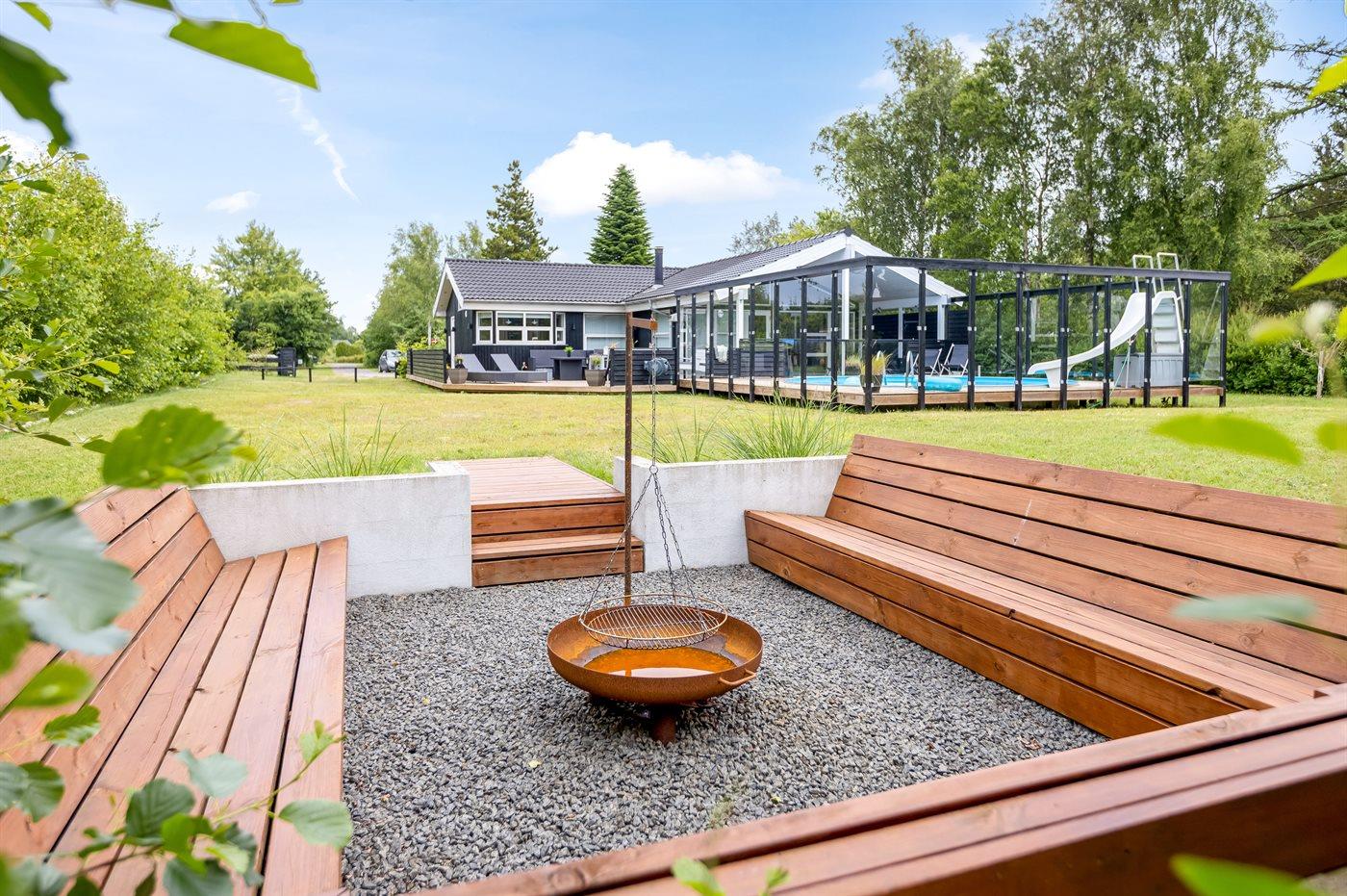 The holiday home is situated on a 1250 m² garden site. Situated 700 m from the sea. Situated 1800 m from lake. Nearest shop is 4200 m away. You will find a golf course in a distance of 5000 m. A terrace belong to the holiday home. Furthermore the house has a covered terrace.Fire place. Barbecue at your disposal. Parking place by the holiday home.