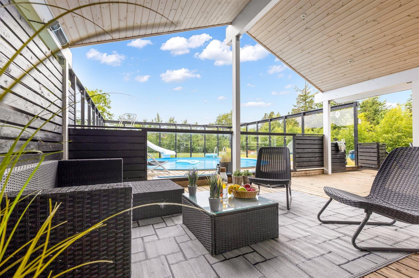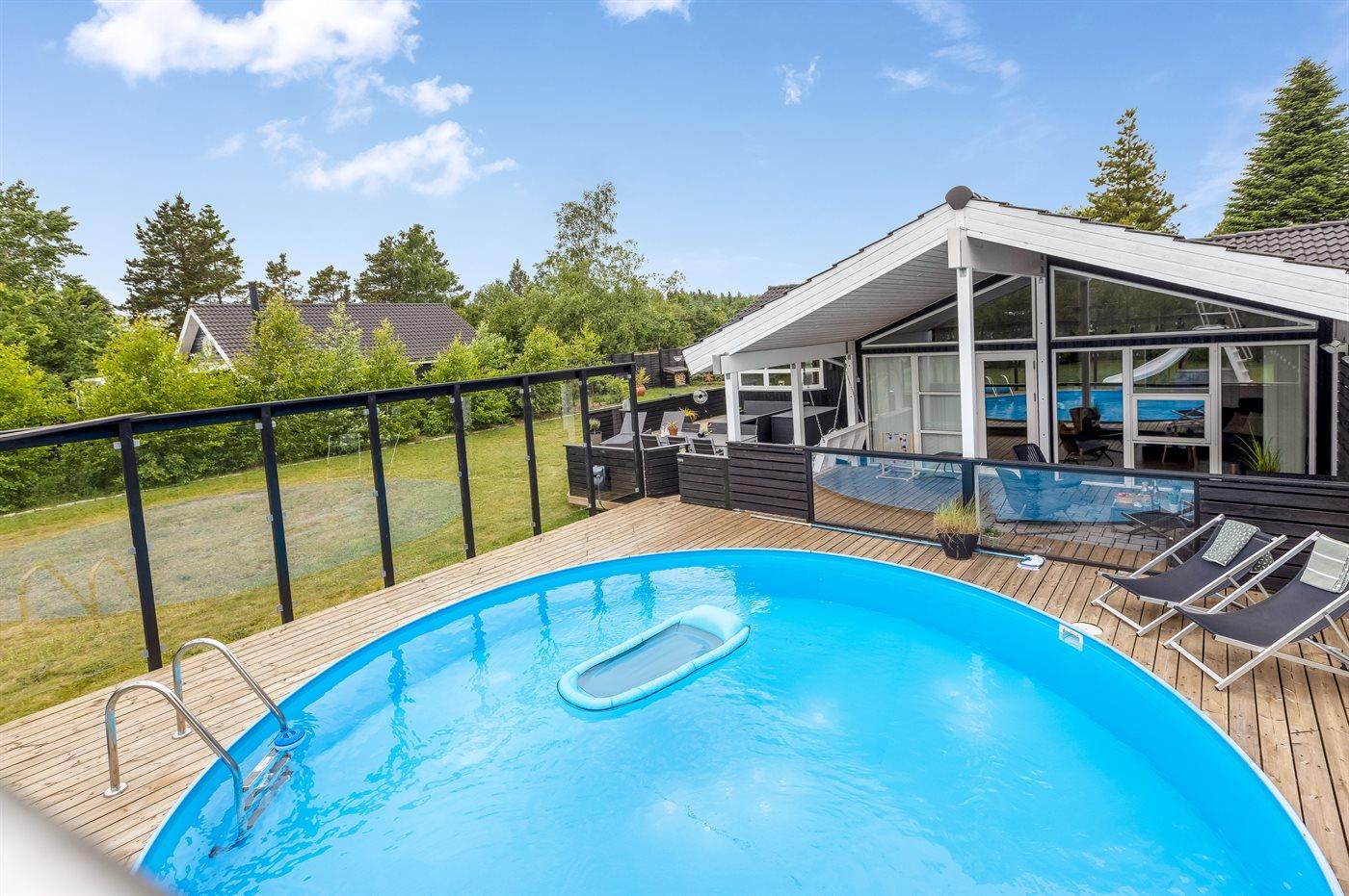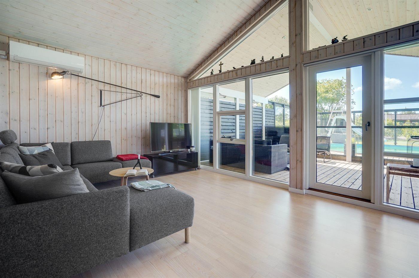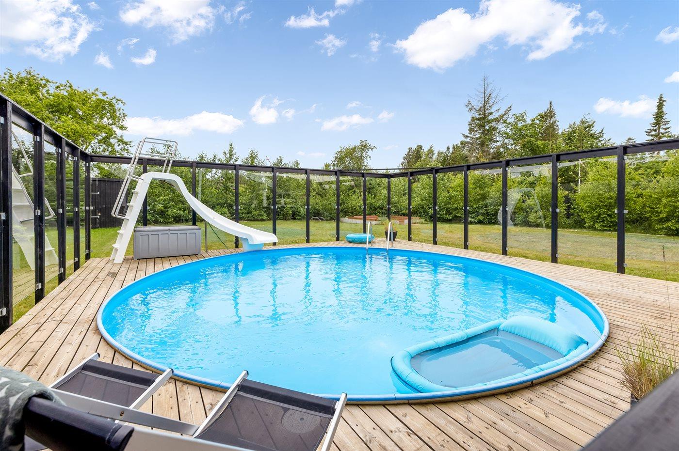 The holiday home is situated on a 1250 m² garden site. Situated 700 m from the sea. Situated 1800 m from lake. Nearest shop is 4200 m away. You will find a golf course in a distance of 5000 m. A terrace belong to the holiday home. Furthermore the house has a covered terrace.Fire place. Barbecue at your disposal. Parking place by the holiday home.