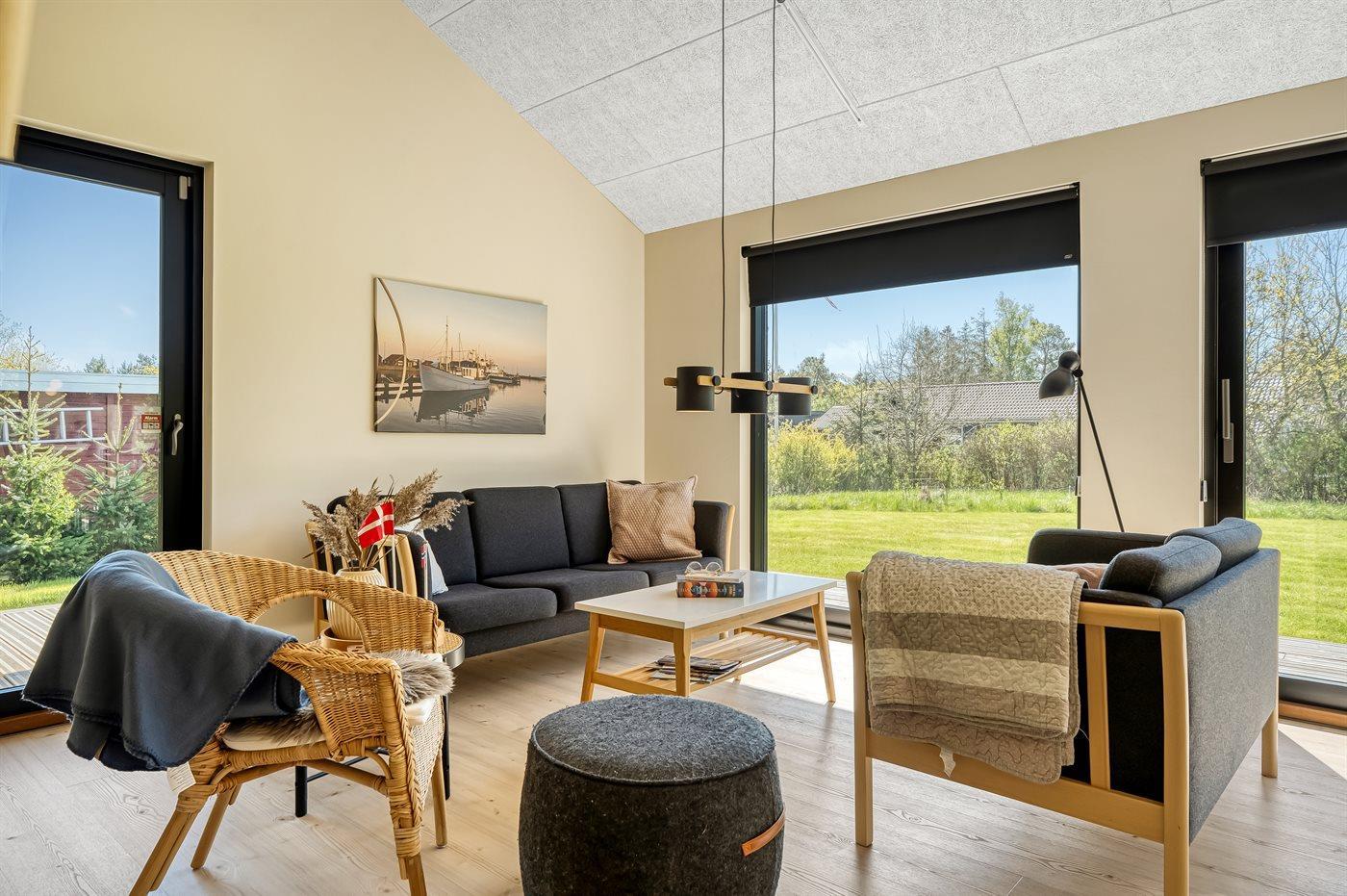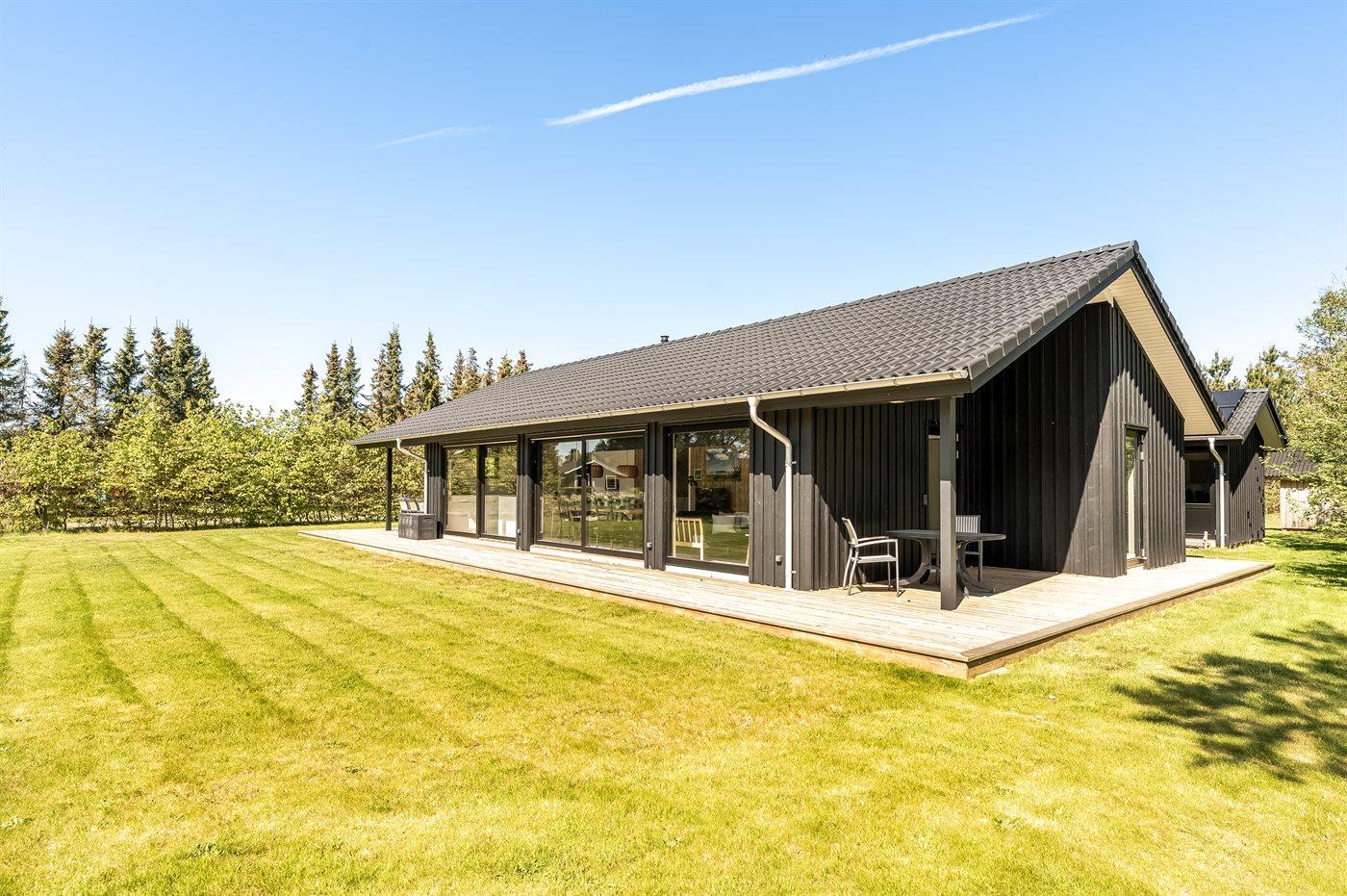 The holiday home is situated on a 1265 m² garden site. natural site. Situated 600 m from the sea. Situated 1200 m from inlet. Nearest shop is 1500 m away. You will find a golf course in a distance of 730 m. A terrace belong to the holiday home. Furthermore the house has a covered terrace. Sandbox. Football goal.Fire place. Barbecue at your disposal. Plug for charging electric car is available. Charging socket type 2. Parking place by the holiday home.