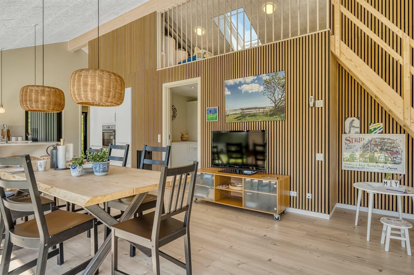 Holiday home suitable for 10 persons as well as 1 child up to 3 years. The holiday home is 109 m² and is build in 2023. No pets allowed. The holiday home is equipped with 1 energy-friendly air-to-water heat pump. There is floorheating all over the holiday home. The holiday home has washing machine. Tumble dryer. Freezer capacity of 90 litres. Further more there is 1 gas fireplace. For the youngest ones there is 1 high chair. Changing table.
