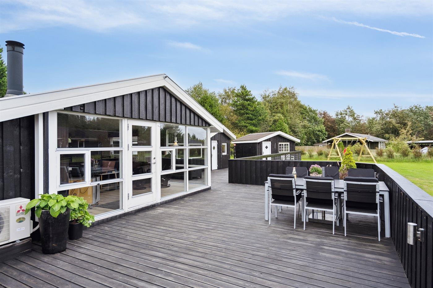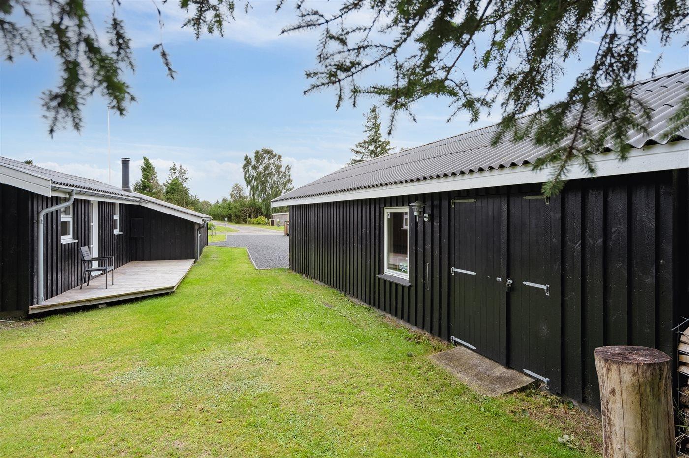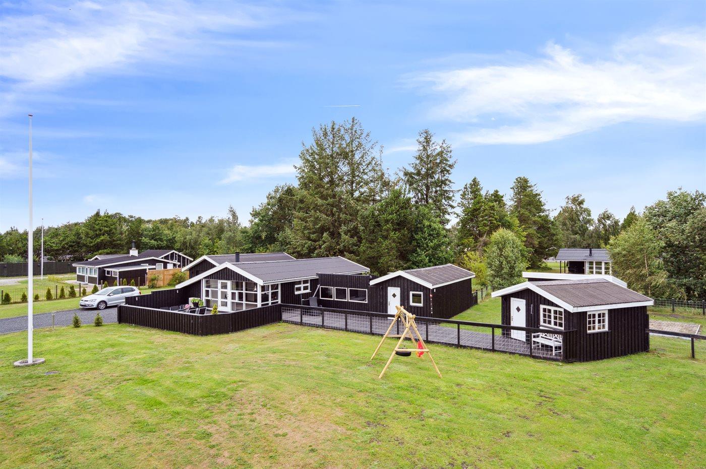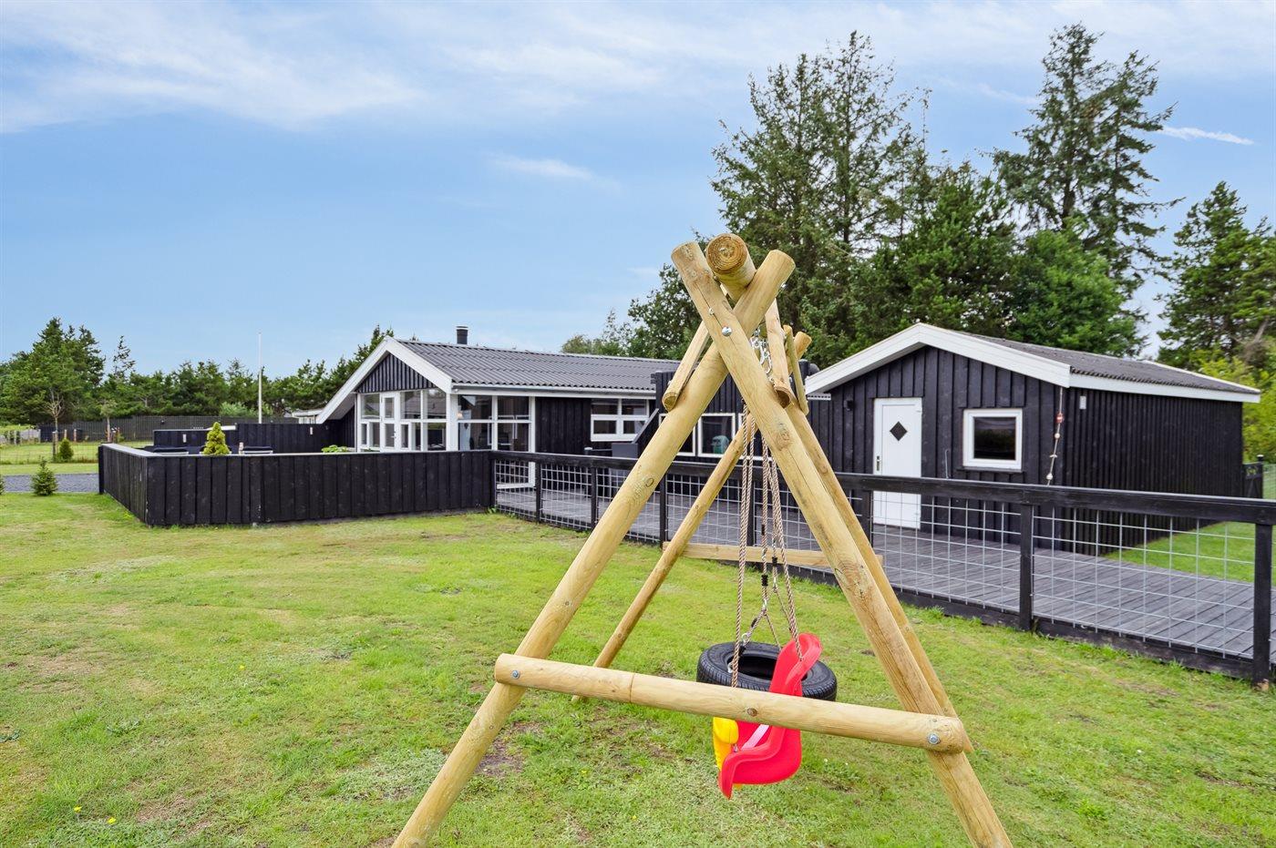 The holiday home is situated on a 1413 m² garden site. The site is fenced in. Situated 750 m from the sea. Nearest shop is 2500 m away. A terrace belong to the holiday home. Swing. Parking place by the holiday home.