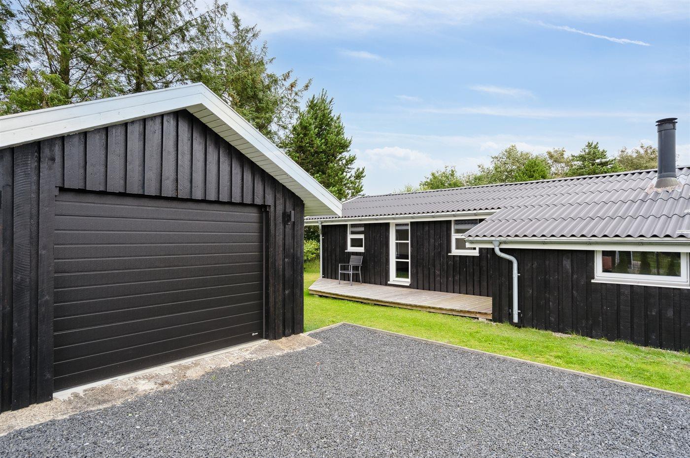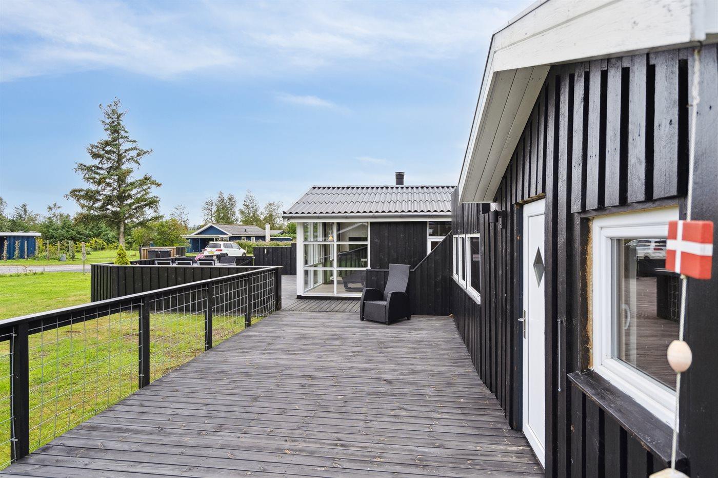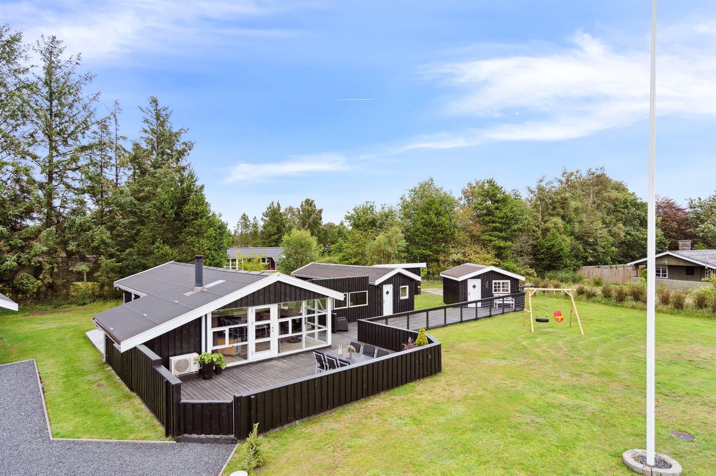 The holiday home is situated on a 1413 m² garden site. The site is fenced in. Situated 750 m from the sea. Nearest shop is 2500 m away. A terrace belong to the holiday home. Swing. Parking place by the holiday home.