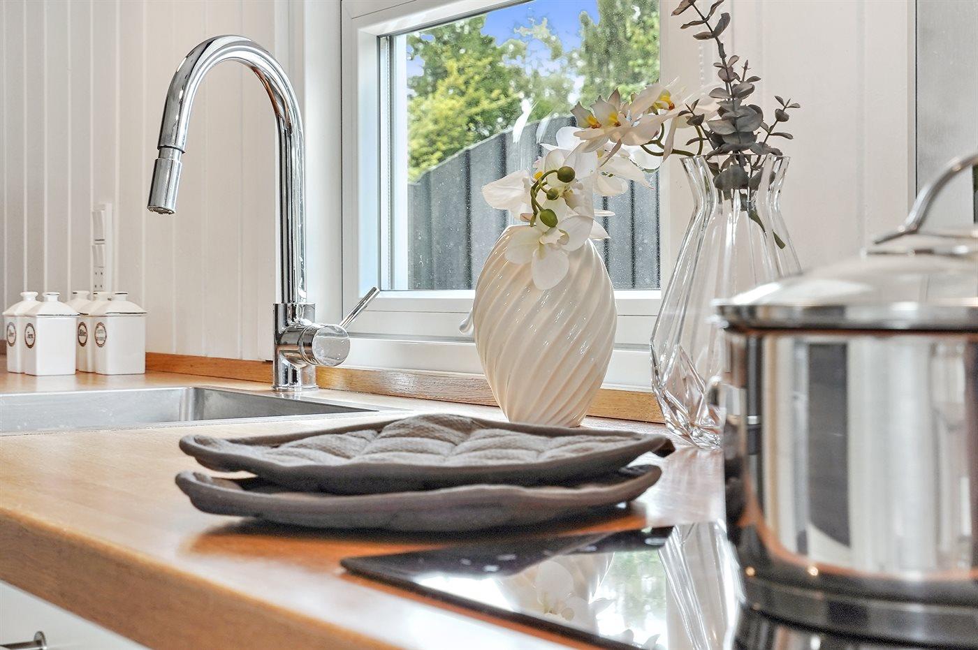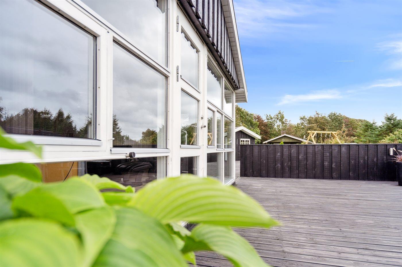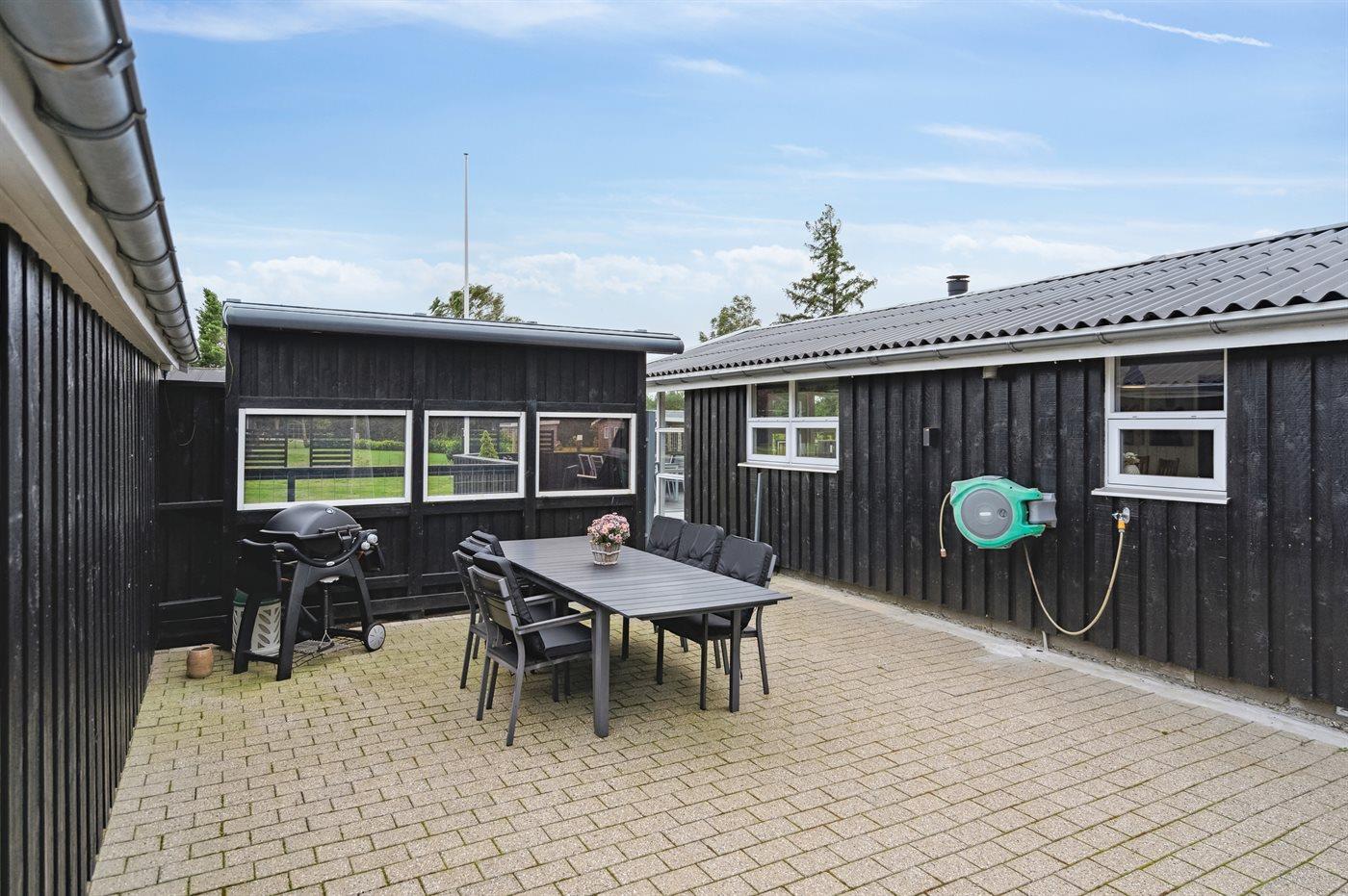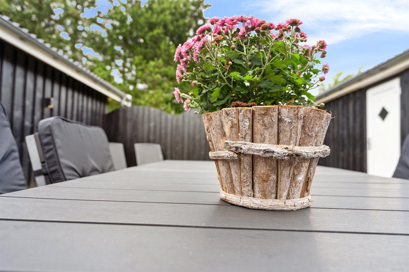 The holiday home is situated on a 1413 m² garden site. The site is fenced in. Situated 750 m from the sea. Nearest shop is 2500 m away. A terrace belong to the holiday home. Swing. Parking place by the holiday home.