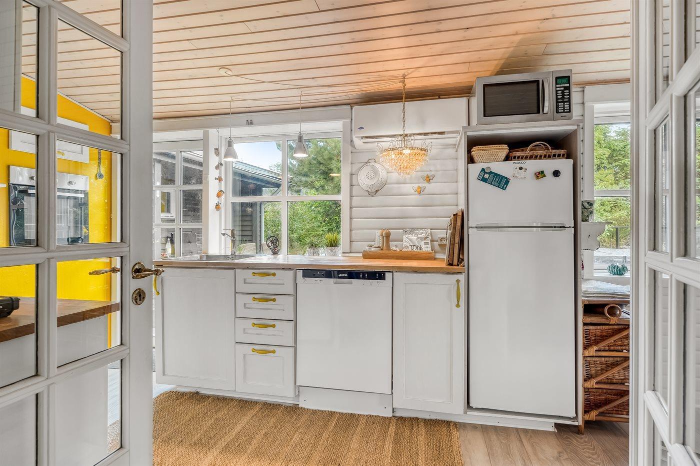 Holiday home suitable for 6 persons as well as 1 child up to 3 years. The holiday home is 70 m² and is build in 1962. In 2018 the holiday home was renovated. No pets allowed. The holiday home is equipped with 1 energy-saving air-to-air heat pump. The holiday home has washing machine. Freezer capacity of 20 litres. Further more there is 1 wood-burning stove. For the youngest ones there is 1 high chair.