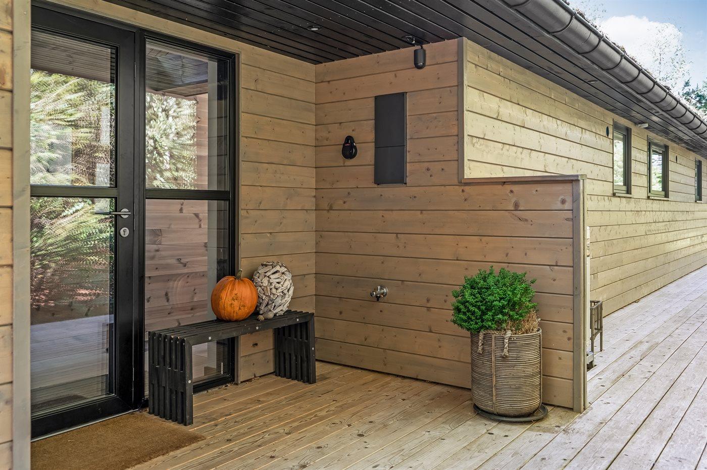 The holiday home is situated on a 1250 m² natural site. Situated 380 m from the sea. Situated 2050 m from inlet. Nearest shop is 2170 m away. You will find a golf course in a distance of 1300 m. A terrace belong to the holiday home. Furthermore the house has a covered terrace. Outdoor shower. It is possible to prepare the food in the outdoor kitchen. Barbecue at your disposal. Plug for charging electric car is available. Charging socket type 2. With 11 kW power output. Parking place by the holiday home.