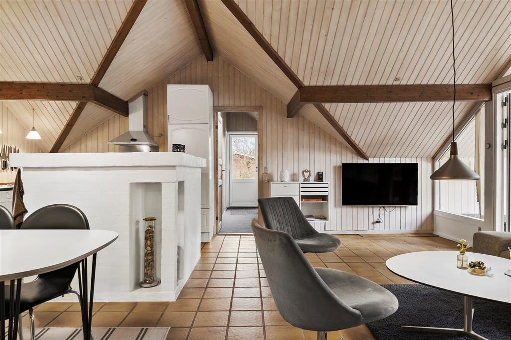 Das Wohnzimmer ist mit der offenen Küche kombiniert. Helle, moderne Küche mit Klinkerfußboden, Glaskeramikherd, Geschirrspüler und Kühl- Gefrierschrank. Geschmackvoll eingerichtetes Wohnzimmer mit Ausgang zur Terrasse, großem Ecksofa, gutem Essplatz, Fernsehen (DK-Kanäle), Chromecast und DVD. Badezimmer mit Klinkerfußboden, Fußbodenheizung und Duschnische. 3 Schlafzimmer, eins mit Doppelbett und zwei mit jeweils einem Einzelbett. Heizung des Hauses erfolgt beim Wärmepumpe und Elektrische Heizung.