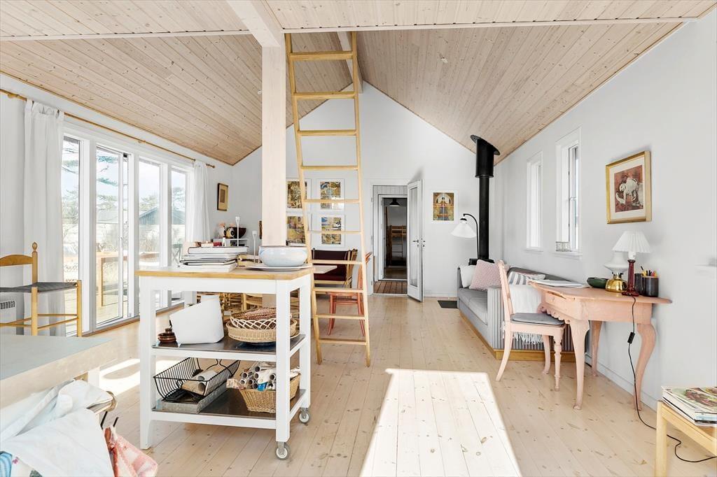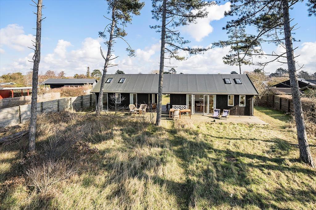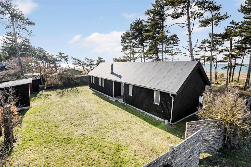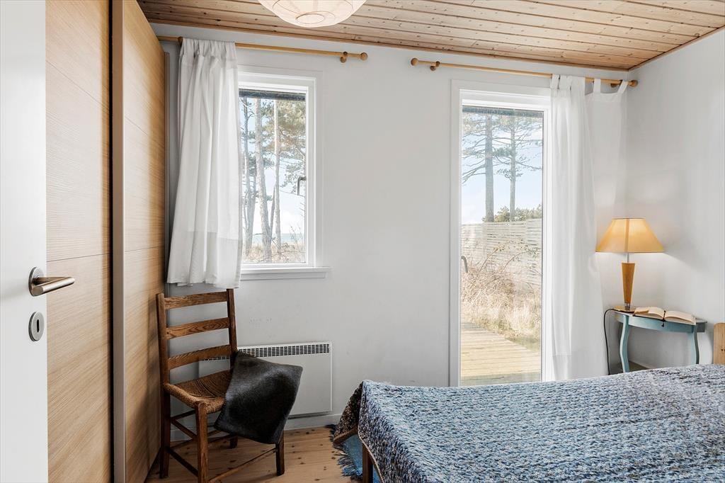 Das Urlaubsdomizil beinhaltet einen offen kombinierten Küche-, Wohn- und Essbereich. In der Küche erleichtern Ihnen unter anderem ein Backofen, ein Induktionskochfeld, ein Geschirrspüler und ein Kühlschrank Ihre alltäglichen Aufgaben. Der Wohnraum bietet einen Ausgang auf die Terrasse, einen Kaminofen, einen guten Essplatz, ein Sofa, Sessel und einen Fernseher mit dänischen und vier deutschen Sendern. Das Badezimmer beinhaltet einen Fliesenboden, eine Duschnische und eine Fußbodenheizung. Die Schlafplätze verteilen sich auf einen Schlafraum mit einem Doppelbett, auf einen Schlafraum mit einem Einzelbett und auf einen Raum mit einem Etagenbett (80 x 200 Zentimeter). Auf dem Schlafboden steht eine doppelte Matratze zur Verfügung. Auf dem Grundstück befindet sich ein Nebengebäude mit einem Doppelbett. Beachten Sie bitte, dass das Nebengebäude nur in der Zeit vom 01. Mai bis 30. September nutzbar ist. Der Kaminofen und Elektroheizkörper sorgen für angenehme Raumtemperaturen.