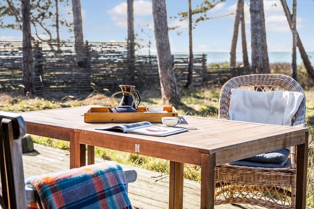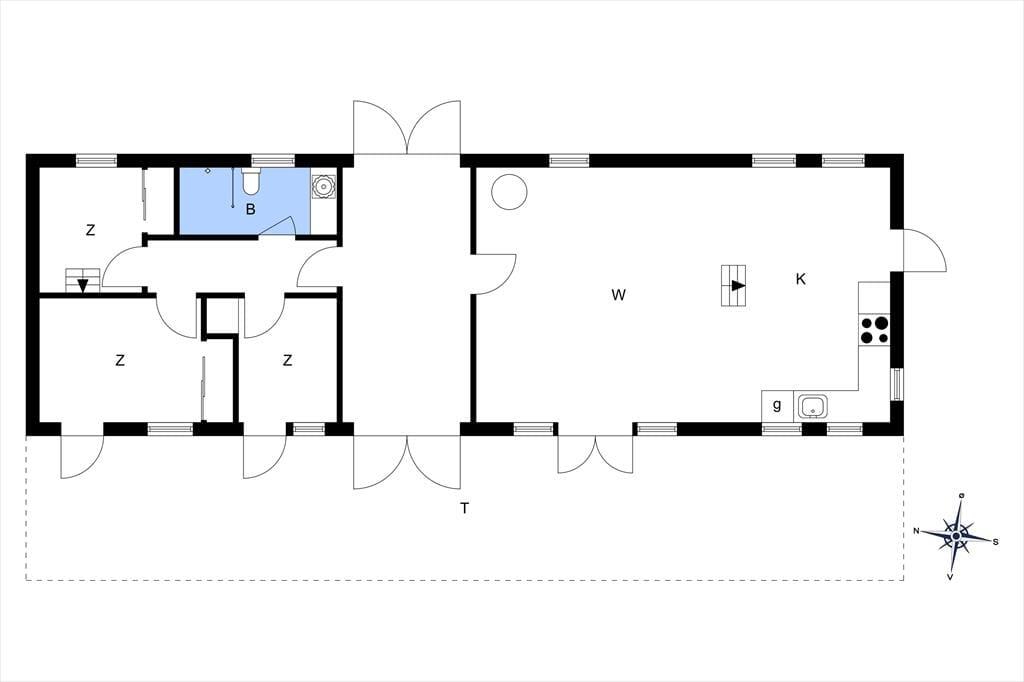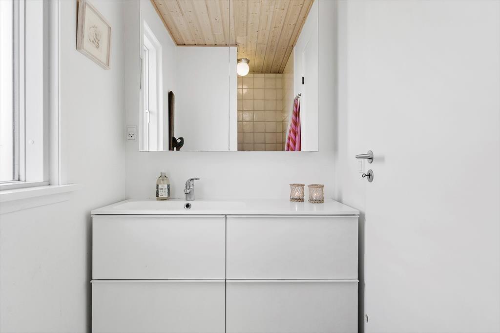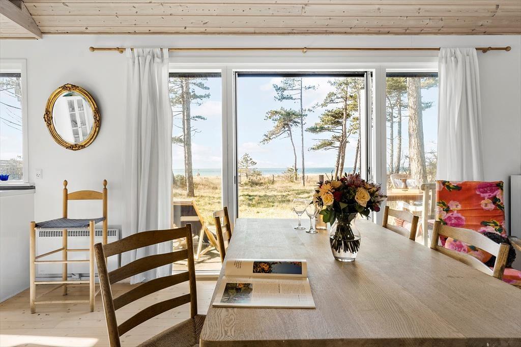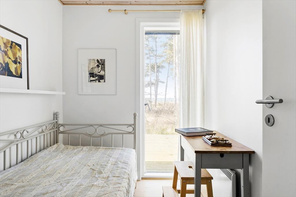 Das Urlaubsdomizil beinhaltet einen offen kombinierten Küche-, Wohn- und Essbereich. In der Küche erleichtern Ihnen unter anderem ein Backofen, ein Induktionskochfeld, ein Geschirrspüler und ein Kühlschrank Ihre alltäglichen Aufgaben. Der Wohnraum bietet einen Ausgang auf die Terrasse, einen Kaminofen, einen guten Essplatz, ein Sofa, Sessel und einen Fernseher mit dänischen und vier deutschen Sendern. Das Badezimmer beinhaltet einen Fliesenboden, eine Duschnische und eine Fußbodenheizung. Die Schlafplätze verteilen sich auf einen Schlafraum mit einem Doppelbett, auf einen Schlafraum mit einem Einzelbett und auf einen Raum mit einem Etagenbett (80 x 200 Zentimeter). Auf dem Schlafboden steht eine doppelte Matratze zur Verfügung. Auf dem Grundstück befindet sich ein Nebengebäude mit einem Doppelbett. Beachten Sie bitte, dass das Nebengebäude nur in der Zeit vom 01. Mai bis 30. September nutzbar ist. Der Kaminofen und Elektroheizkörper sorgen für angenehme Raumtemperaturen.