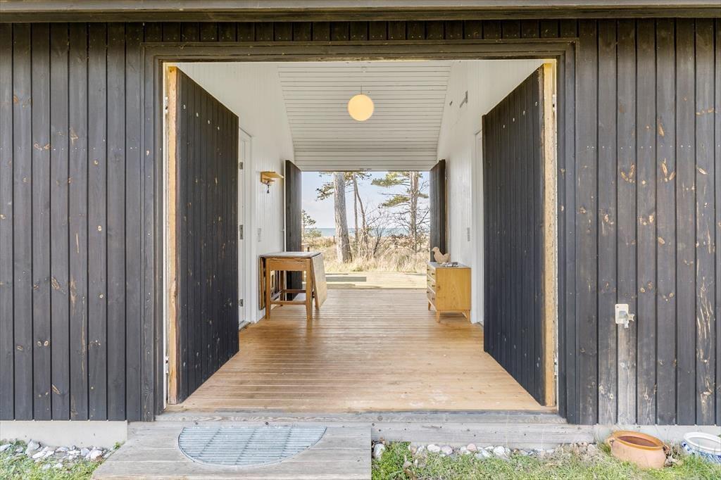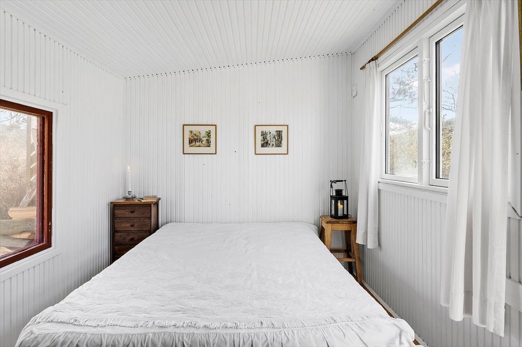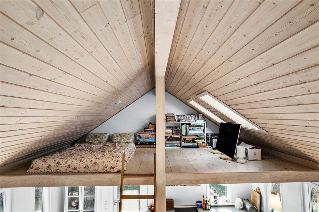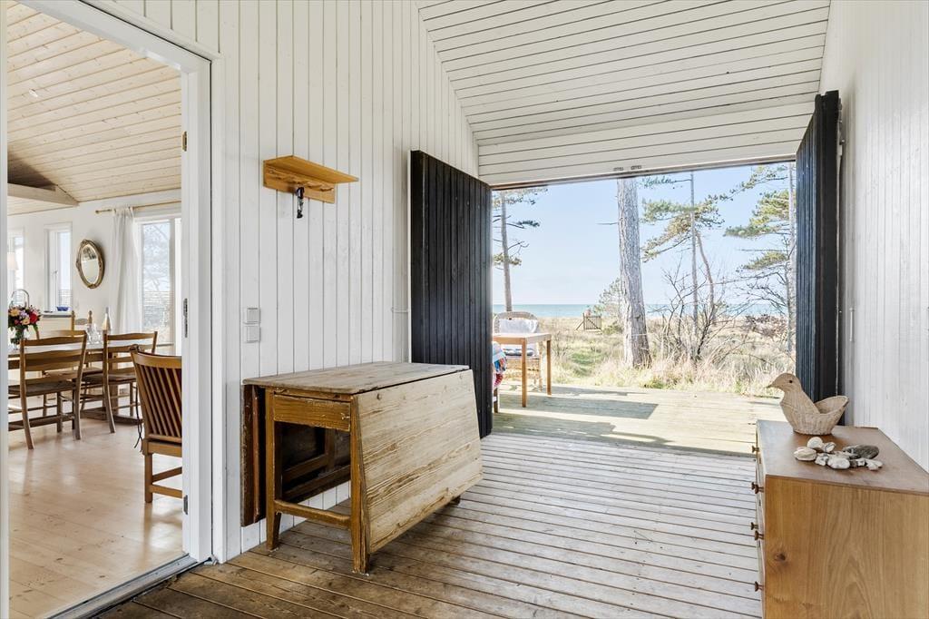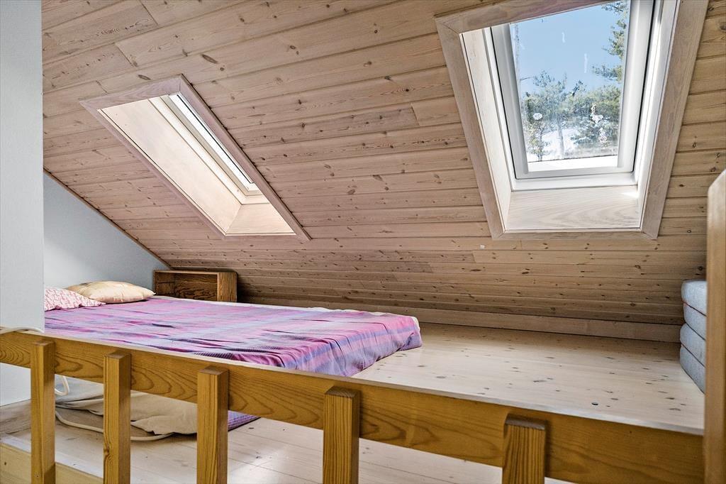 Nahezu alle Räume dieses im Jahr 2010 erbauten Ferienhauses begeistern mit Blick aufs Wasser. Das Hausinnere unterteilt sich in zwei Bereiche: Einen großen Raum mit hohen Decken und einem Schlafboden und einen Schlafbereich mit einem Badezimmer.
