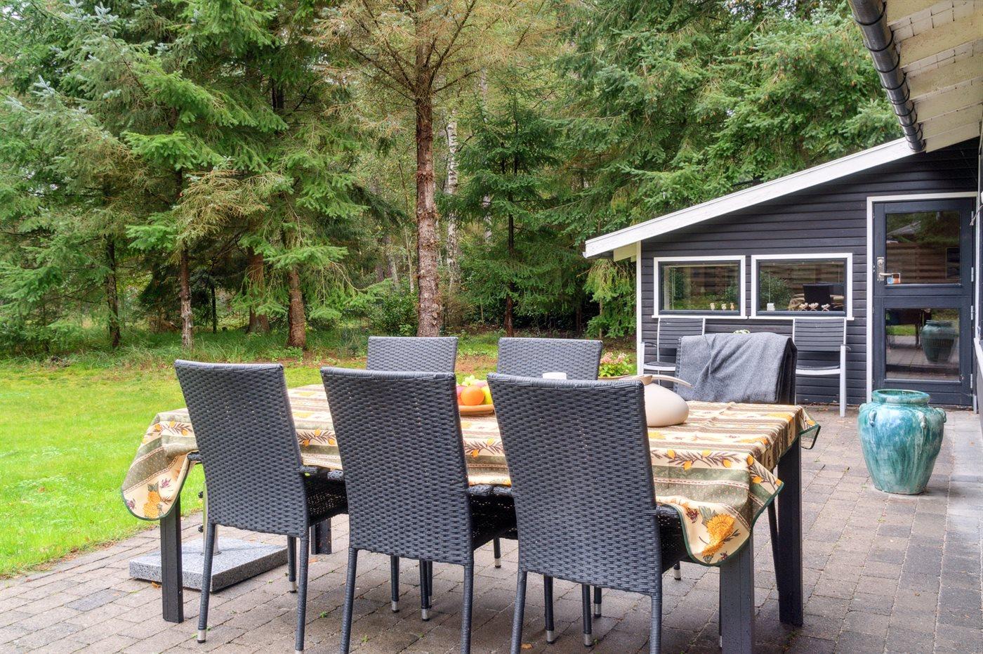 The holiday home is situated on a 2044 m² garden site. The site is fenced in. Situated 375 m from the sea. Nearest shop is 4200 m away. You will find a golf course in a distance of 21000 m. A 35 m² terrace belong to the holiday home. Furthermore the house has a 8 m² covered terrace. Barbecue at your disposal. Carport is at your disposal. Parking place by the holiday home.