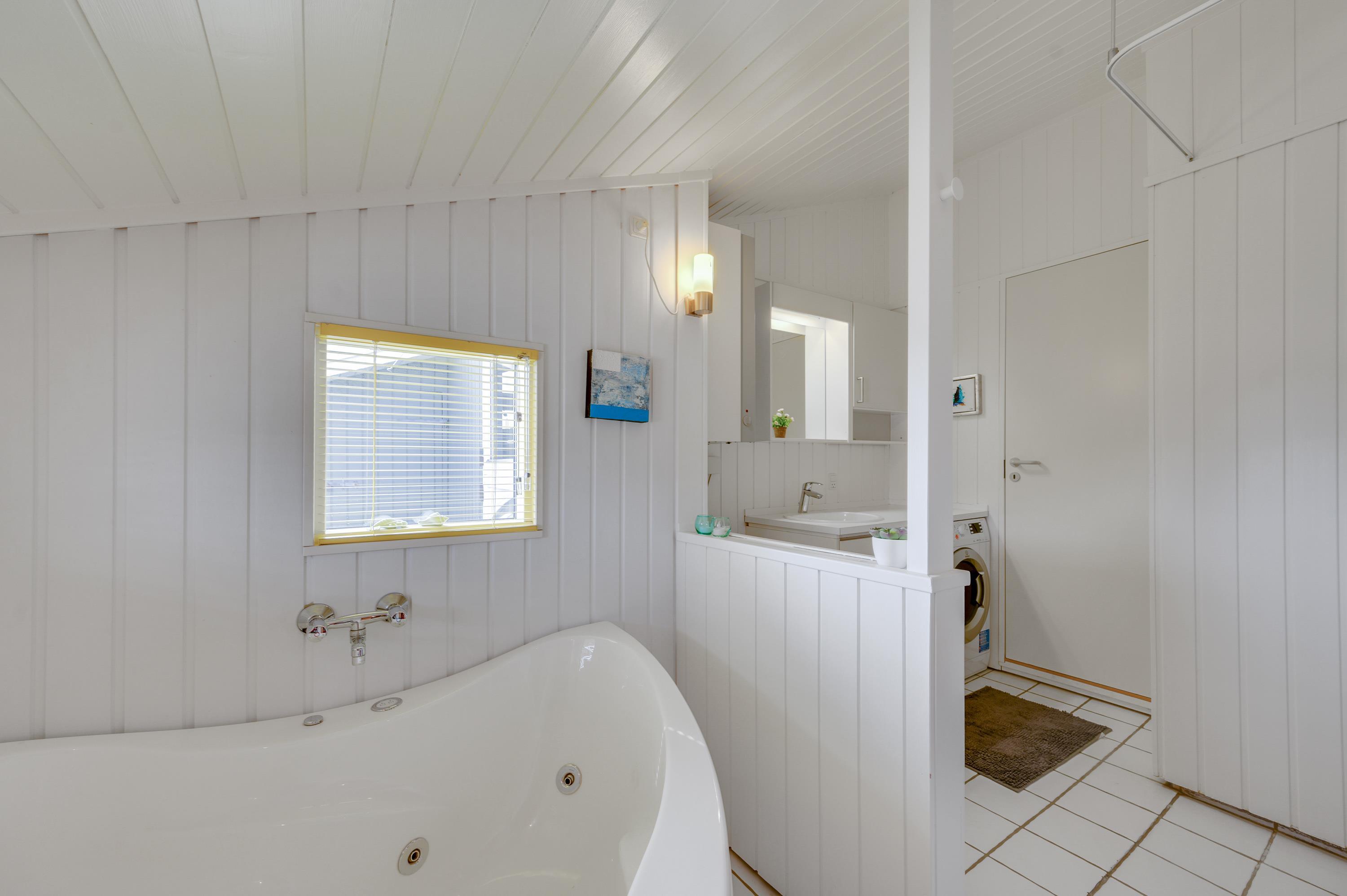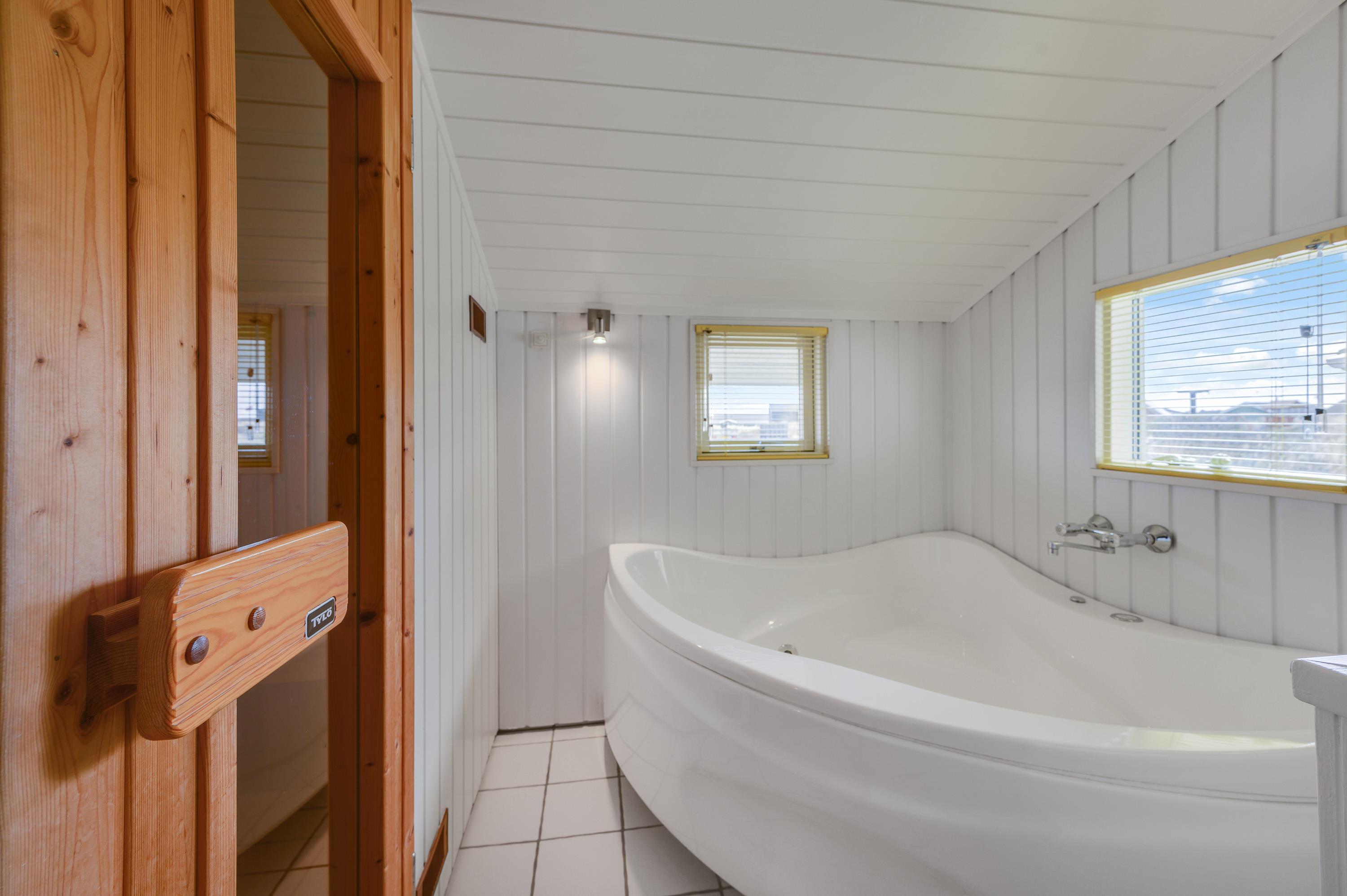 The holiday home features a superb bathroom. Here you'll find a luxurious wellness space with sauna and whirlpool, perfect for rejuvenating after an eventful day at the beach. The bathroom features underfloor heating to keep your feet warm. The compact modern kitchen includes everything you could wish for: dishwasher, separate freezer and of course a cooker with oven.